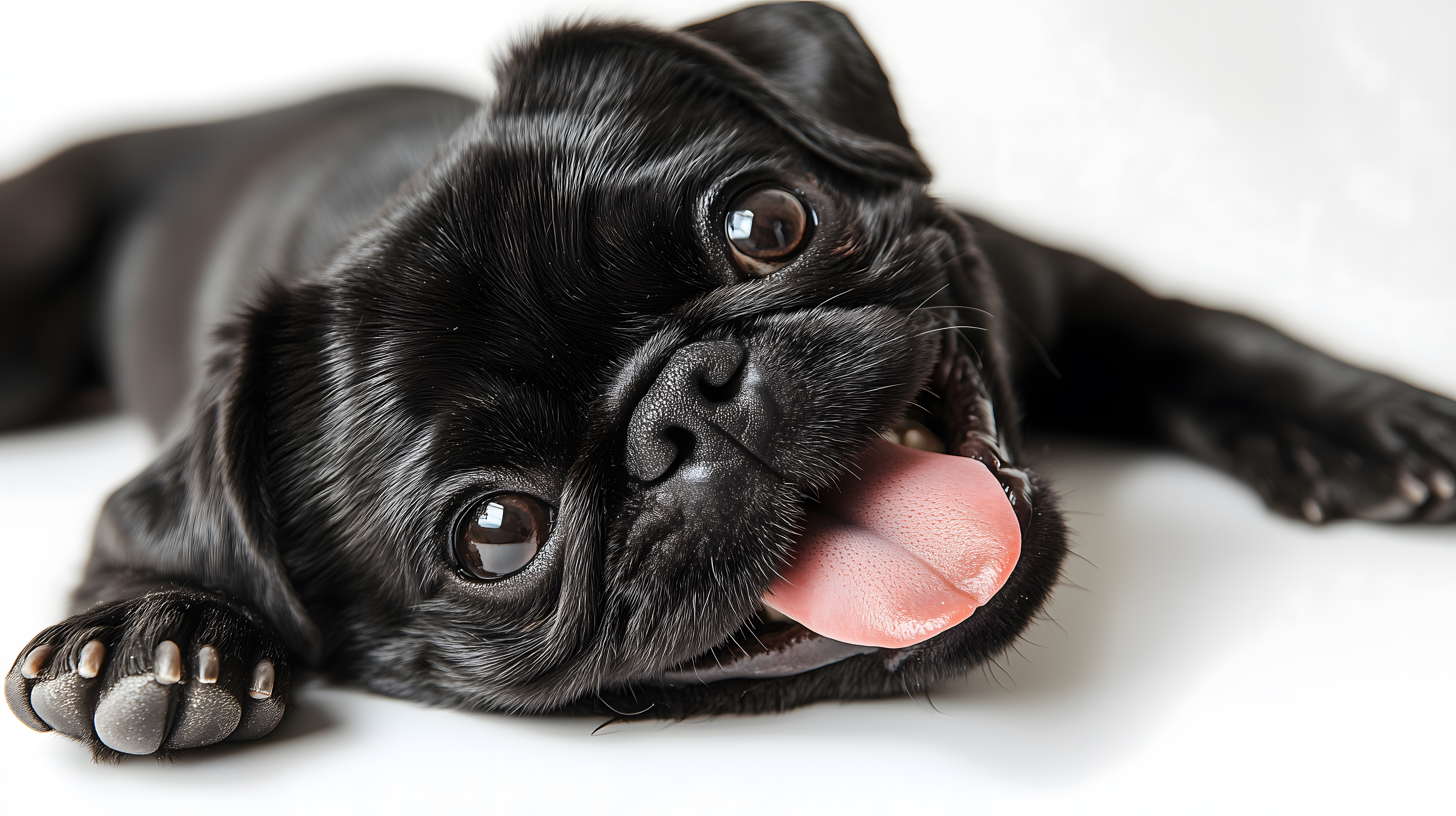 Dieses Foto zeigt einen süßen, schwarzen Mopswelpen, der mit herausgestreckter Zunge zu sehen ist. Der Hund blickt direkt in die Kamera mit seinen großen, dunklen Augen, die voller Ausdruck sind. Die Nahaufnahme des Hundegesichts lässt die Details der Schnauze, Nase und des weichen, glänzenden Fells deutlich erkennen. Dieses Bild eignet sich hervorragend für den Einsatz in Blogs, Newslettern, Social-Media-Beiträgen oder Werbematerialien, in denen ein niedlicher, fröhlicher Hundeblick gefragt ist. Als kostenloses Stockfoto in hoher Auflösung und unter der Creative-Commons-Lizenz verfügbar, kann es vielfältig und ohne Einschränkungen genutzt werden.