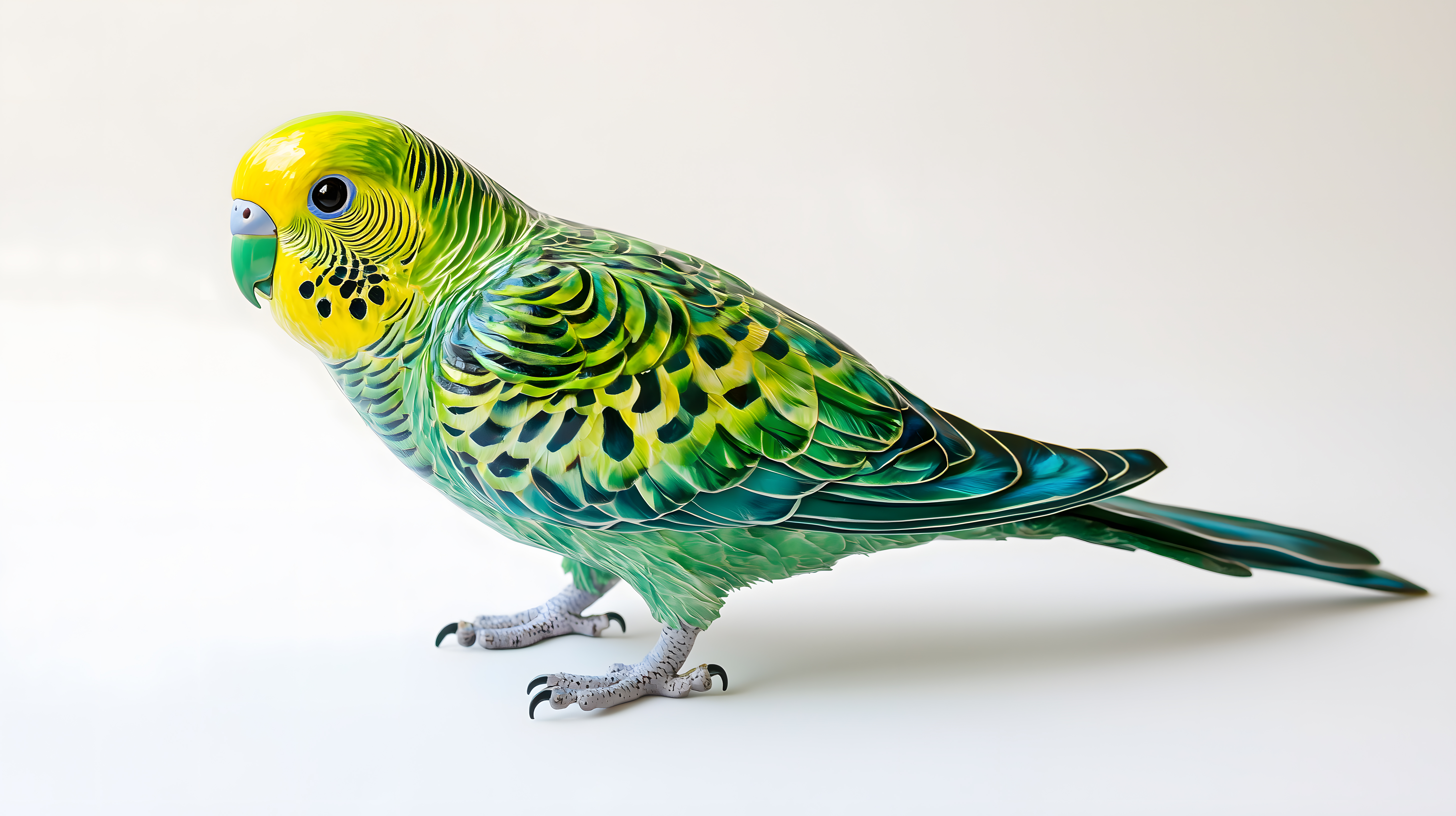 Das Foto zeigt einen farbenfrohen Wellensittich in leuchtenden Grün- und Gelbtönen vor einem weißen Hintergrund. Der Vogel ist in einer Nahaufnahme zu sehen, sodass seine detaillierten Federstrukturen und sein scharfer Schnabel deutlich erkennbar sind. Die intensive Farbgebung und die klaren Konturen verleihen dem Bild eine lebendige, grafische Ästhetik, die sich ideal für den Einsatz in Blogs, Newslettern, auf Social-Media-Kanälen oder in Werbematerialien eignet. Dieses kostenlose, hochauflösende Stockfoto steht unter einer Creative-Commons-Lizenz zur Verfügung.