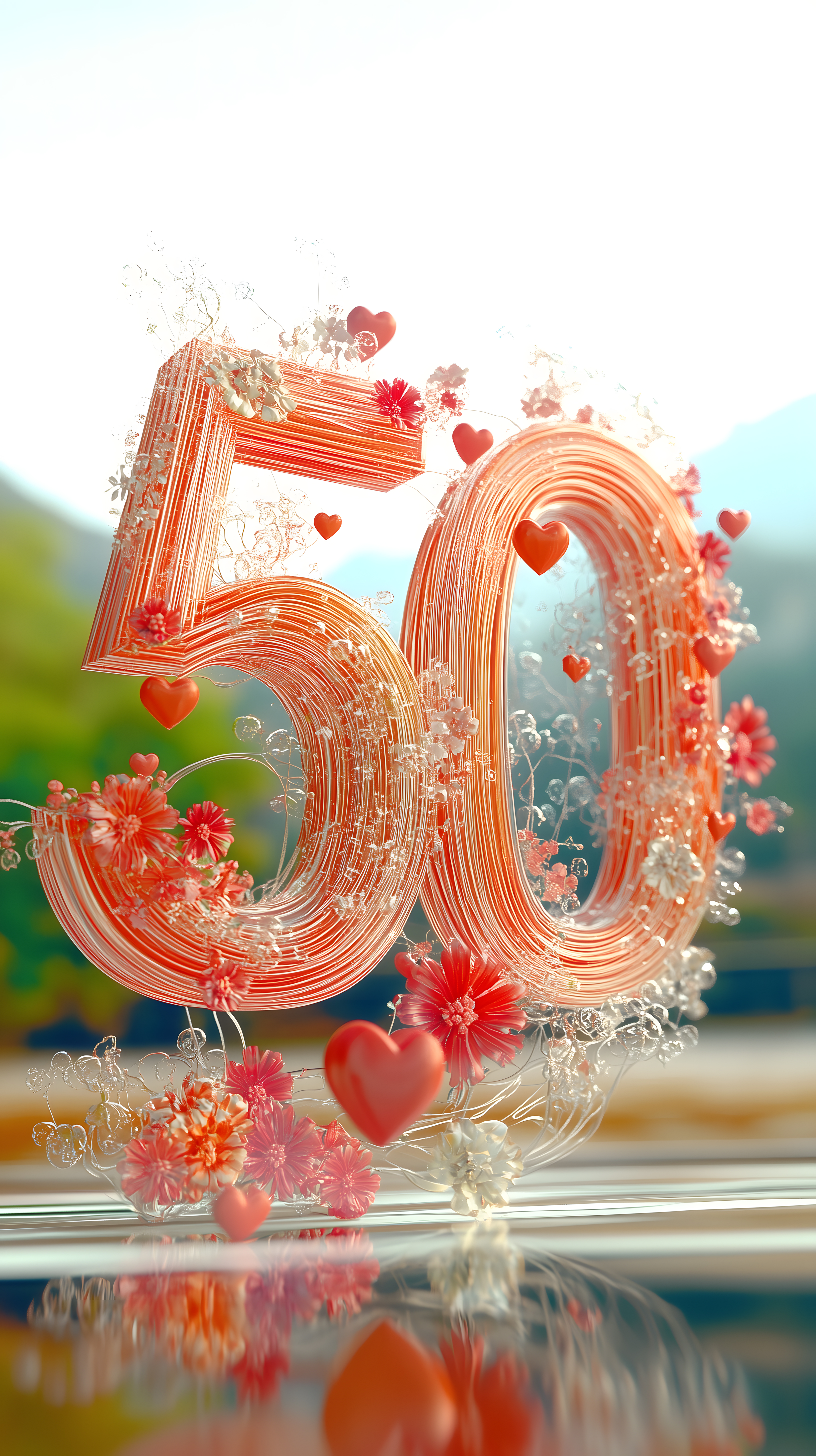 Dieses liebevoll gestaltete Stockfoto zeigt eine feierliche Geburtstagsgrafik zum 50. Jubiläum. Die Zahl '50' ist in einem eleganten, filigranen Design dargestellt, umgeben von roten Herzen und zarten Blumen. Die farbenfrohe Komposition vermittelt eine romantische, festliche Stimmung, die sich hervorragend für Glückwünsche, Grußkarten oder Werbemittel zum 50. Geburtstag eignet. Das hochauflösende Bild ist unter der Creative-Commons-Lizenz frei verfügbar und kann vielfältig in Blogs, Newslettern oder sozialen Medien eingesetzt werden.