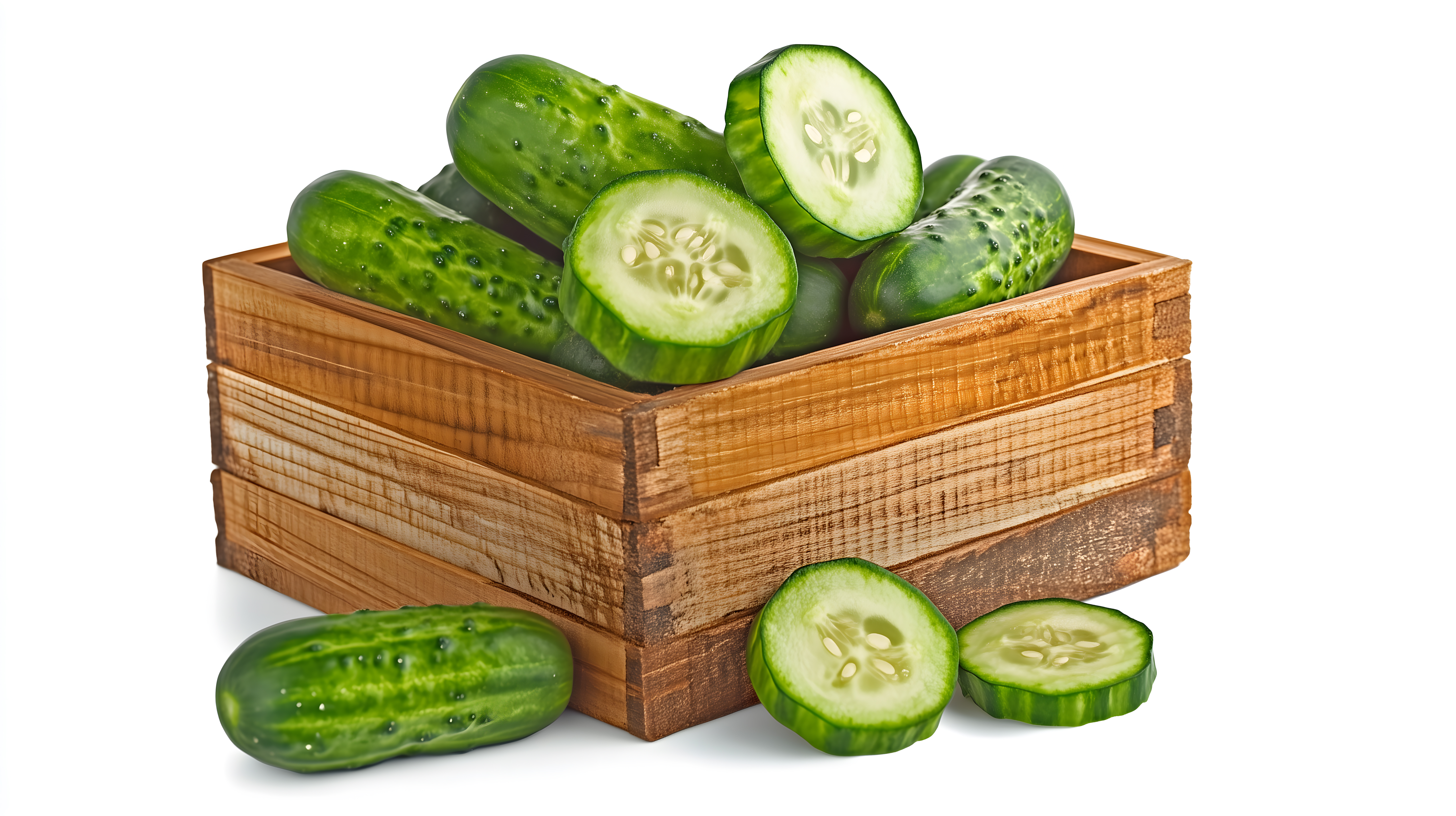 Dieses hochauflösende Stockfoto zeigt eine Kiste voller frischer, bio-zertifizierter Gurken auf einem weißen Hintergrund. Die grünen Gurken haben eine knackig-saftige Konsistenz und eine natürliche, organische Optik. Die rustikale Holzkiste verleiht dem Bild einen ansprechenden, ländlichen Charakter. Dieses Foto eignet sich hervorragend für den Einsatz in Rezepten, Werbematerialien oder Artikeln zum Thema gesunde Ernährung, Vegankost oder nachhaltige Landwirtschaft. Als kostenlos nutzbares Creative-Commons-Bild in hoher Qualität ist es für eine Vielzahl von Print- und Online-Anwendungen geeignet.