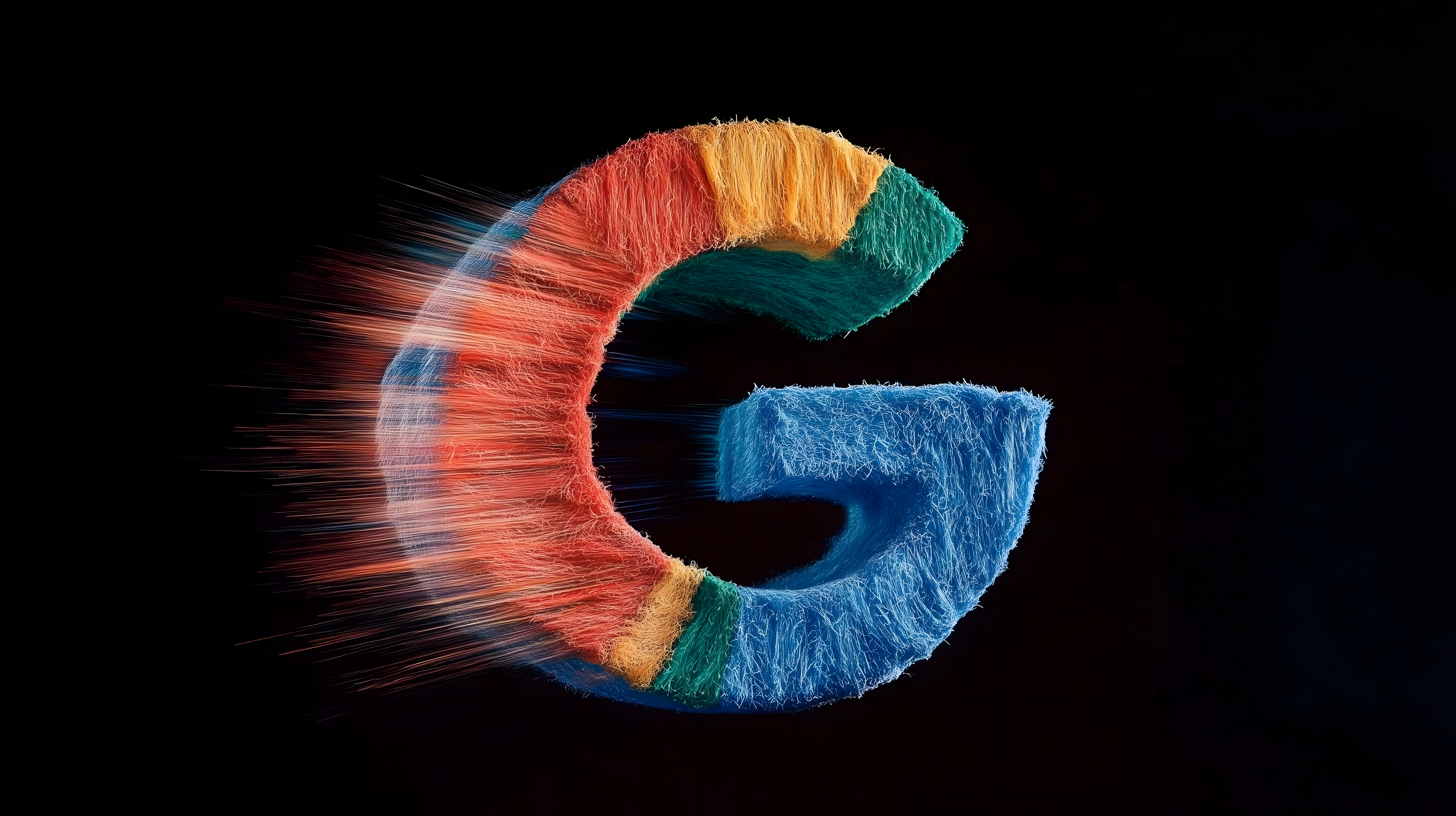 Dieses auffällige Bild zeigt das Google-Logo in einer dynamischen, abstrakten Optik. Die Buchstaben 'G' sind in leuchtenden Farbtönen wie Rot, Gelb, Grün und Blau dargestellt und scheinen in Bewegung zu sein, was einen modernen, kreativen Eindruck vermittelt. Die futuristische Ästhetik eignet sich ideal als Hintergrundbild oder für Illustrationen in Bereichen wie Webdesign, Technologie, Marketing und Werbung. Das hochauflösende, kostenlose Stockfoto ist unter einer Creative-Commons-Lizenz verfügbar.