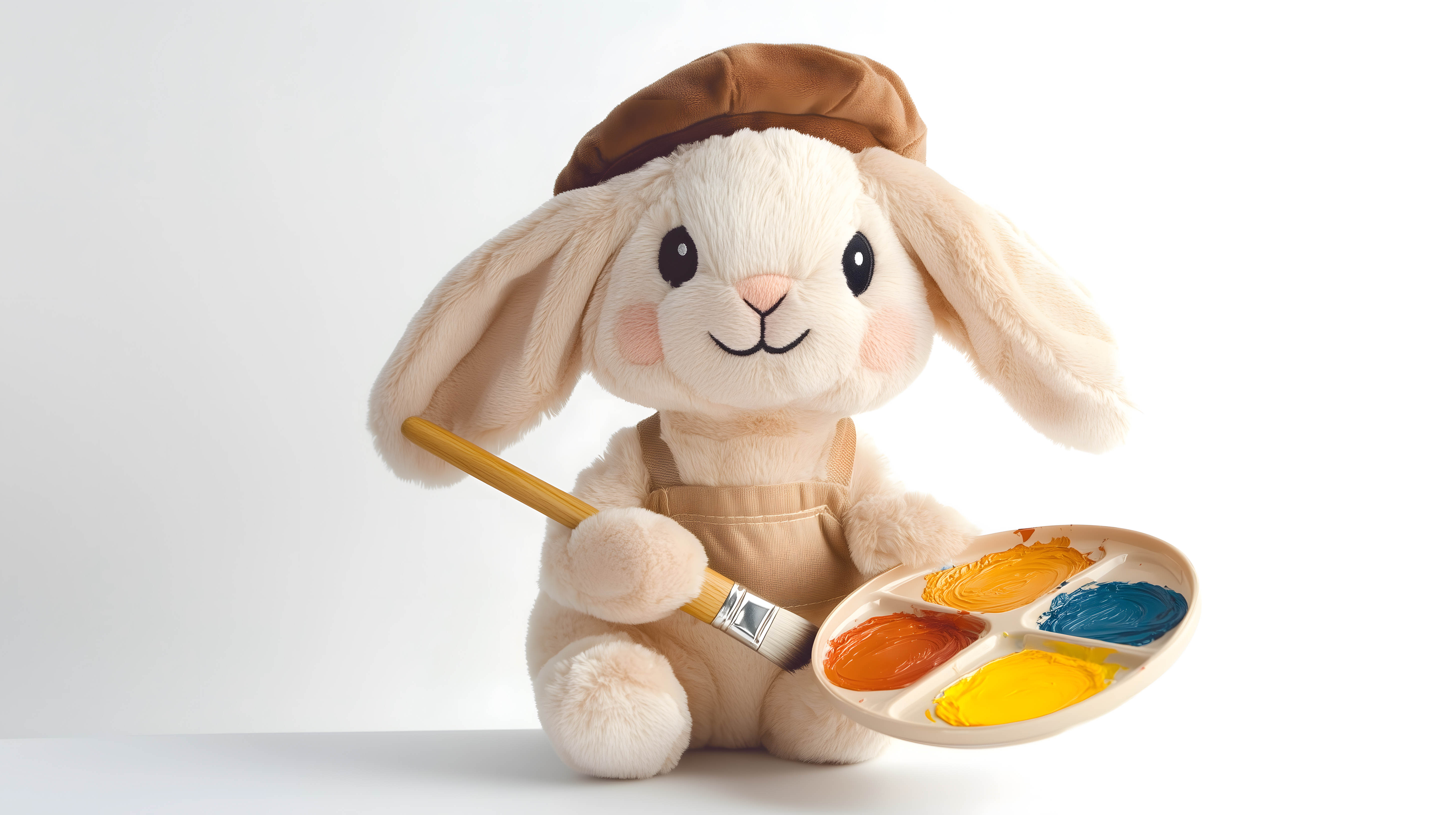 Dieses charmante Bild zeigt einen niedlichen Plüschhase, der einen Malkasten und einen Pinsel in den Pfoten hält. Der flauschige Hase in beige- und braunen Farbtönen sitzt auf einem weißen Hintergrund und scheint bereit zu sein, kreativ loszulegen. Das Foto hat einen verspielten und kinderfreundlichen Charakter und eignet sich hervorragend für den Einsatz in Kinderbüchern, Blogbeiträgen oder Werbekampagnen mit einem süßen, künstlerischen Thema. Als kostenloses Stockfoto in hoher Auflösung und unter einer Creative-Commons-Lizenz kann es vielseitig genutzt werden.