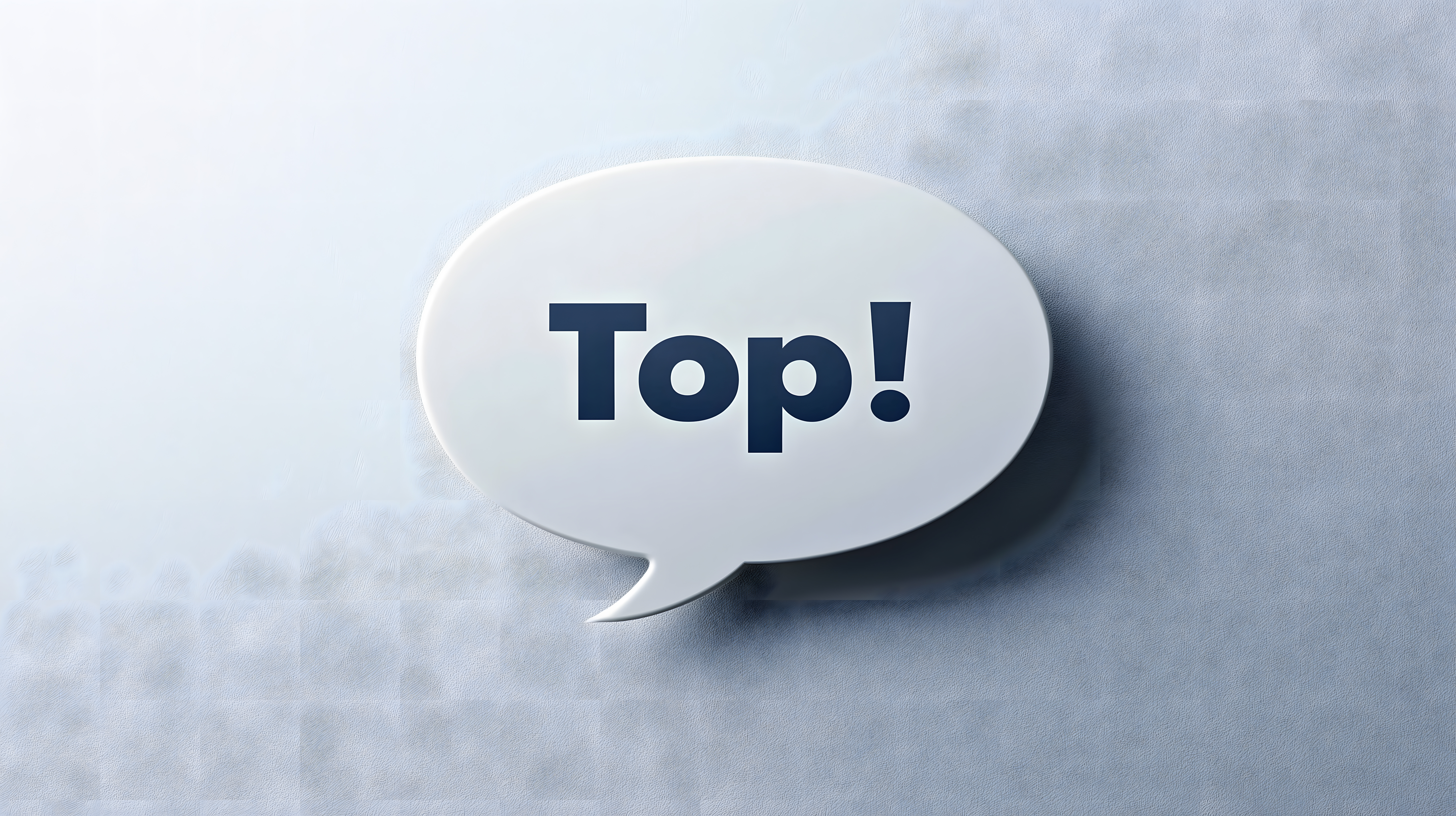 Das Bild zeigt eine weiße, ovale Sprechblase vor einem grauen, verschwommenen Hintergrund. Darauf ist in dunkler Schrift der Schriftzug 'Top!' zu sesen. Dieses Stockfoto eignet sich hervorragend für den Einsatz in Blog-Beiträgen, Newslettern, Social-Media-Kanälen oder Werbematerial, wenn es um Konzepte wie Erfolg, Exzellenz oder herausragende Leistungen geht. Die hochwertige Auflösung und Lizenzierung unter Creative Commons ermöglicht eine unkomplizierte und kostengünstige Nutzung.