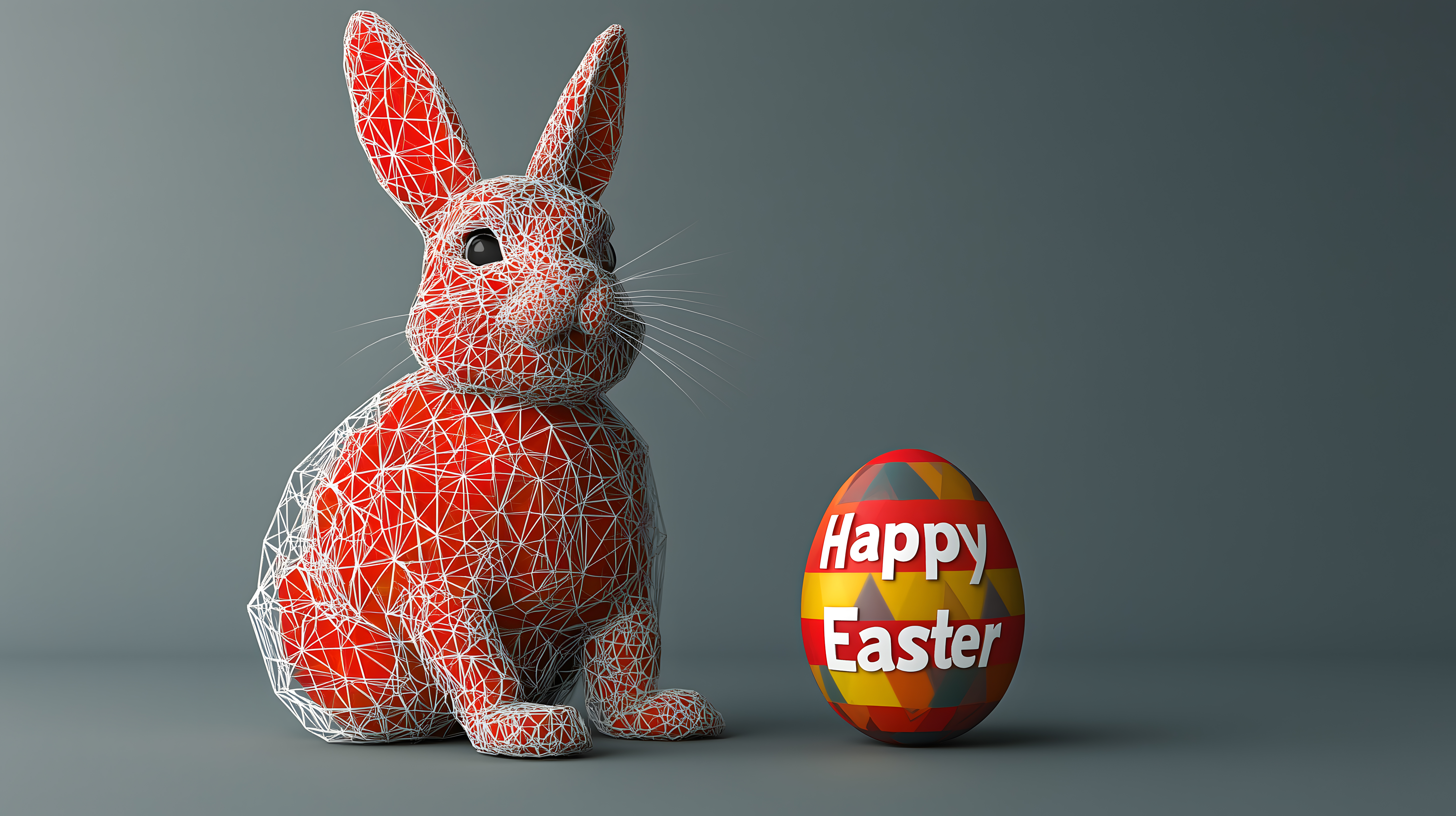 Dieses fantasievolle Stockfoto zeigt einen roten Osterhase mit einer drahtartigen, geometrischen Struktur. Der Hase steht vor einem grau-roten Hintergrund, neben einem bunt bemalten Osterei. Die Komposition vereint traditionelle Ostermotive mit modernem, grafischem Design. Dieses Bild eignet sich perfekt für Oster-Dekorationen, Einladungen, Postkarten oder Werbeanzeigen rund um den Feiertag. Das hochauflösende, lizenzfreie Foto ist unter der Creative-Commons-Lizenz verfügbar und kann kostenlos für private und kommerzielle Zwecke genutzt werden.