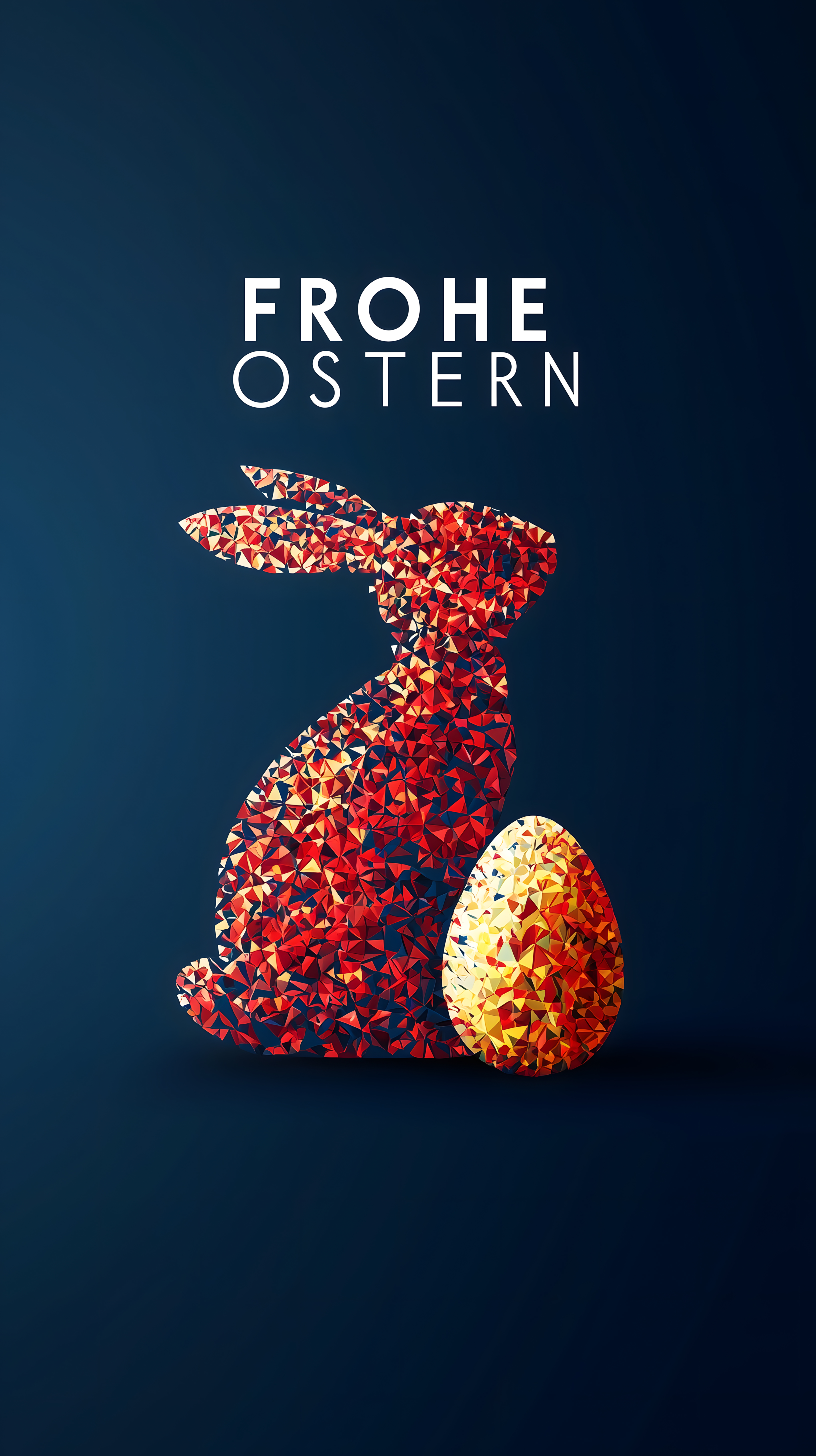 Dieses moderne und minimalistische Osterbild zeigt einen Osterhasen und ein Osterei, die aus geometrischen Formen wie Dreiecken und Polygonen in warmen Rottönen zusammengesetzt sind. Der dunkelblaue Hintergrund lässt die Motive besonders klar und eindrucksvoll hervortreten. Dieses Stockfoto eignet sich hervorragend als dekorativer Hintergrund für Blogbeiträge, Newsletter oder Social-Media-Posts rund um das Osterfest. Das Bild ist kostenlos, hochauflösend und unter einer Creative-Commons-Lizenz verfügbar.