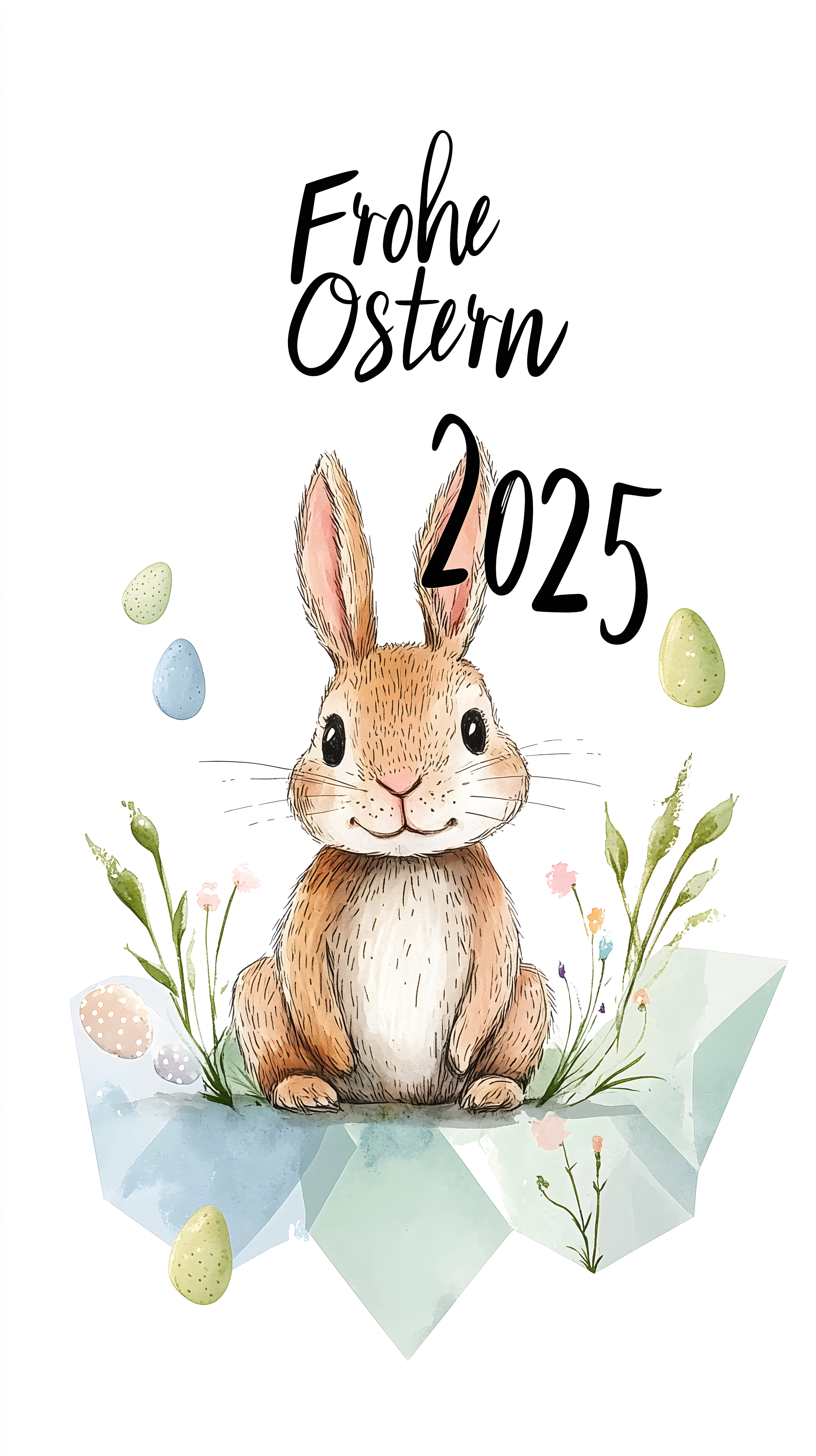 Dieses süße Osterhasenbild ist eine ideale Vorlage für Grußkarten, Instagram-Stories, Whatsapp-Nachrichten und andere Einsatzzwecke rund um Ostern. Der detailliert gezeichnete Hase sitzt inmitten von Frühlingsblumen, gefärbten Ostereiern und geometrischen Formen. Das farbenfrohe, kreative Design vermittelt eine fröhliche Osterstimmung und kann kostenfrei als hochauflösendes Stockfoto unter der Creative-Commons-Lizenz genutzt werden.