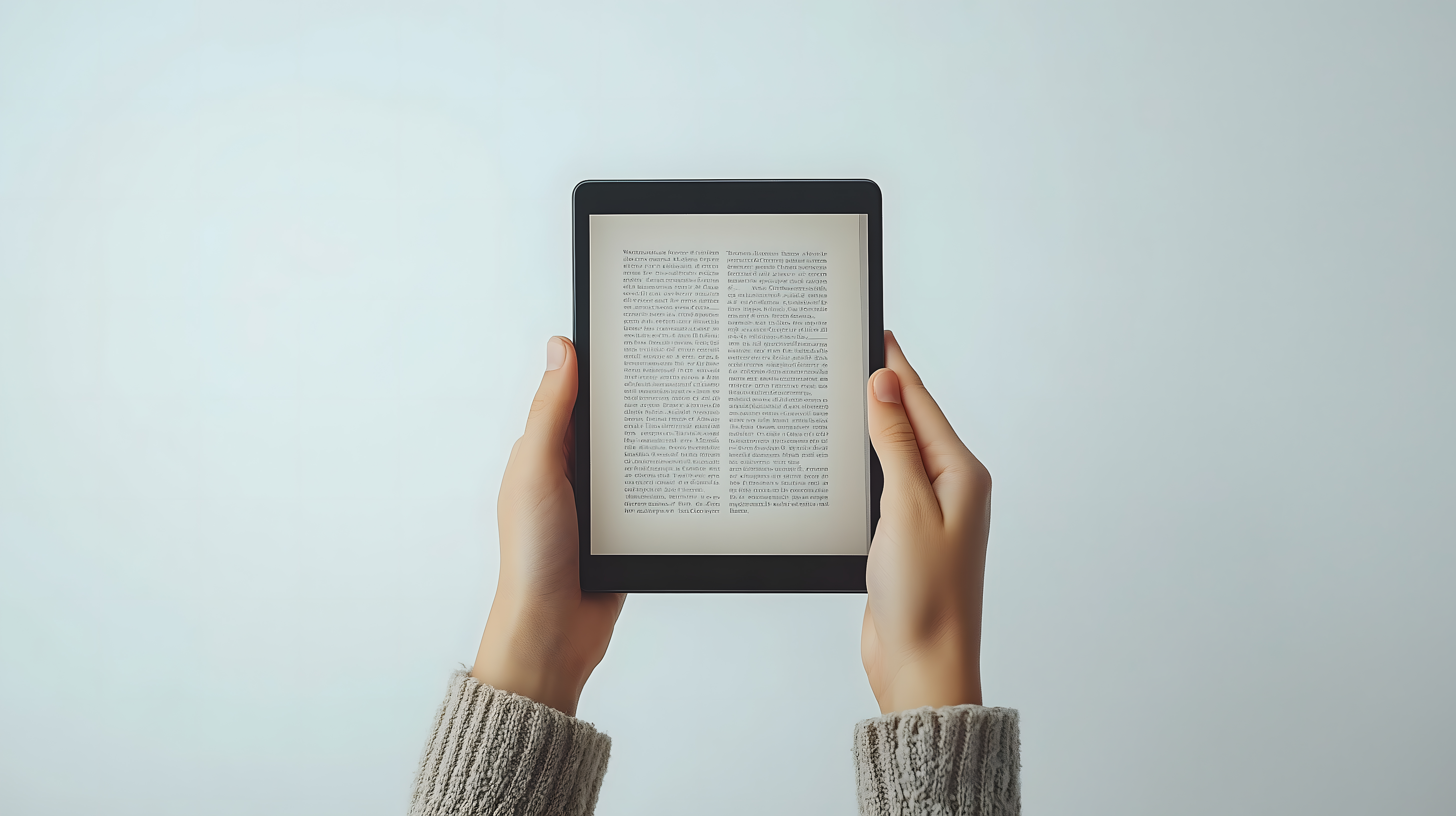 Dieses Stockfoto zeigt ein elektronisches Lesegerät, das in den Händen einer Person gehalten wird. Der Text auf dem Display des Geräts ist deutlich zu erkennen, was auf eine entspannte Lektüre hindeutet. Der helle, einfarbige Hintergrund sorgt für einen minimalistischen und ruhigen Gesamteindruck. Dieses Bild eignet sich hervorragend für die Verwendung in Blogbeiträgen, Newslettern, Social-Media-Kanälen oder Werbematerialien, die sich mit dem Thema des digitalen Lesens, der Literatur oder der Technologie befassen. Das hochauflösende Foto ist unter einer Creative-Commons-Lizenz frei verwendbar.