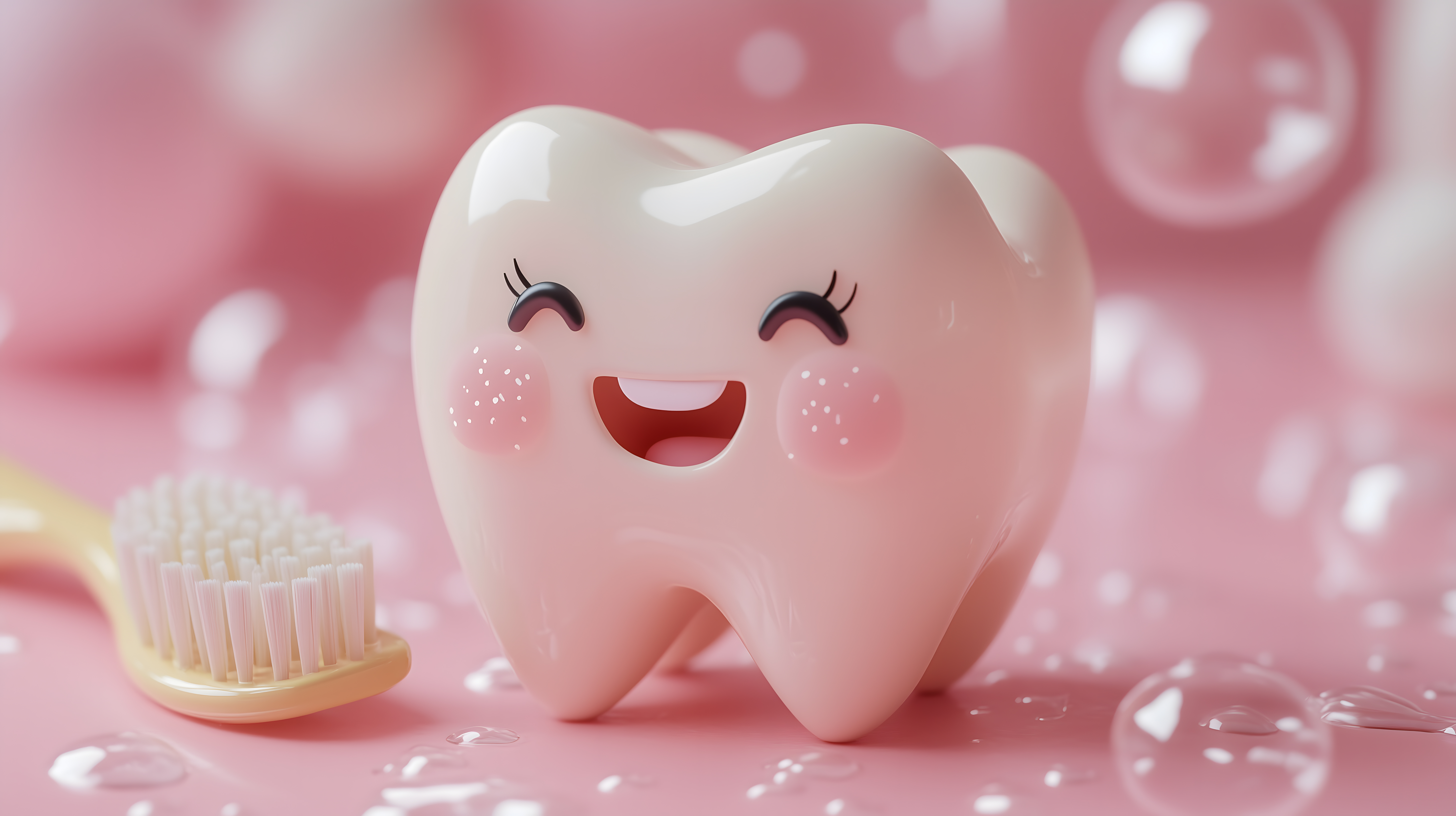 Dieses charmante Foto zeigt einen lachenden Zahn mit einer Zahnbürste in einem verspielten, kindlichen Design. Der Zahn ist weiß und glänzend, mit fröhlichen Augen und einem breiten Lächeln. Der rosa Hintergrund ist mit Seifenblasen verziert, was dem Bild eine fröhliche, spielerische Atmosphäre verleiht. Dieses Stockfoto eignet sich hervorragend für Verwendung in Blogbeiträgen, Newslettern, Social-Media-Posts oder Werbematerialien rund um das Thema Zahnpflege, Mundgesundheit und Kinderzimmer-Design. Das hochauflösende Bild ist unter einer Creative-Commons-Lizenz frei verfügbar.