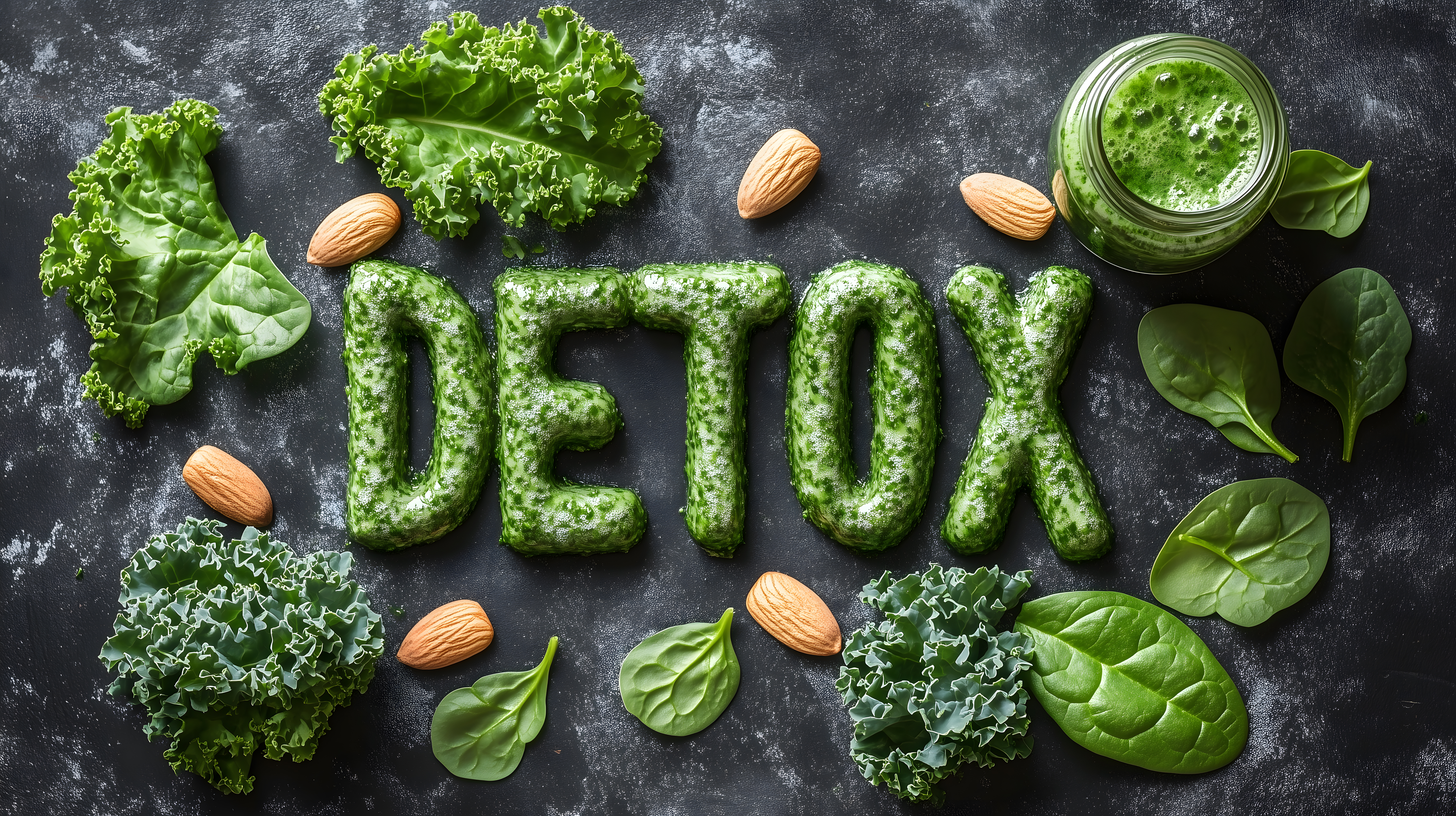 Dieses Foto zeigt einen Detox-Schriftzug, der aus grünen Smoothie-Zutaten wie Spinat, Mandeln und anderen Blattgemüsen kreativ zusammengestellt wurde. Der rustikale, dunkle Hintergrund lässt die leuchtenden Grüntöne der Lebensmittel besonders gut zur Geltung kommen und verleiht dem Bild eine natürliche, gesundheitsbewusste Ausstrahlung. Dieses stimmungsvolle Stockfoto eignet sich hervorragend für Fitnessblogs, Wellness-Websites oder Werbematerialien rund um das Thema gesunde Ernährung, Detox und Körperaufreinigung. Das hochauflösende Foto steht unter der Creative-Commons-Lizenz und kann kostenlos für kommerzielle und redaktionelle Zwecke genutzt werden.