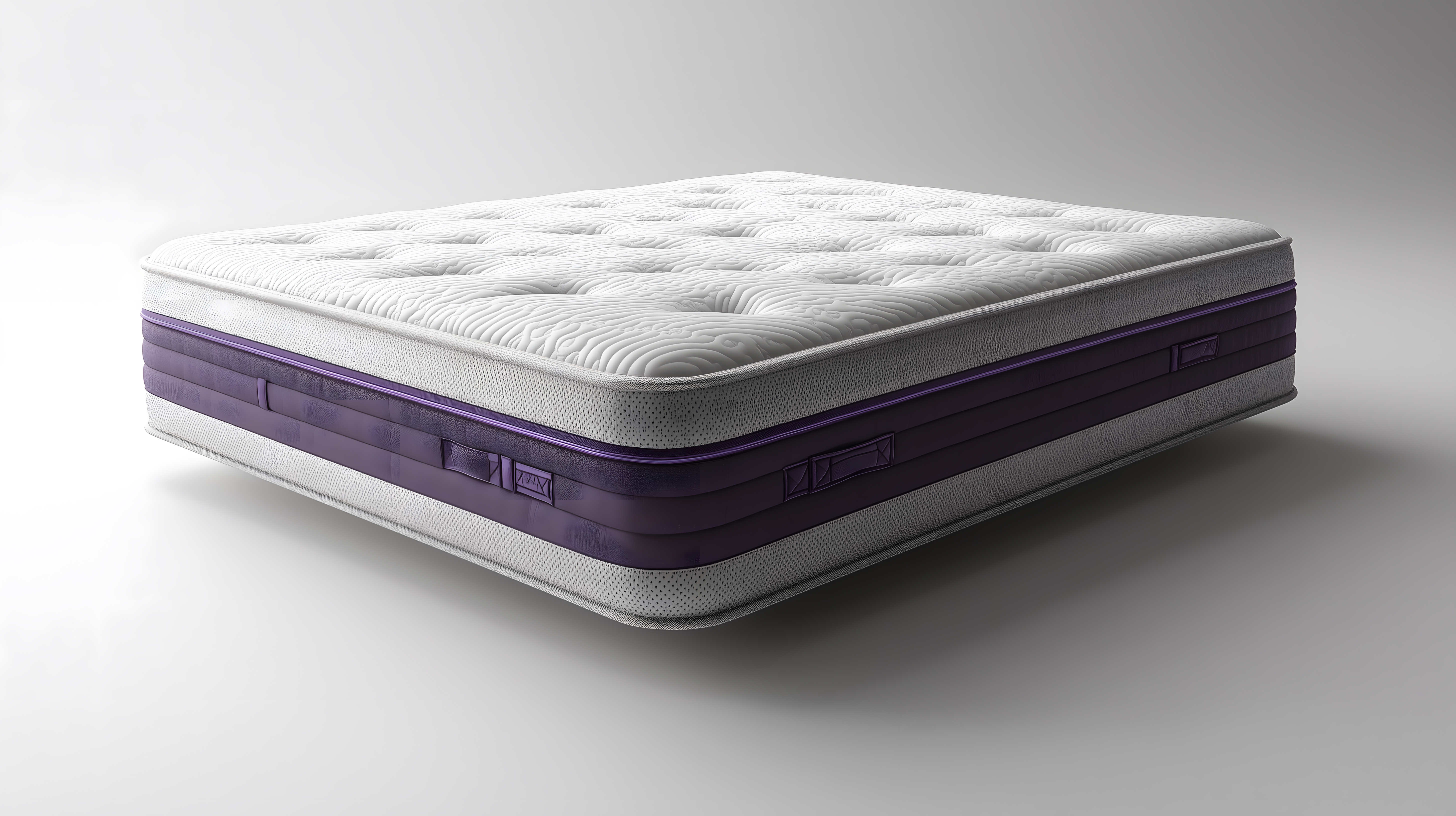 Das Bild zeigt eine hochwertige Matratze mit einem gesteppten Stoffbezug in Grau und violetten Akzenten. Die Matratze hat einen Schaumstoffkern, der für hohen Schlafkomfort und Erholung sorgt. Dieses Produktfoto eignet sich hervorragend für den Einsatz in Blogs, Newslettern, Social-Media-Posts oder Werbematerialien rund um Schlafzimmer- oder Möbelthemen. Als kostenloses Stockfoto in hoher Auflösung und unter Creative-Commons-Lizenz verfügbar, lässt es sich leicht in verschiedene Projekte integrieren.