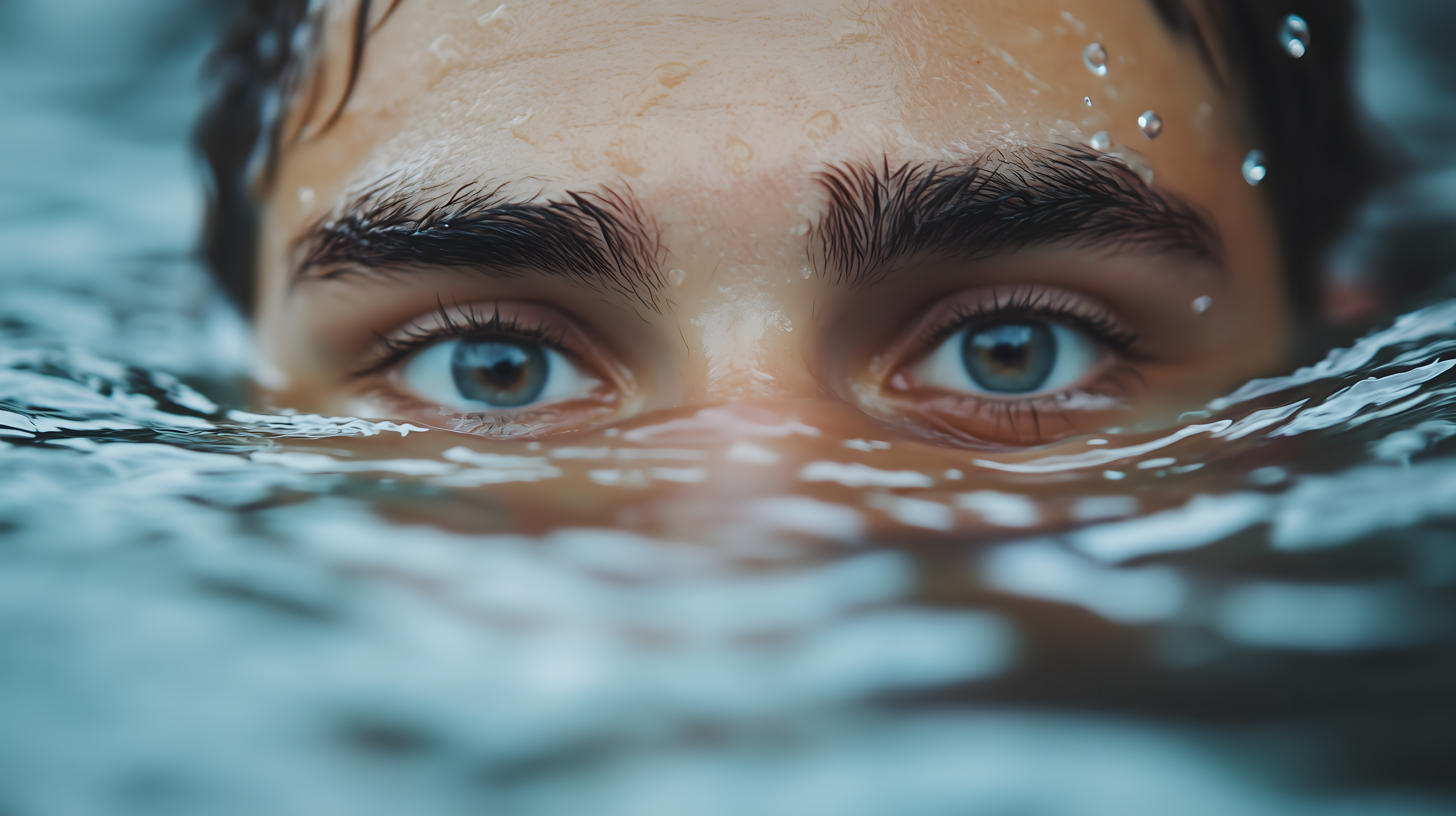Das Bild zeigt eine Nahaufnahme des Gesichts einer Frau, die gerade aus dem Wasser auftaucht. Ihre blauen Augen blicken direkt in die Kamera, während das Wasser an ihrem Gesicht herabfließt. Die Perspektive lässt den Betrachter fast selbst in das Wasser eintauchen und die erfrischende Szene erleben. Dieses hochwertige Stockfoto eignet sich hervorragend für den Einsatz in Blogbeiträgen, Newslettern, Social-Media-Beiträgen oder Werbematerialien rund um die Themen Natur, Wellness, Sommer und Entspannung. Es ist in hoher Auflösung verfügbar und kann unter einer kostenlosen Creative-Commons-Lizenz genutzt werden.
