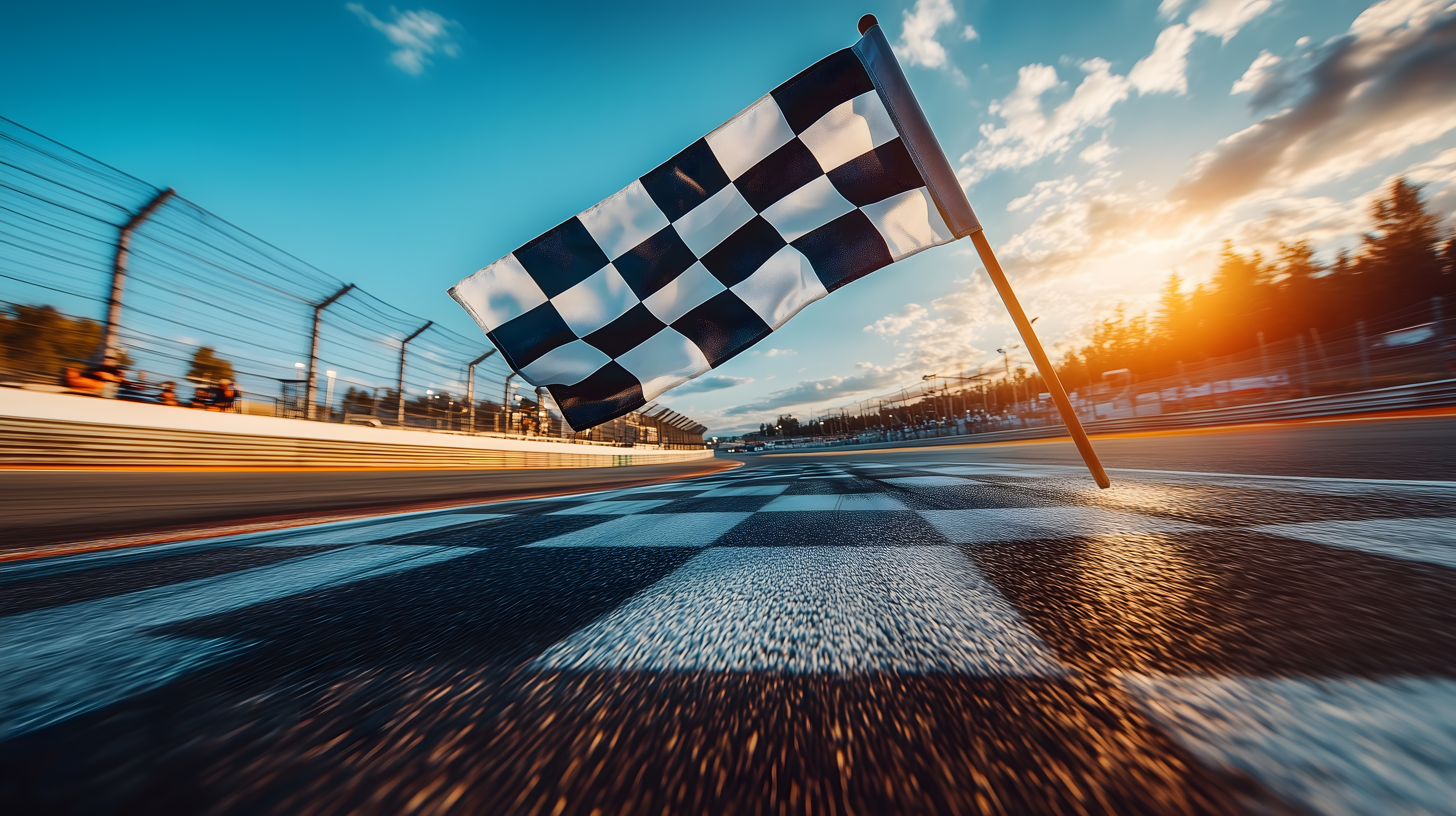 Dieses faszinierende Foto zeigt eine Zielflagge auf einer Rennstrecke während eines atemberaubenden Sonnenuntergangs. Die Flagge weht im Wind, umgeben von einer schnell vorbeiziehenden, verschwommenen Landschaft. Die Perspektive lässt den Betrachter direkt in die Aktion eintauchen und vermittelt das Gefühl von Geschwindigkeit und Wettbewerb. Die Kontraste zwischen dem klaren Himmel, den Wolkenformationen und der dynamischen Bewegung auf der Strecke schaffen eine einzigartige, stimmungsvolle Atmosphäre. Dieses hochauflösende Stockfoto eignet sich hervorragend für Blogbeiträge, Newsletter, Social-Media-Posts oder Werbematerial rund um Motorsport, Rennen und Wettbewerbe. Es steht unter einer Creative-Commons-Lizenz zur freien Verwendung zur Verfügung.