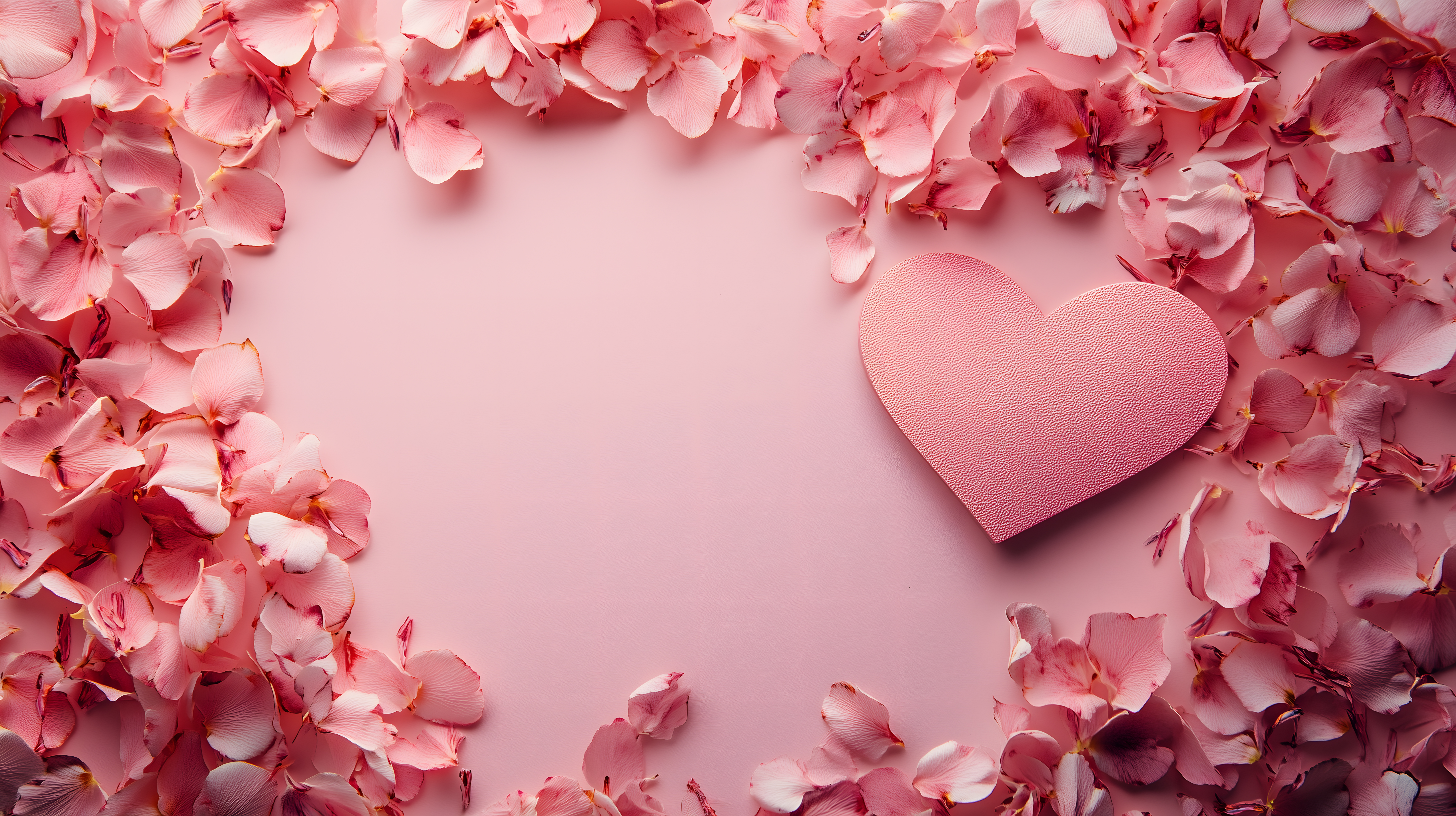 Dieses romantische Stockfoto zeigt ein rosa Papierherz, umgeben von zarten Blütenblättern auf einem rosafarbenen Hintergrund. Die Draufsicht-Perspektive und die weichen Pastelltöne schaffen eine stimmungsvolle, verträumte Atmosphäre. Dieses hochwertige Foto eignet sich hervorragend als Hintergrund, Dekoration oder Gestaltungselement für Grußkarten, Einladungen, Blogs und Werbematerial rund um Themen wie Liebe, Romantik, Hochzeit oder Muttertag. Das frei lizenzierte Stockfoto ist in hoher Auflösung verfügbar und kann kostenlos für private und kommerzielle Zwecke genutzt werden.