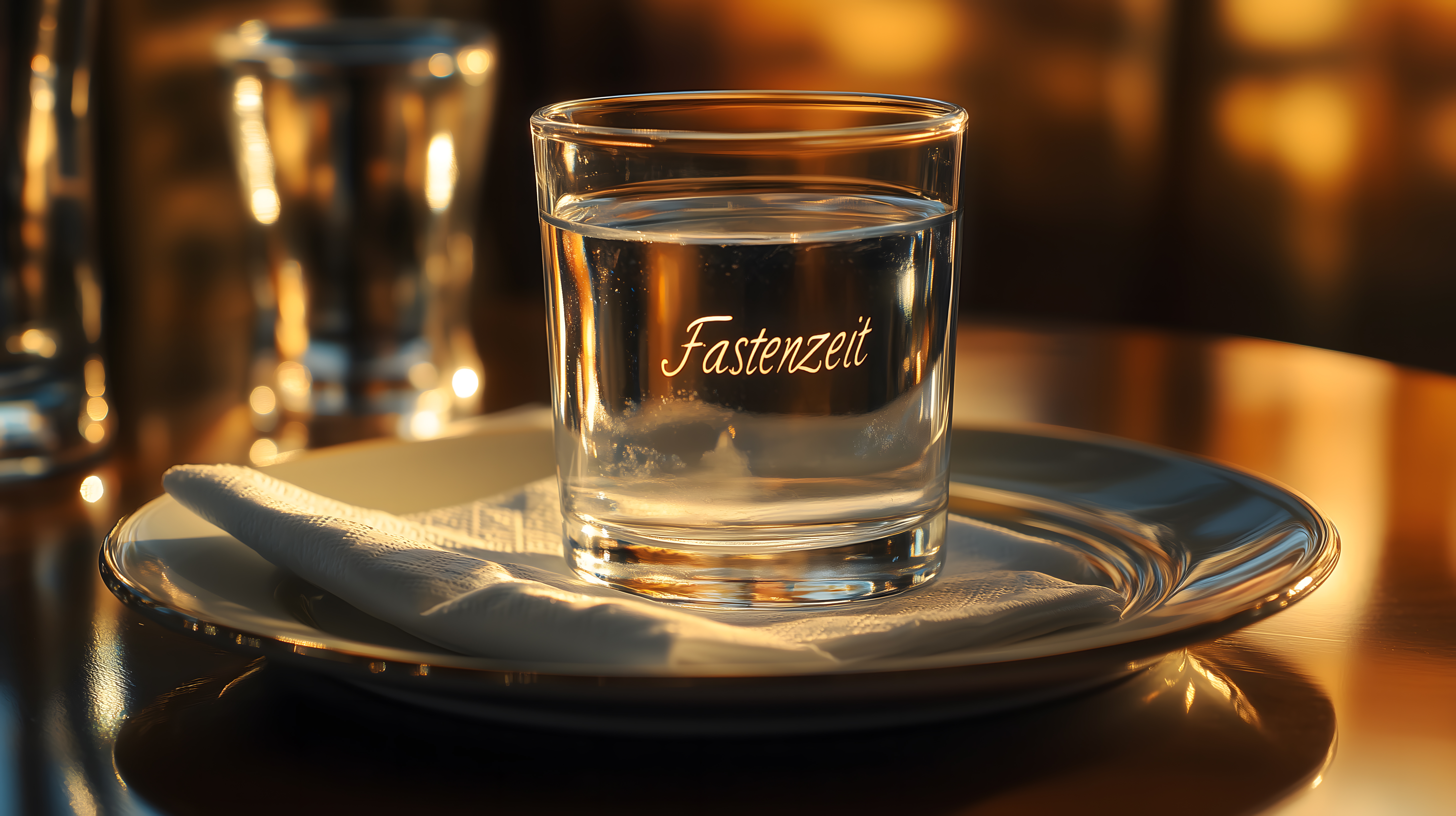 Dieses stimmungsvolle Foto zeigt ein Glas Wasser, das auf einem Teller steht und von warmen Farbtönen umgeben ist. Das Glas trägt die Aufschrift 'Fastenzeit', was auf einen spirituellen oder religiösen Kontext hindeutet. Die Szene vermittelt eine Atmosphäre der Ruhe, Konzentration und Einfachheit, die oft mit Fastenphasen oder Reinigungsritualen assoziiert werden. Das Foto eignet sich hervorragend als kostenloses Stockfoto für Blogs, Newsletter oder soziale Medien, wenn es um Themen wie Selbstreflexion, Wellness, Lebensstil oder Spiritualität geht. Die hochauflösende Qualität und die Creative-Commons-Lizenz ermöglichen eine flexible und rechtssichere Verwendung.