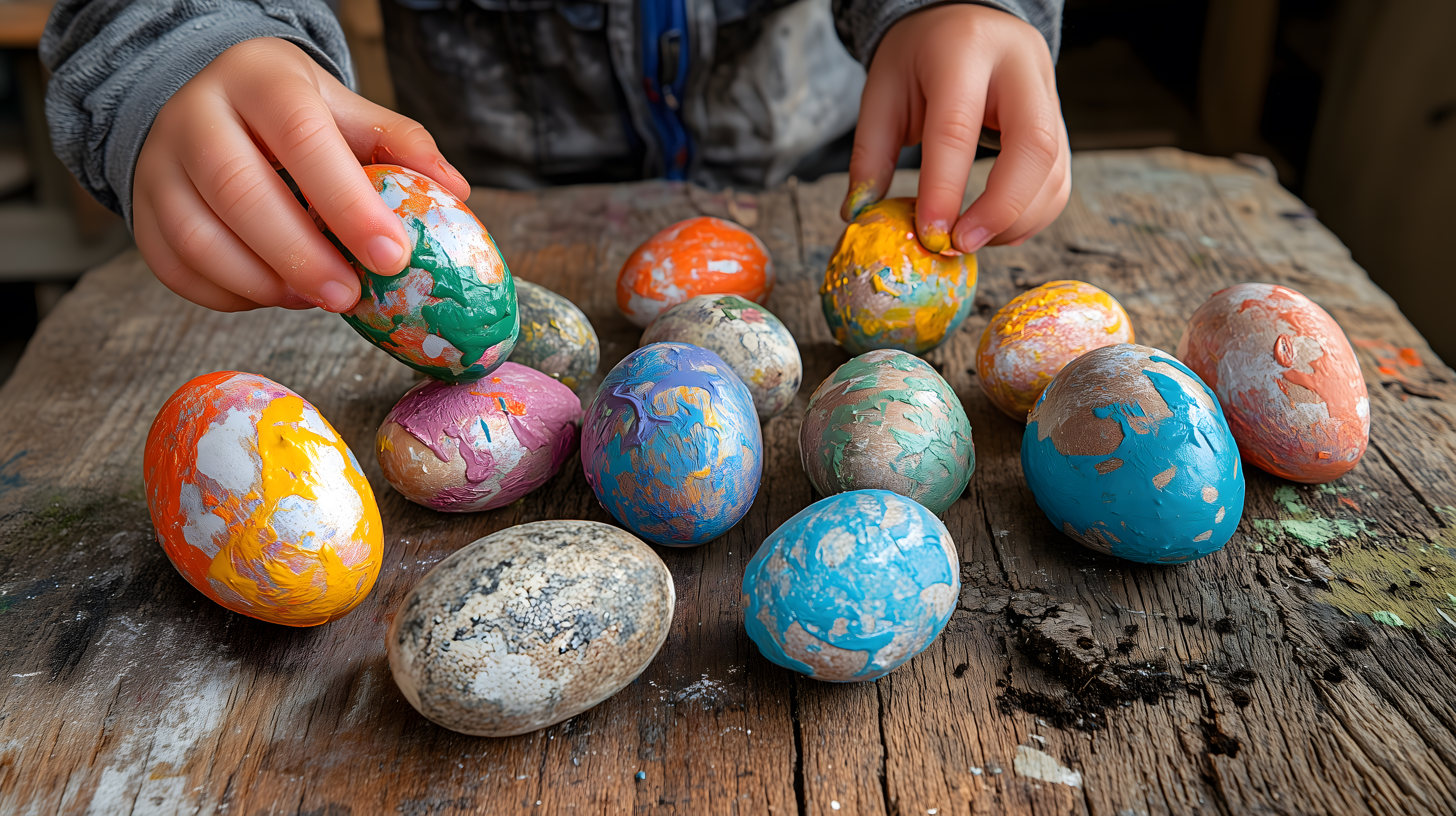 Dieses kreative Stockfoto zeigt eine Reihe bunt bemalter Ostereier auf einem rustikalen Holztisch. Die Eier sind in verschiedenen leuchtenden Farben und Mustern gestaltet, was auf die Kreativität und den Spaß hindeutet, den das Verzieren von Ostereiern bereitet. Das Bild hat eine detailreiche, nahaufnahme-artige Perspektive und bietet einen tollen Hintergrund oder Textfreiraum für Oster-Dekorationen, Grußkarten, Blogbeiträge oder Social-Media-Posts. Als kostenloses, hochauflösendes Stockfoto unter Creative-Commons-Lizenz ist es vielseitig einsetzbar.