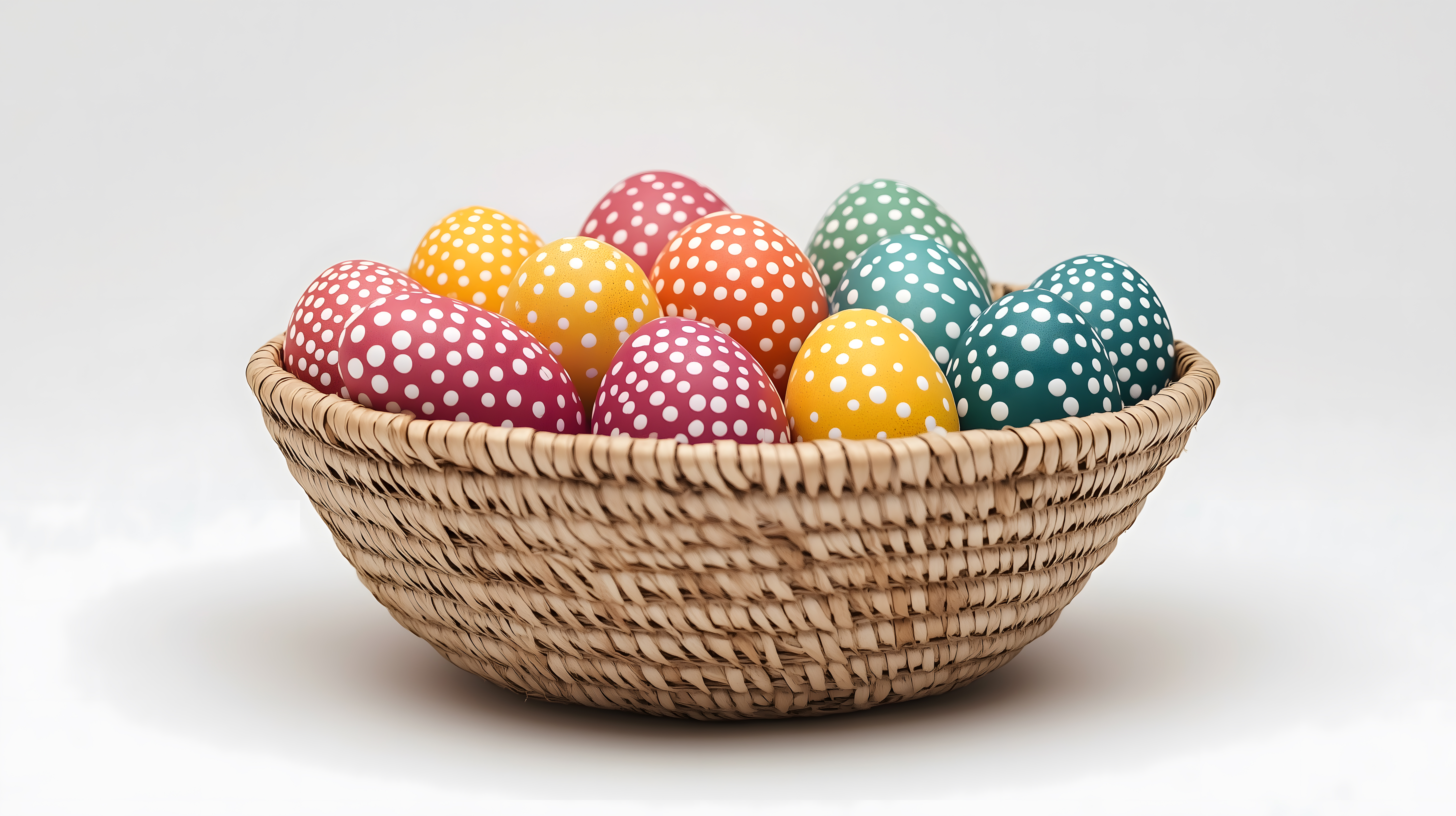 Dieses Foto zeigt eine Ansammlung bunt bemalter Ostereier, die in einem rustikalen Korbgeflecht platziert sind. Die Eier sind in verschiedenen Farben und Mustern gestaltet, darunter kräftige Rottöne, helle Gelb- und Orangetöne sowie pastellige Grün- und Blautöne mit weißen Punkten. Der Korb selbst ist aus natürlichen Materialien gefertigt und verleiht der Komposition einen ländlichen, gemütlichen Charakter. Dieses Foto eignet sich hervorragend als kostenloses Stockfoto für Oster-Dekorationen, Blog-Beiträge, Newsletter und Werbematerialien rund um das Osterfest. Es ist in hoher Auflösung verfügbar und unter einer Creative-Commons-Lizenz lizenziert.