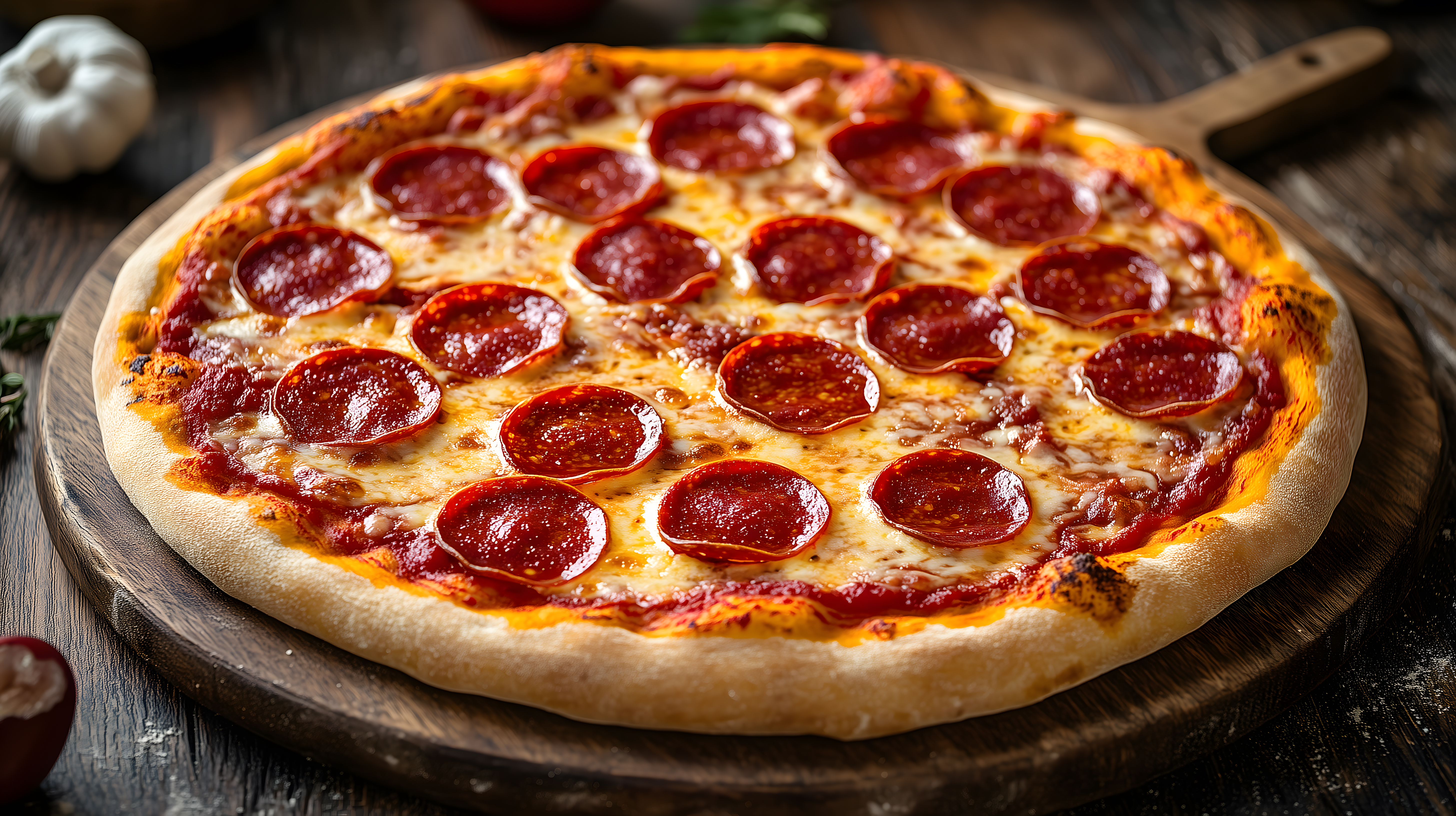 Dieses Foto zeigt eine knusprig gebackene Pepperoni-Pizza mit reichlich Belag. Der Rand ist schön goldbräunlich und verleiht der Pizza einen leckeren, rustikalen Look. Die Tomatensoße, der geschmolzene Käse und die würzigen Pepperoni-Scheiben ergeben zusammen ein köstliches, appetitliches Gesamtbild. Dieses hochwertige Stockfoto in hoher Auflösung eignet sich perfekt für Verwendungen in Blogs, Social-Media-Beiträgen, Restaurantmenüs oder Werbematerialien zum Thema Pizza, italienische Küche oder leckere Snacks. Die Lizenz ist Creative Commons, sodass das Foto kostenfrei genutzt werden kann.