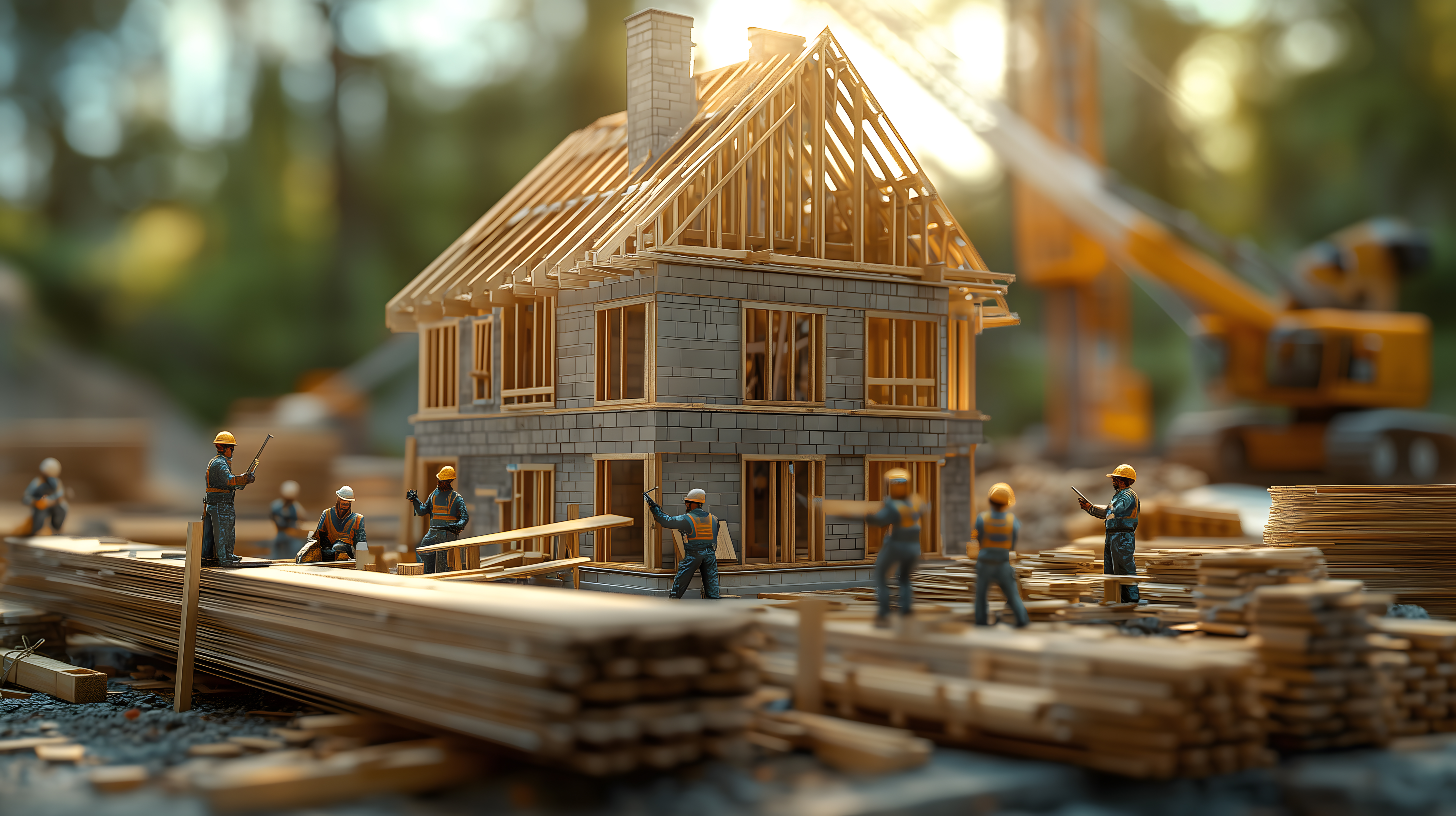 Dieses faszinierende Foto zeigt eine malerische Baustelle, die von der warmen Abendsonne beleuchtet wird. Im Vordergrund sieht man die detaillierten Holzkonstruktionen eines Gebäudes, das gerade errichtet wird. Mehrere Arbeiter in Schutzkleidung sind bei der Arbeit zu sehen, was eine lebendige Industrieszene schafft. Die Holzbalken, Fassade und Schatten zeichnen ein stimmungsvolles Bild einer traditionellen Bauweise. Dieses hochauflösende Stockfoto eignet sich perfekt für Blogs, Newsletter oder soziale Medien rund um Themen wie Architektur, Handwerk oder Hausbau. Es steht unter der Creative-Commons-Lizenz zur kostenlosen Verwendung zur Verfügung.