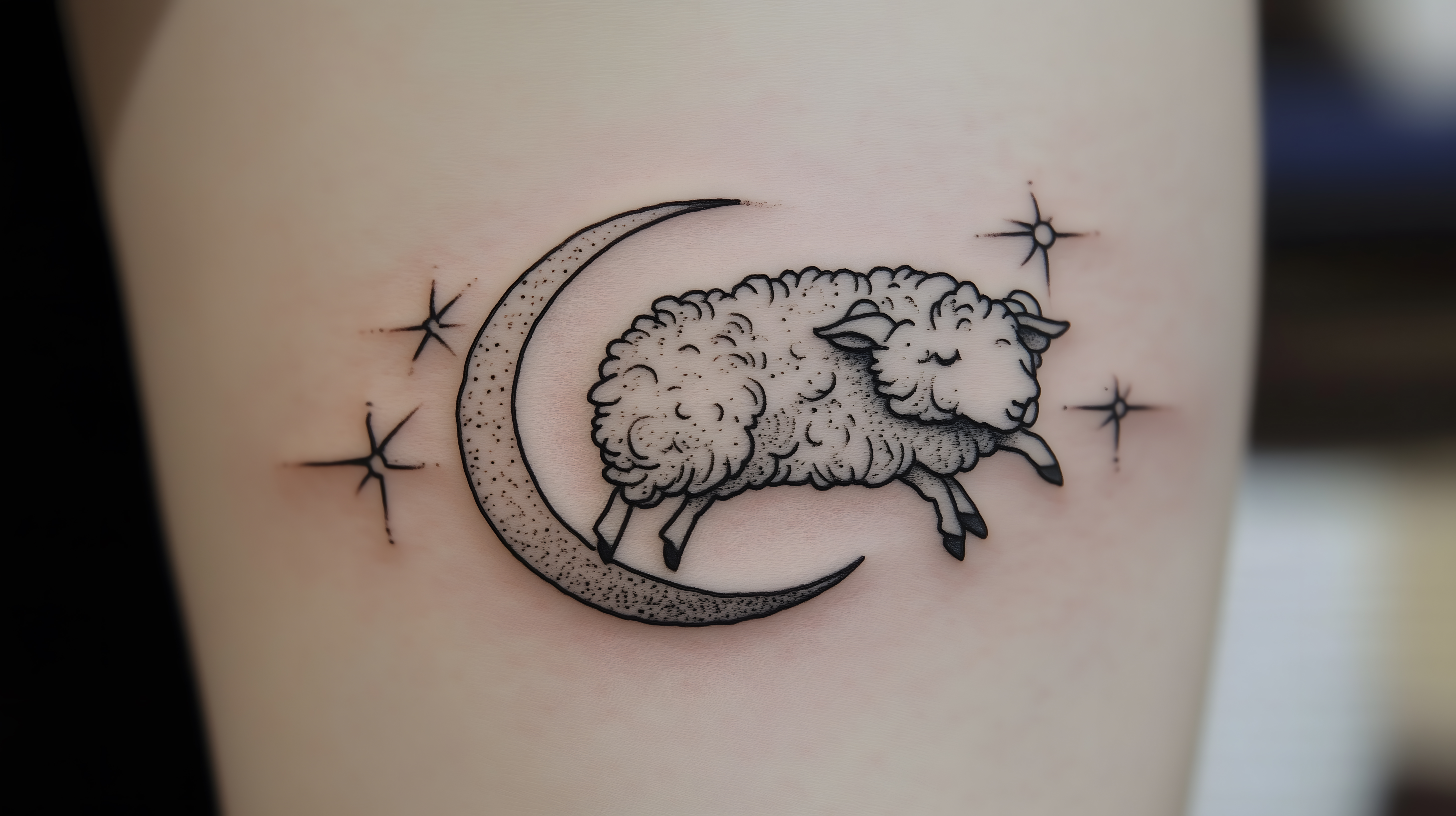 Dieses Stockfoto zeigt ein schlafendes Schaf, das auf einer Mondsichel sitzt und von Sternen umgeben ist. Das Motiv ist im minimalistischen Stil gehalten und sieht beinahe wie eine handgezeichnete Illustration aus. Die Kombination aus dem Schaf, dem Mond und den Sternen schafft eine ruhige, fast magische Atmosphäre. Dieses Bild eignet sich hervorragend als Hintergrundbild, Grafikelement oder Illustrationsvorlage für Blogs, Werbung, Social-Media-Posts oder Newsletter rund um die Themen Natur, Ruhe, Wellness und Spiritualität. Das hochauflösende Stockfoto ist unter einer Creative-Commons-Lizenz frei verfügbar.