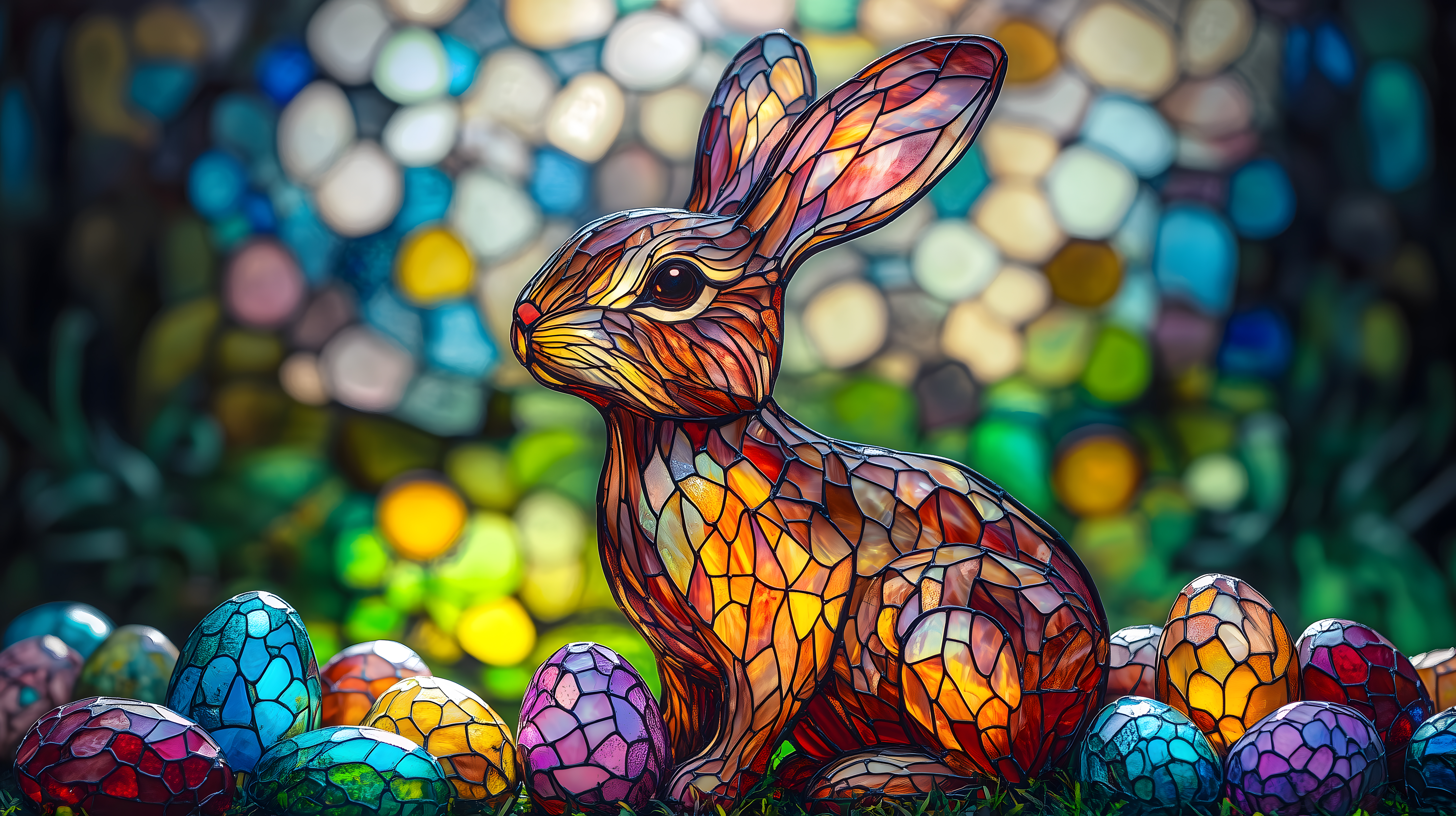 Dieses farbenprächtige Bild zeigt einen Osterhase, der aus buntem Glas oder Mosaik gefertigt wurde. Er thront inmitten einer Vielzahl von bunten Ostereiern vor einem unscharfen, aber farbenfrohen Hintergrund. Die Komposition und Farbgebung verleihen dem Motiv einen künstlerischen, fast märchenhaften Charakter. Dieses hochauflösende, kostenloses Stockfoto eignet sich hervorragend für die Verwendung in Blogs, Newslettern, Social-Media-Beiträgen oder Werbematerial rund um Ostern und Frühlingsfeste. Es steht unter einer Creative-Commons-Lizenz zur Verfügung.