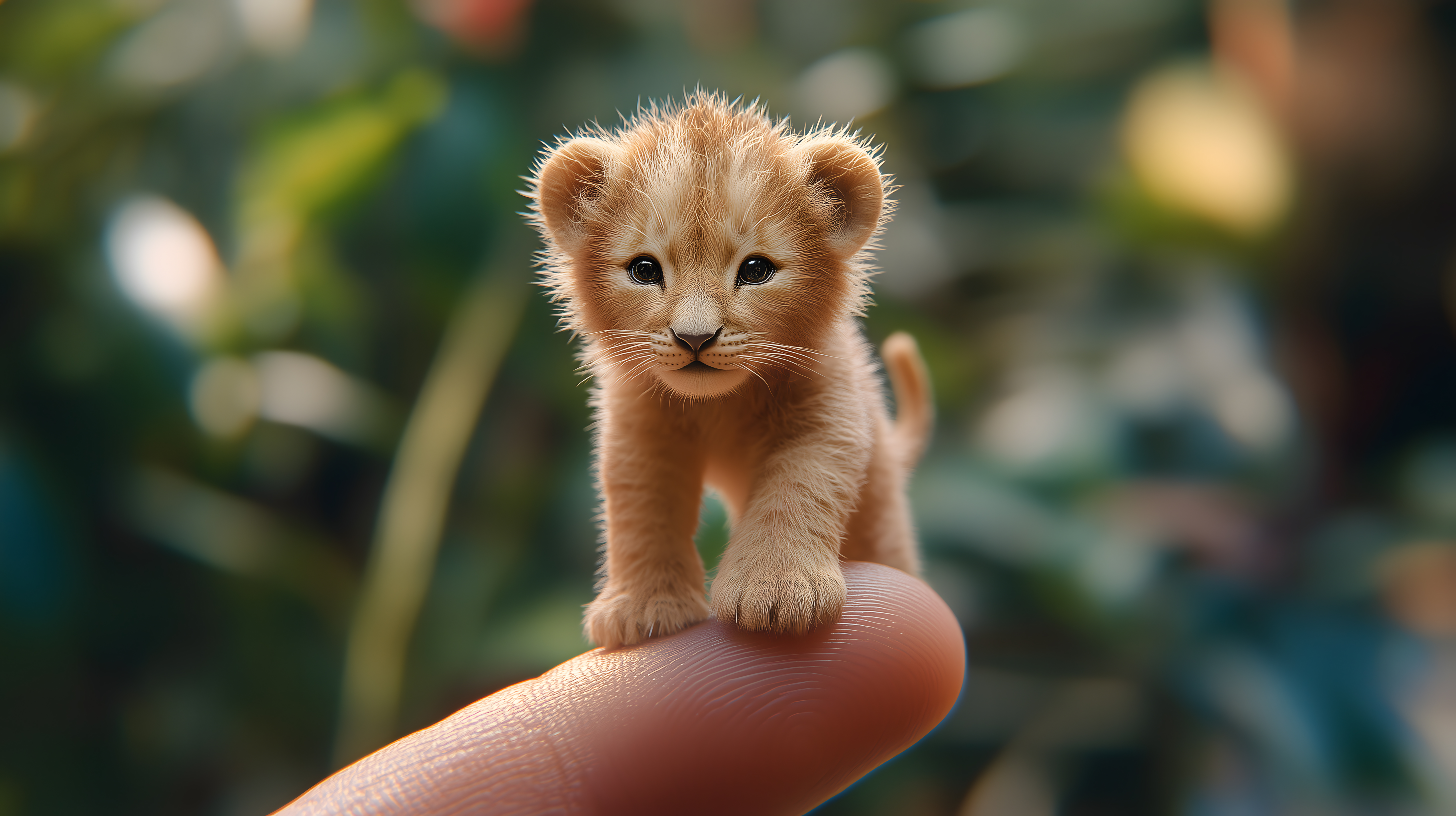 Dieses fantastische Foto zeigt ein winziges, flauschiges Löwenjunges, das elegant auf der Fingerspitze eines Menschen sitzt. Die Perspektive und Makroaufnahme verleihen dem Bild eine surreale und märchenhafte Atmosphäre. Das Löwenbaby mit seinem weichen, goldenen Fell und seinen großen, unschuldigen Augen strahlt eine enorme Zartheit und Verletzlichkeit aus, die den Betrachter sofort in ihren Bann zieht. Dieses hochauflösende Stockfoto eignet sich hervorragend für den Einsatz in Blogbeiträgen, Newslettern, Werbe- und Social-Media-Kampagnen rund um Themen wie Tierwelt, Naturschutz oder Niedlichkeit. Das Foto ist unter der Creative-Commons-Lizenz kostenlos verfügbar.