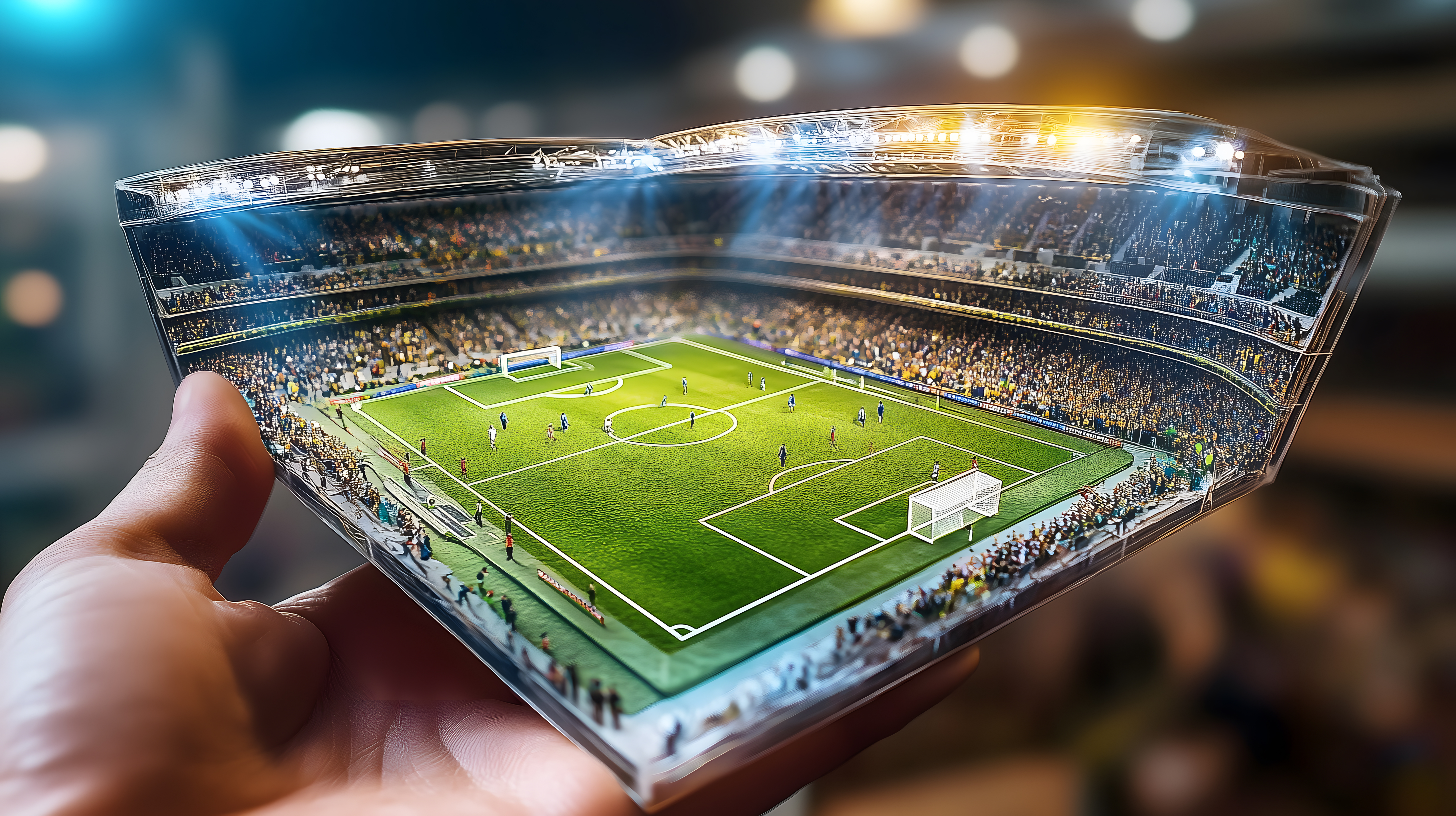 Dieses Foto zeigt ein detailliertes Miniaturmodell eines Fußballstadions, das in den Händen einer Person zu sehen ist. Das Stadion ist realistisch dargestellt, mit einem grünen Spielfeld, beleuchteten Tribünen und einer großen Zuschauerkulisse. Die Perspektive lässt den Betrachter das Geschehen auf dem Platz aus einer ungewöhnlichen Nahaufnahme erleben. Dieses Foto eignet sich hervorragend für die Verwendung in Blogbeiträgen, Werbekampagnen oder Social-Media-Postings rund um das Thema Fußball, Sportveranstaltungen oder Kreativität. Als kostenloses Stockfoto in hoher Auflösung und unter Creative-Commons-Lizenz kann es frei genutzt werden.