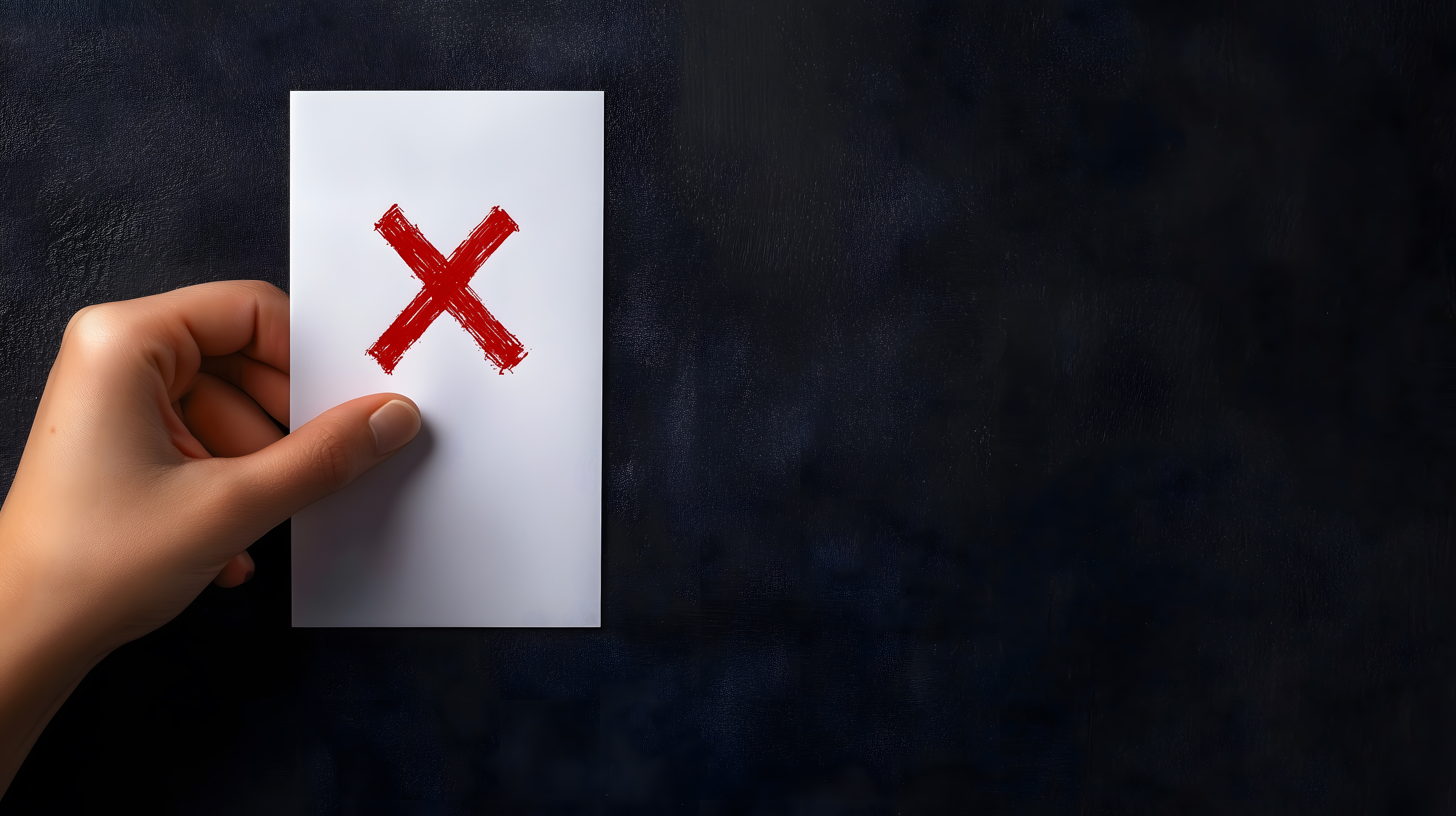 Dieses Foto zeigt ein rotes 'X'-Symbol auf einem weißen Blatt Papier vor einem dunklen Hintergrund. Das Bild vermittelt den Eindruck einer Abstimmung oder Entscheidung, bei der das rote Kreuz als Symbol für eine Ablehnung oder Nichtzustimmung dient. Die Schwarz-Weiß-Optik und die klare, minimalistisch gestaltete Komposition verleihen dem Motiv eine stilvolle, konzeptuelle Ausstrahlung. Dieses kostenfrei nutzbare Stockfoto kann beispielsweise in Blogs, Newslettern, Social-Media-Posts oder Werbematerialien eingesetzt werden, um Themen wie Wahlen, Entscheidungsfindung, Zustimmung oder Ablehnung visuell zu unterstützen. Die hochauflösende, Creative-Commons-lizenzierte Datei eignet sich für eine Vielzahl digitaler und gedruckter Anwendungen.