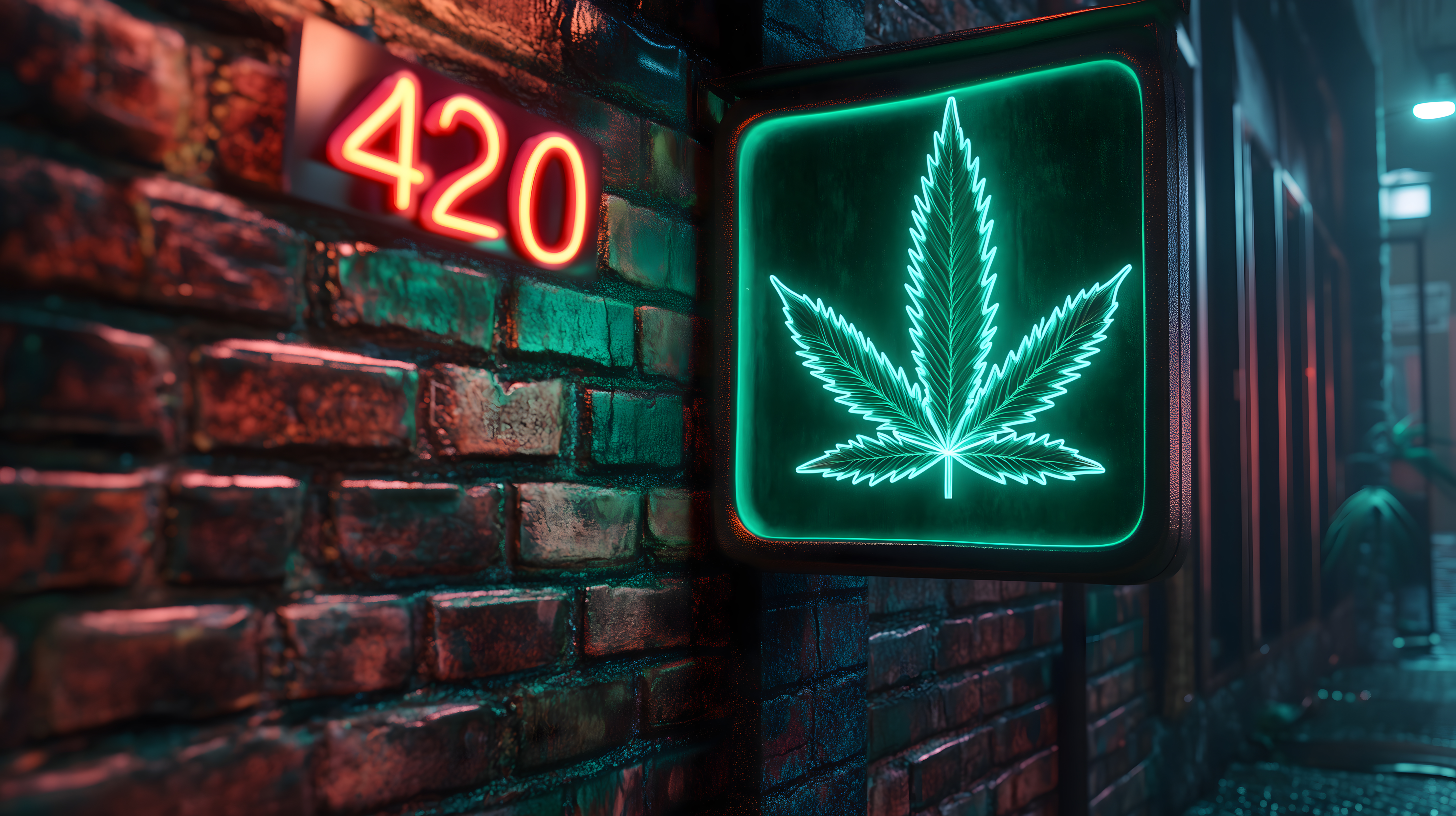 Das Bild zeigt ein grünes Neonschild in Form eines Hanfblatts, das an einer Backsteinwand angebracht ist. Der Hintergrund ist dunkel gehalten, wodurch das Schild besonders hervorsticht. Die rote '420'-Zahl links vom Blatt verleiht dem Bild zusätzlichen Kontrast und Dynamik. Dieses kostenloses Stockfoto im industriellen Stil eignet sich hervorragend für Blogbeiträge, Newsletter-Designs oder Social-Media-Postings zum Thema Cannabis, Legalisierung oder Drogenkultur. Die hochauflösende Datei steht unter einer Creative-Commons-Lizenz zur Verfügung.