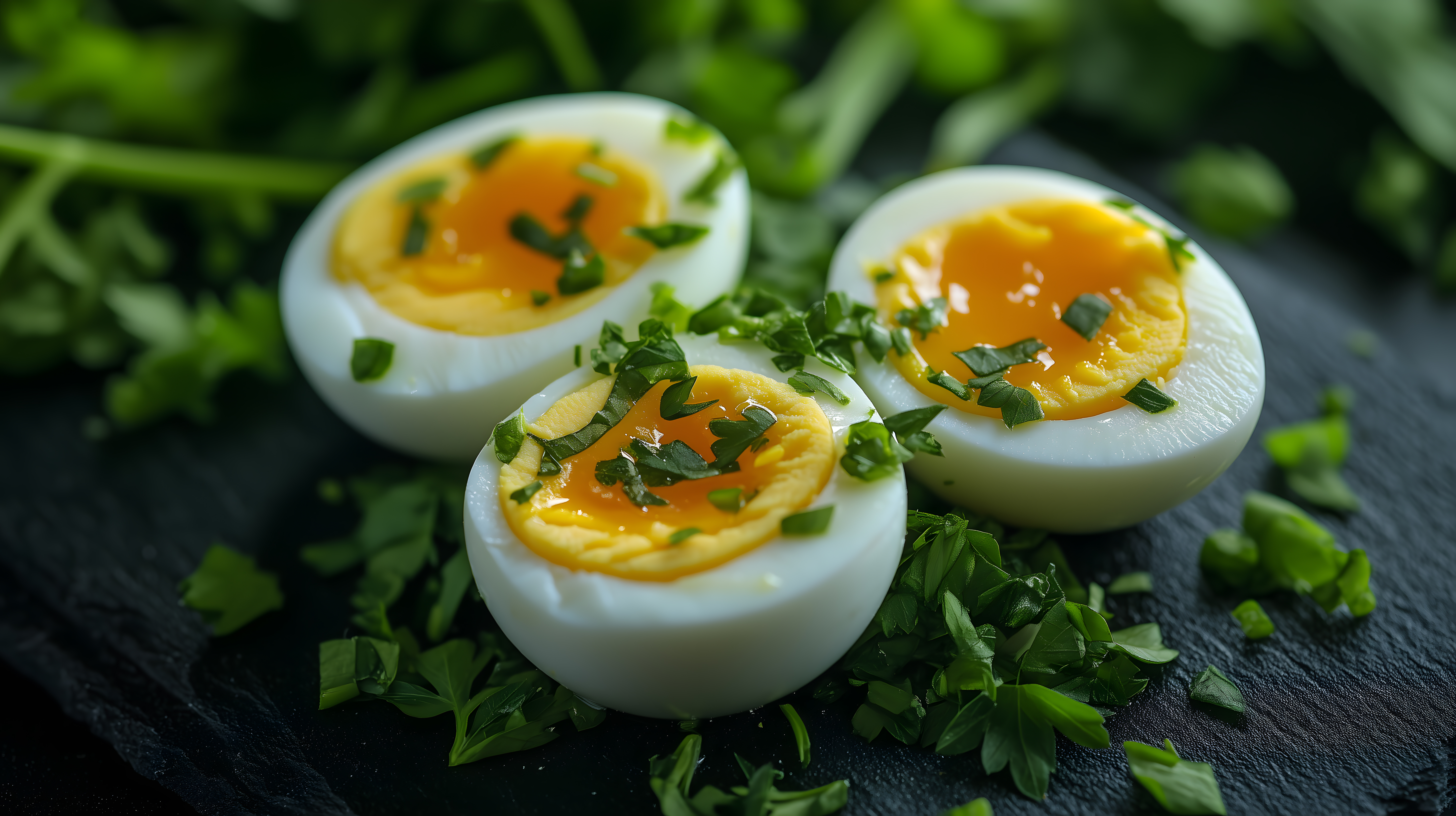 Dieses stimmungsvolle Foto zeigt drei halbierte, gekochte Eier auf einem dunklen Untergrund, dekoriert mit frischen Kräutern wie Petersilie und Dill. Die kräftigen Farben der Eidotter und das schöne Zusammenspiel mit den grünen Kräutern verleihen dem Bild eine appetitliche, natürliche Anmutung. Die rustikale Optik und der dunkel gehaltene Hintergrund schaffen eine stimmungsvolle Atmosphäre, die sich hervorragend für die Verwendung in Blogbeiträgen, Newslettern, Social-Media-Posts oder Werbekampagnen rund um gesunde Ernährung, Lebensmittel und Kulinarik eignet. Dieses hochwertige Stockfoto in hoher Auflösung steht unter einer Creative-Commons-Lizenz zur freien Nutzung zur Verfügung.