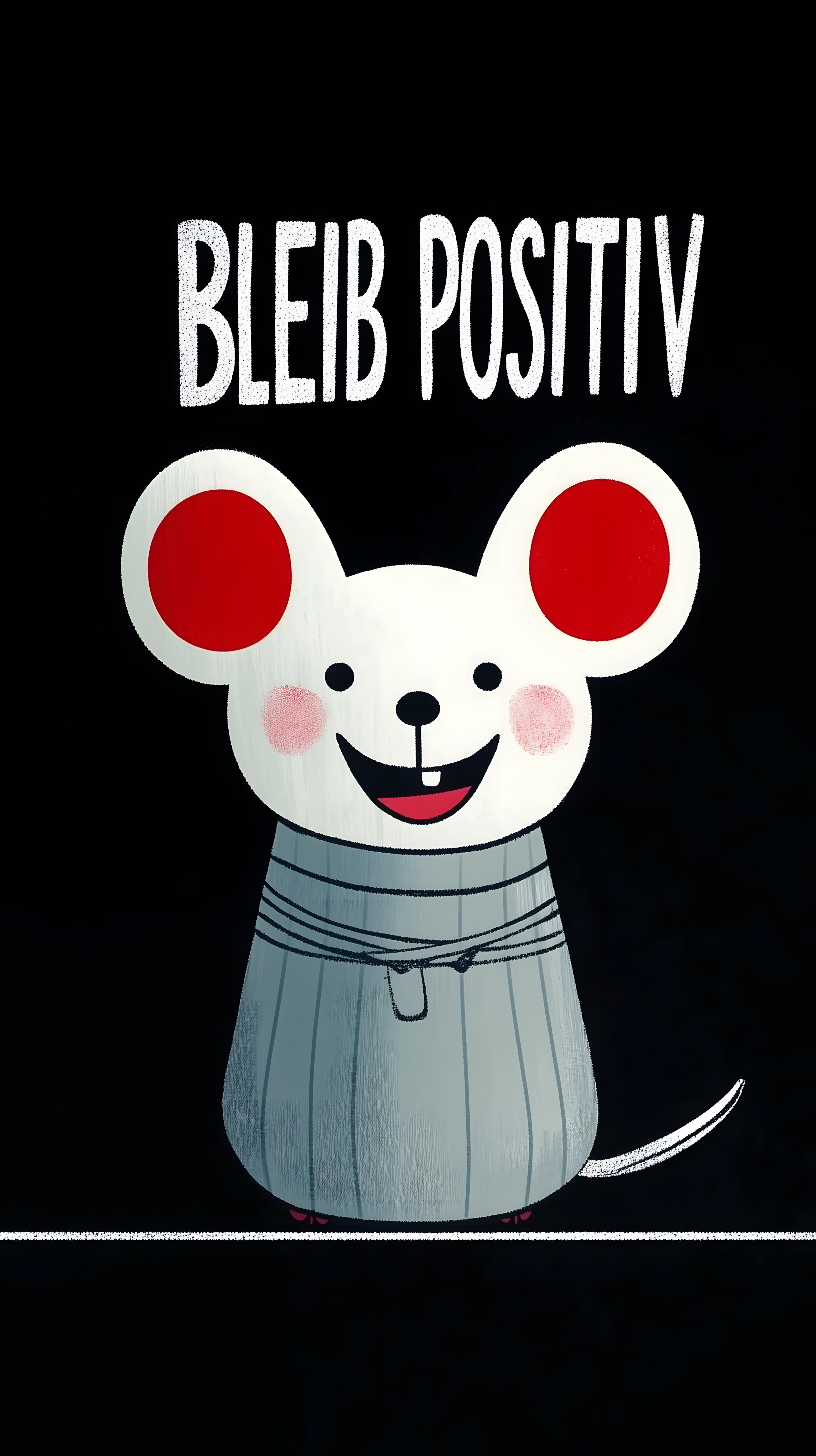 Das Bild zeigt eine fröhlich lächelnde Maus vor einem schwarzen Hintergrund mit dem Motivationsspruch 'Bleib positiv' in weißer Schrift. Die Maus hat große, runde Ohren und eine niedliche Gestik, die Stimmung und Ausstrahlung des Motivationsspruchs unterstreicht. Das Bild wäre ideal für den Einsatz in Blogbeiträgen, Newsletter-Designs, Social-Media-Posts oder Werbematerialien, die positive Energie und Motivation vermitteln möchten. Als hochwertiges Stockfoto in kostenloser Creative-Commons-Lizenz ist es eine tolle Ressource für Grafik-Designer, Marketing-Experten und Content-Ersteller.