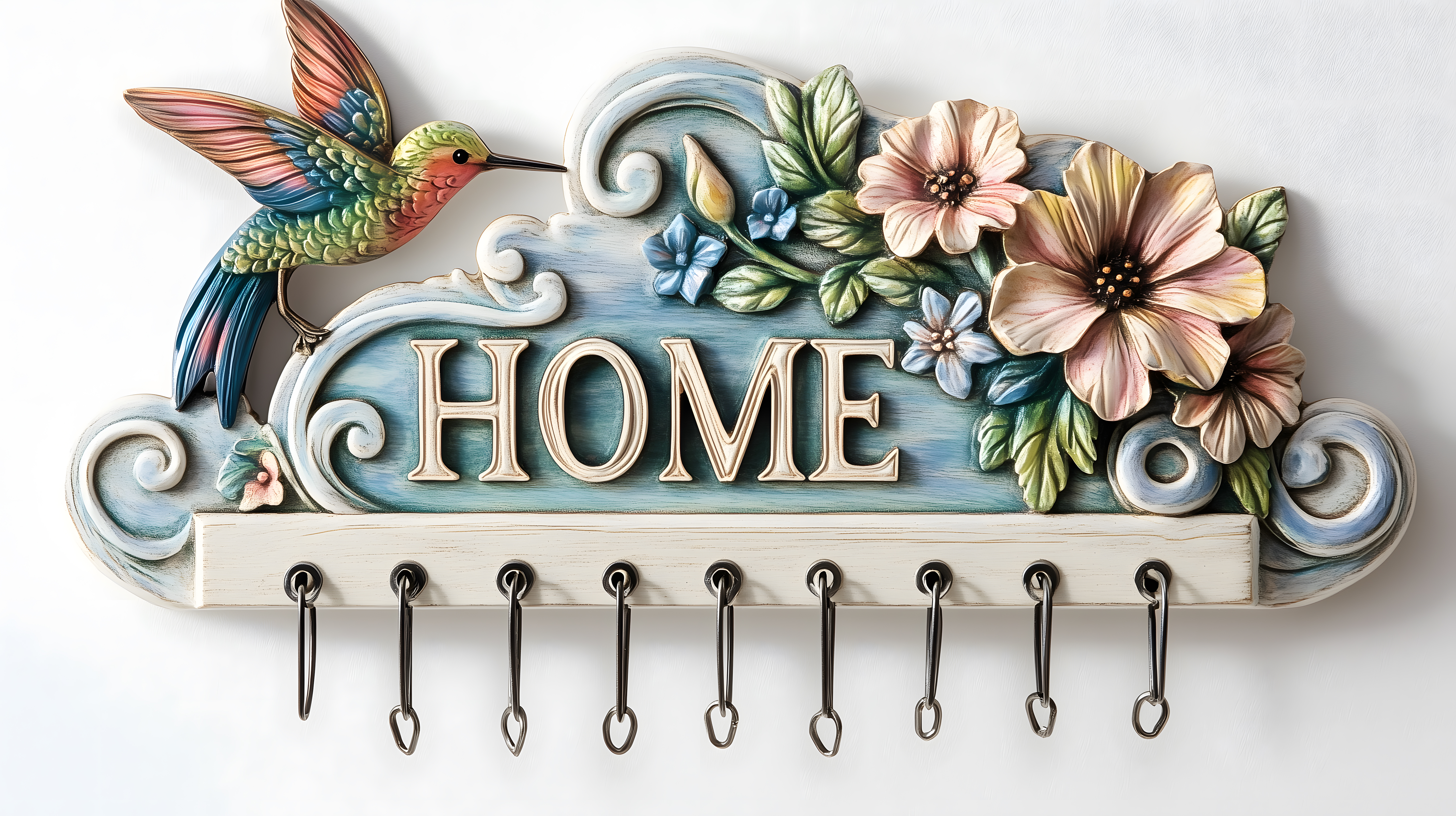 Dieses dekorative Schlüsselbrett in Vintage-Optik mit Blumen, Blättern und einem farbenfrohen Kolibri ist ein echter Hingucker für den Eingangsbereich, Wohnzimmer oder Flur. Die pastellfarbenen Elemente in Türkis, Rosa und Grün verleihen dem Schlüsselhalter einen rustikalen und zugleich eleganten Charme. Das hochwertige, kostenlose Stockfoto in hoher Auflösung ist unter der Creative-Commons-Lizenz verfügbar und kann für Blogs, Newsletter, Social Media oder Werbezwecke genutzt werden.