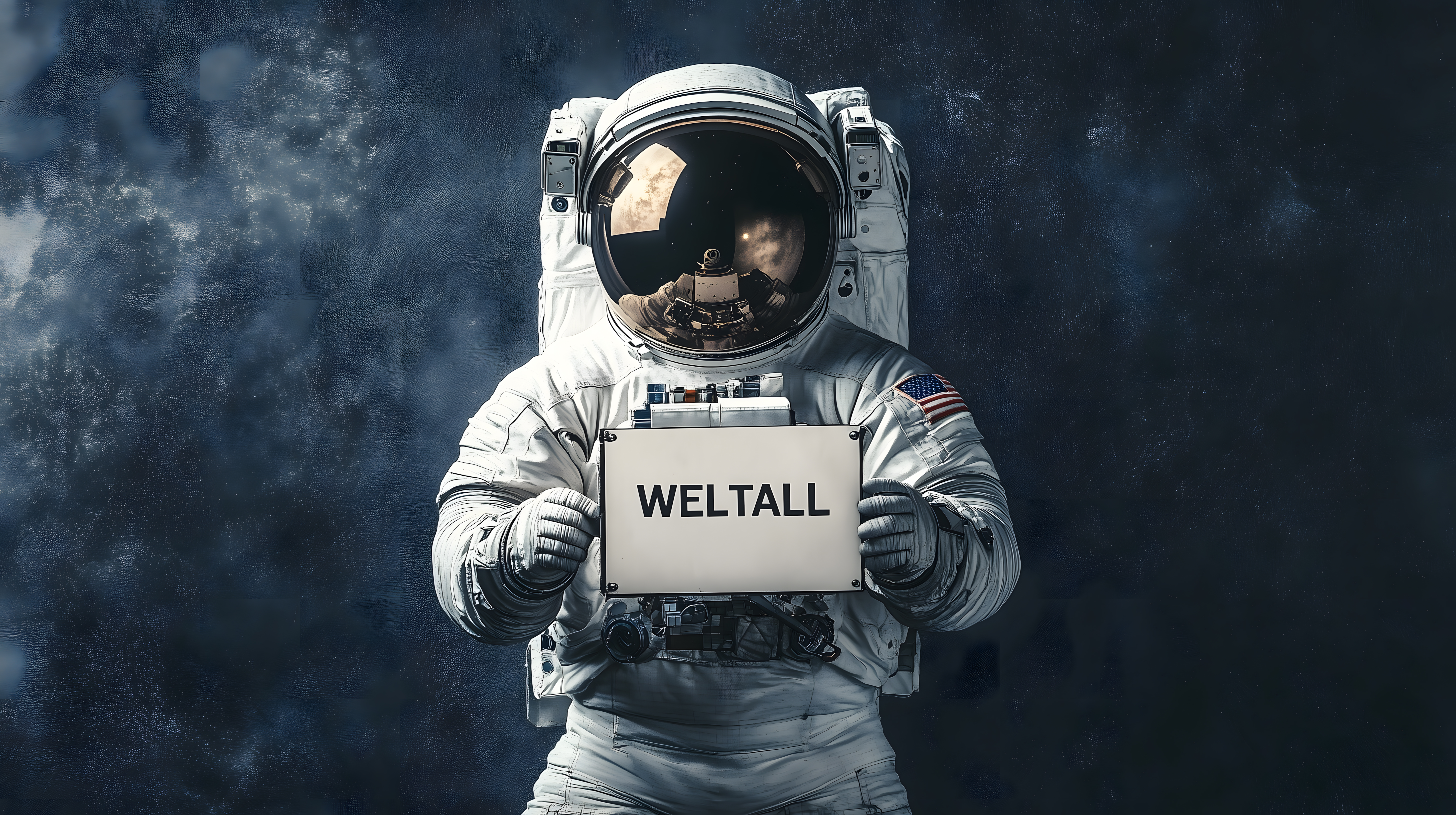 Das Bild zeigt einen Astronauten, der ein Schild mit der Aufschrift 'WELTALL' in den Händen hält. Der Astronaut ist in voller Raumausstattung zu sehen, mit seinem Raumanzug und dem charakteristischen Visier. Im Hintergrund ist eine Planetenreflexion zu erkennen, die den Weltraumcharakter des Motivs unterstreicht. Das Bild vermittelt einen futuristischen und technologischen Eindruck und kann für vielfältige Zwecke in Blogs, Newslettern, Social-Media-Beiträgen oder Werbematerialien eingesetzt werden. Das hochauflösende Stockfoto ist unter einer Creative-Commons-Lizenz frei verfügbar.