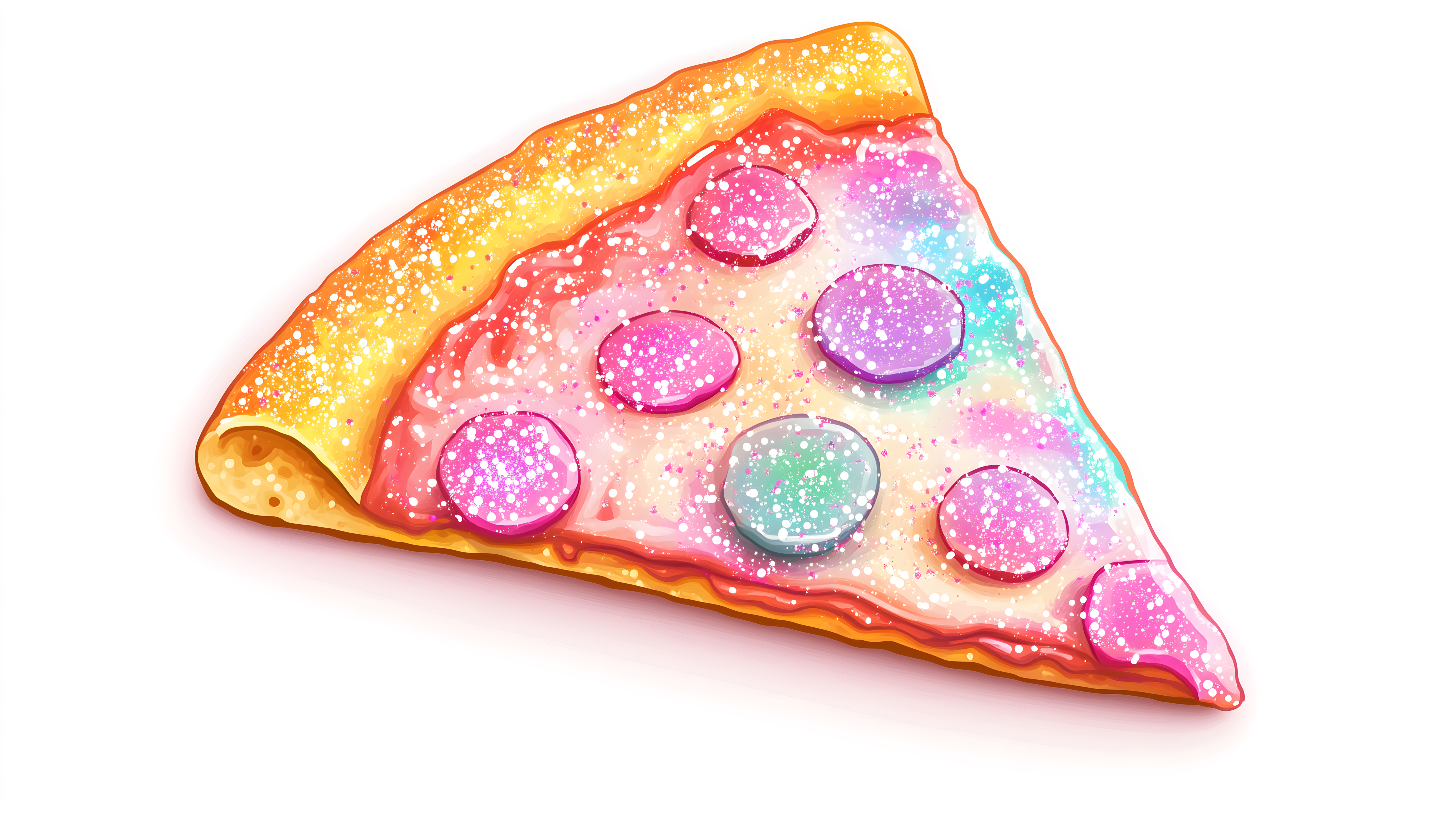 Diese bunte Cartoon-Pizzascheibe ist ein kreativ bearbeitetes Stockfoto in pastelligen Farbtönen. Die Scheibe ist mit glitzernden, farbigen Kreisen überzogen, die wie eine stilisierte Topping-Anordnung wirken. Das Bild hat einen modernen, handgemalten Look und könnte sich ideal für die Gestaltung von Blogbeiträgen, Newslettern, Social-Media-Inhalten oder Werbematerialien zu Themen wie Essen, Fastfood oder Lebensmittel eignen. Als hochwertiges, kostenloses Stockfoto unter Creative-Commons-Lizenz ist es sowohl für private als auch für kommerzielle Projekte verwendbar.