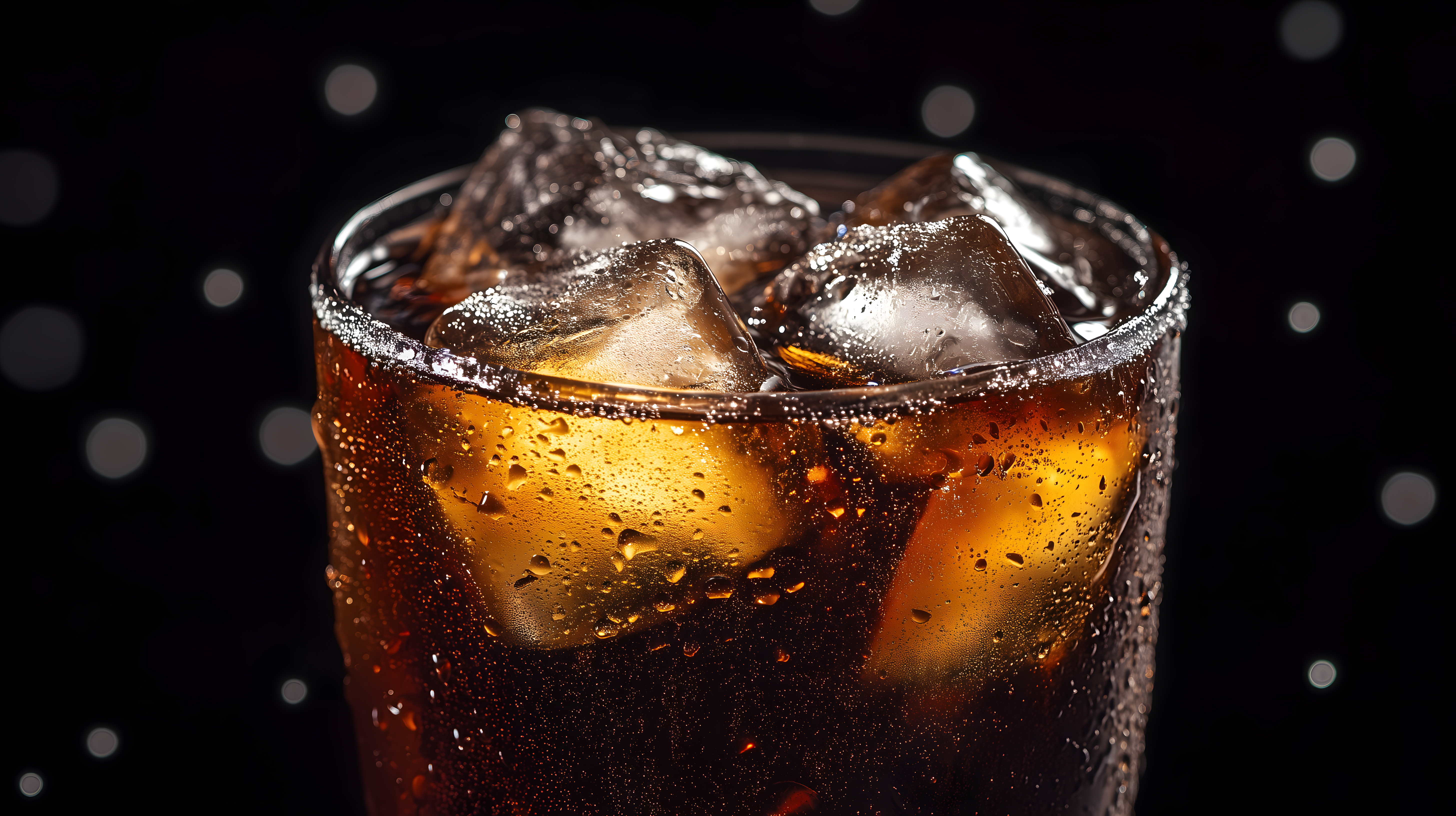 Das Bild zeigt ein Glas mit einem erfrischenden Colagetränk, das mit Eiswürfeln gefüllt ist. Die dunkle Flüssigkeit ist von Kondenswasser umgeben und verleiht der Szene einen kühlen, durstlöschenden Eindruck. Der schwarze Hintergrund lässt die Eiswürfel und Blasen im Getränk besonders gut zur Geltung kommen und verleiht dem Foto eine stimmungsvolle, geheimnisvolle Atmosphäre. Dieses Stockfoto eignet sich hervorragend für die Verwendung in Blogs, Newslettern, Social-Media-Posts oder Werbematerialien rund um erfrischende Getränke, Sommerzeit oder Partydekorationen. Die hohe Bildqualität und Creative-Commons-Lizenz ermöglichen eine vielseitige und kostenlose Nutzung.