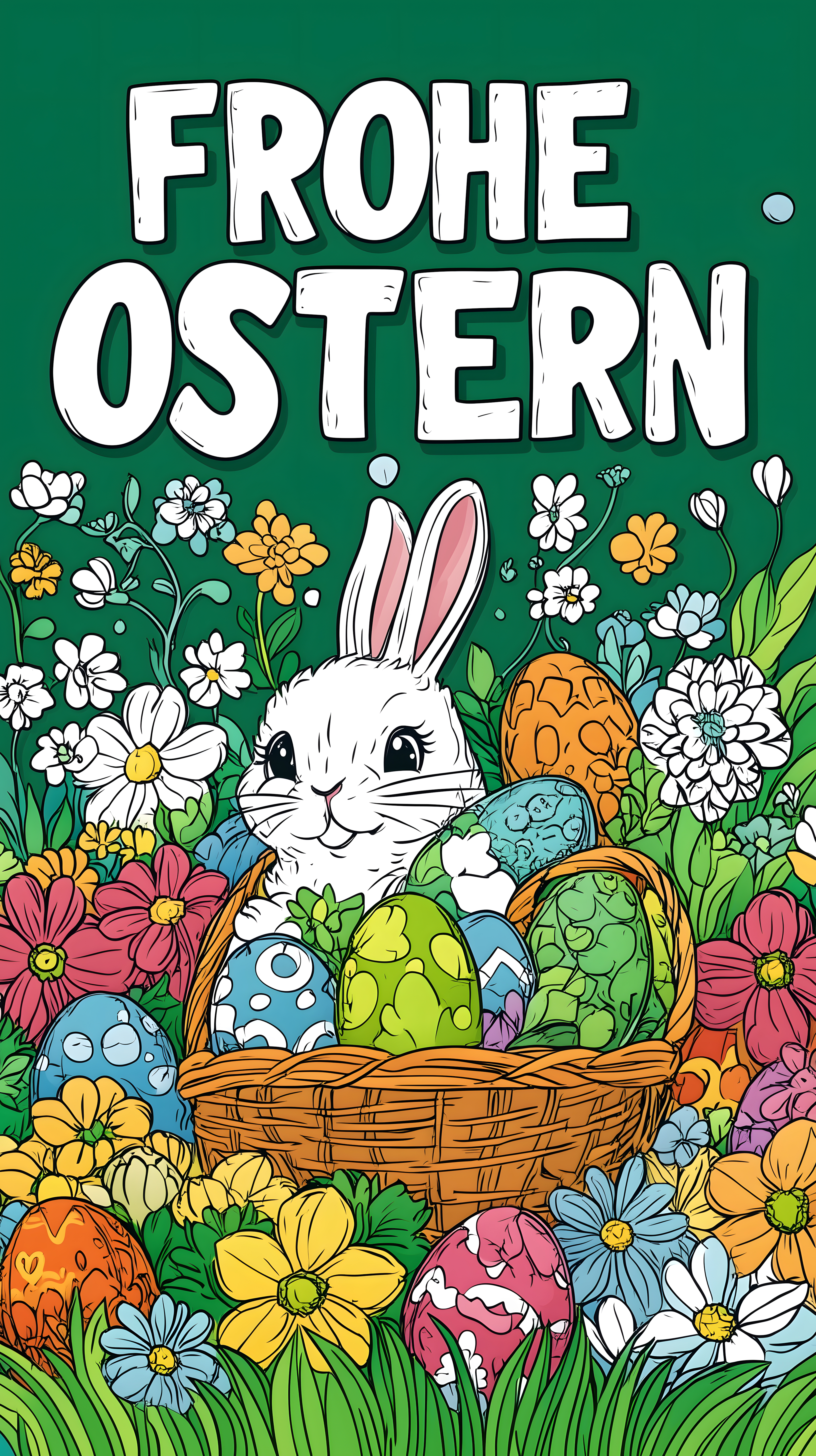 Dieses lebendige Oster-Motiv zeigt einen niedlichen Osterhasen, der in einer blühenden Frühlingslandschaft steht. Der Hase hält einen Korb voller bunter Ostereier, umgeben von vielen detaillierten Blumen wie Gänseblümchen, Narzissen und Tulpen. Das farbenfrohe Illustration im Cartoon-Stil ist perfekt als Hintergrund oder Dekoration für Ostergrußkarten, Flugblätter, Webseiten und soziale Medien geeignet. Als hochauflösendes, kostenloses Stockfoto unter Creative-Commons-Lizenz steht es für eine Vielzahl an Einsatzmöglichkeiten zur Verfügung.