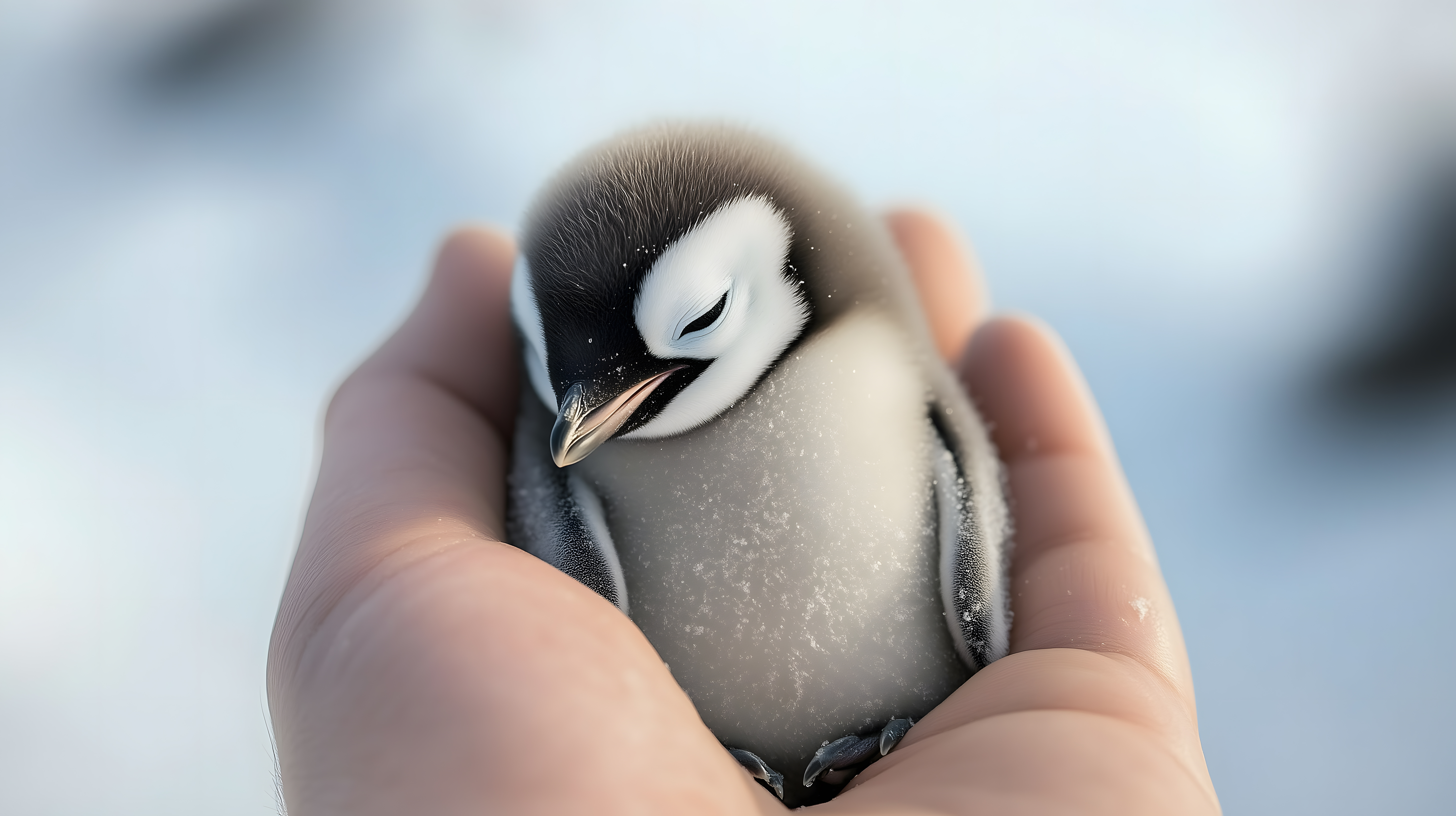 Das Foto zeigt ein entzückendes Pinguinküken, das liebevoll in einer menschlichen Hand ruht. Der Nestling ist von schwarzer und weißer Federbedeckung umhüllt und wirkt zart und schutzbedürftig. Die Szenerie vermittelt ein Gefühl von Fürsorge und Geborgenheit und unterstreicht den Wert von Naturschutz und der Erhaltung bedrohter Tierarten. Dieses hochauflösende Stockfoto eignet sich hervorragend für die Verwendung in Blogs, Newslettern, Social-Media-Beiträgen oder Werbekampagnen rund um Themen wie Ökologie, Tierschutz oder Winter. Es steht unter einer Creative-Commons-Lizenz kostenlos zur Verfügung.