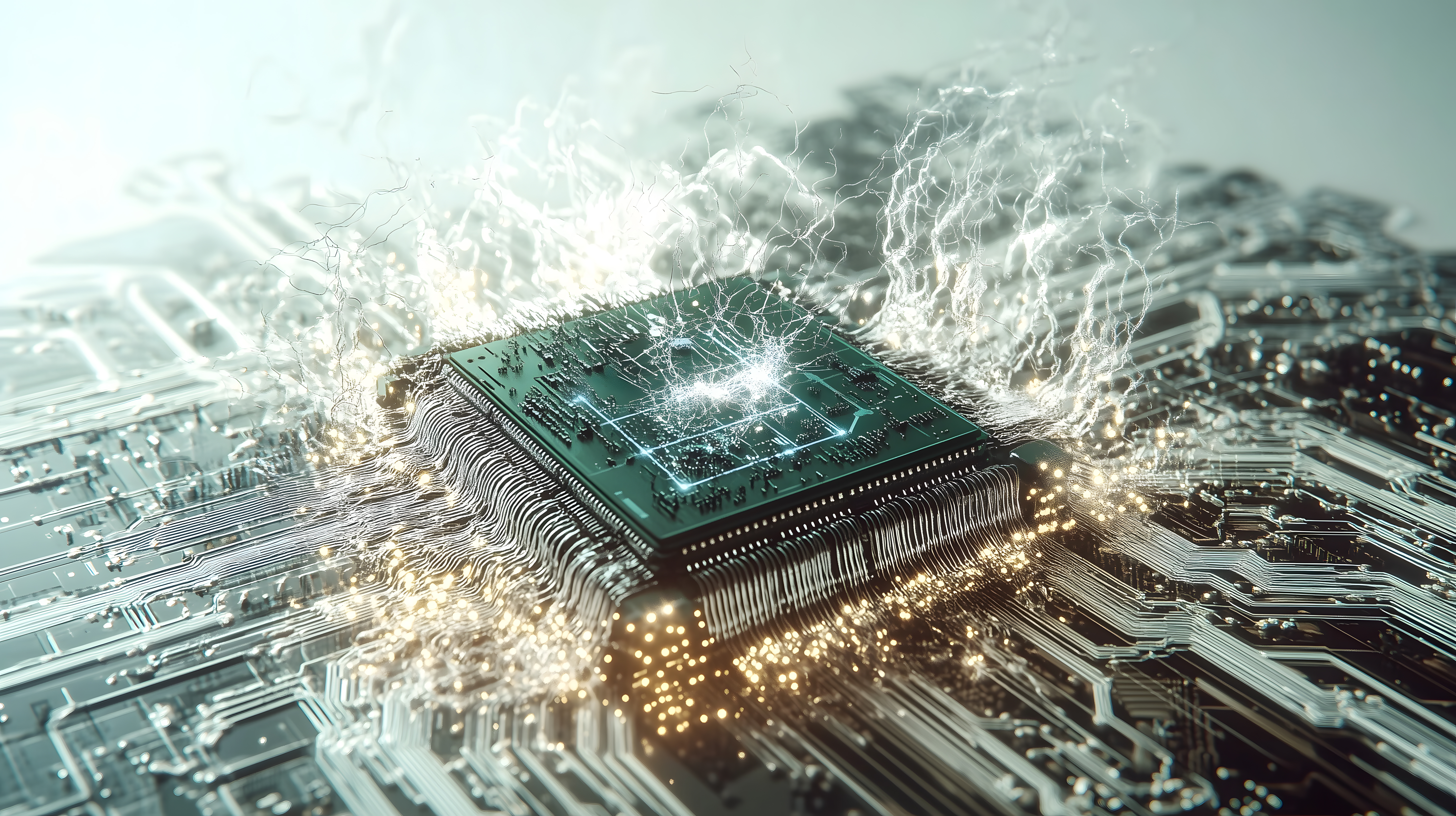 Dieses faszinierende Bild zeigt einen Computerchip, der von Energie und elektrischen Impulsen durchzogen ist. Die leuchtenden Leiterbahnen und die Energie-Entladungen verleihen dem Chip eine futuristische, technologisch anmutende Erscheinung. Das Bild hat eine abstrakte, digitale Ästhetik und vermittelt den Eindruck von Hightech, Fortschritt und Wissenschaft. Es eignet sich hervorragend als Stockfoto für Blogs, Newsletter, Werbematerialien und Social-Media-Beiträge rund um Themen wie Technologie, Digitalisierung, Computertechnik und Innovation. Das Foto ist in hoher Auflösung und unter einer Creative-Commons-Lizenz frei nutzbar.