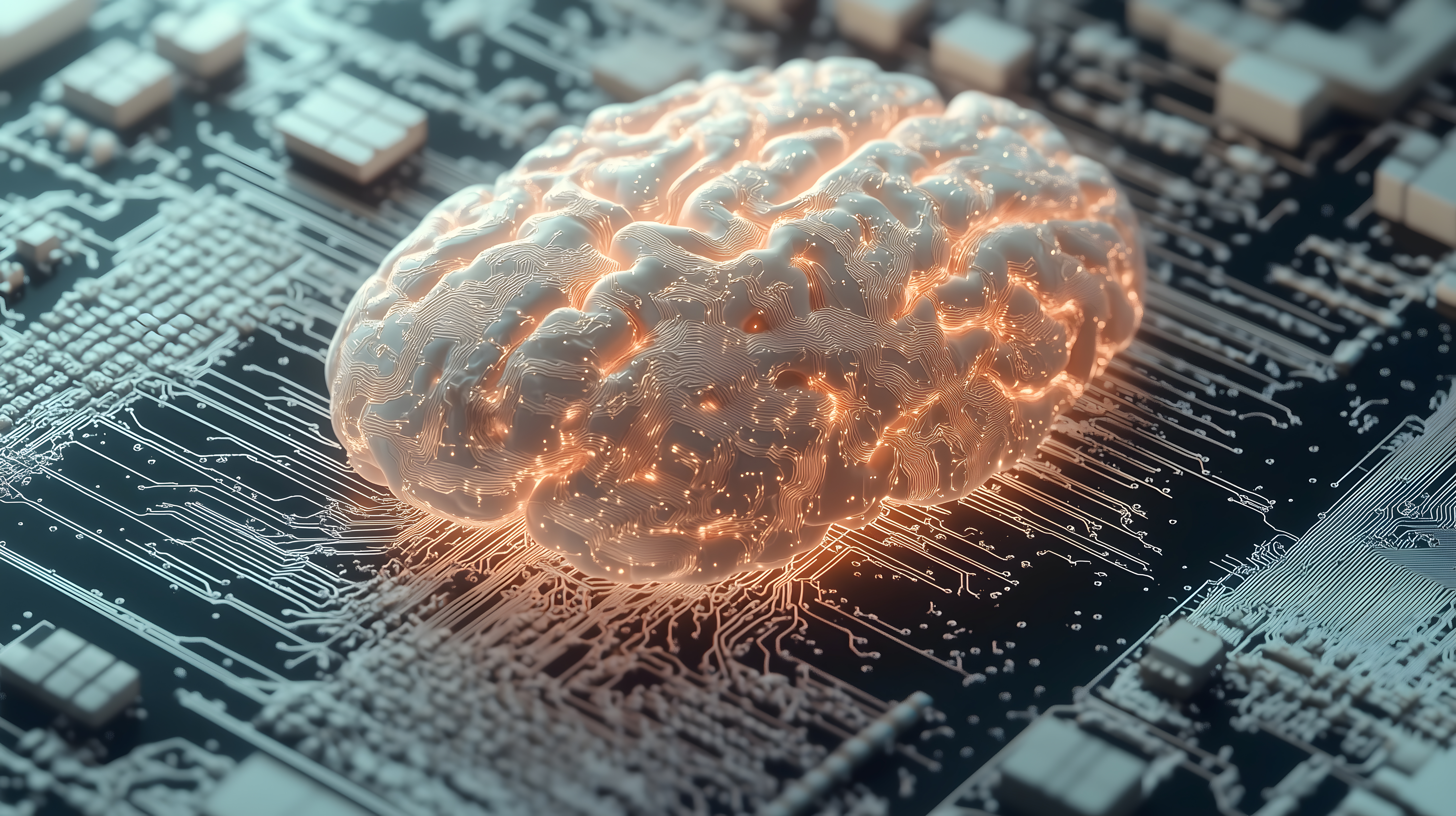 Dieses eindrucksvolle Bild zeigt ein künstliches Gehirn, das auf einem komplexen Computerkreislauf visualisiert ist. Die faszinierende Darstellung vermittelt den Eindruck von Intelligenz, Technologie und futuristischer Innovation. Die Kombination von organischer Form und digitaler Struktur suggeriert die Verschmelzung von Mensch und Maschine. Dieses Stockfoto eignet sich hervorragend für Blogs, Newsletter, Social-Media-Beiträge oder Werbematerialien zum Thema Künstliche Intelligenz, Digitalisierung und technologischen Fortschritt. Es ist in hoher Auflösung verfügbar und kann unter einer kostenlosen Creative-Commons-Lizenz genutzt werden.