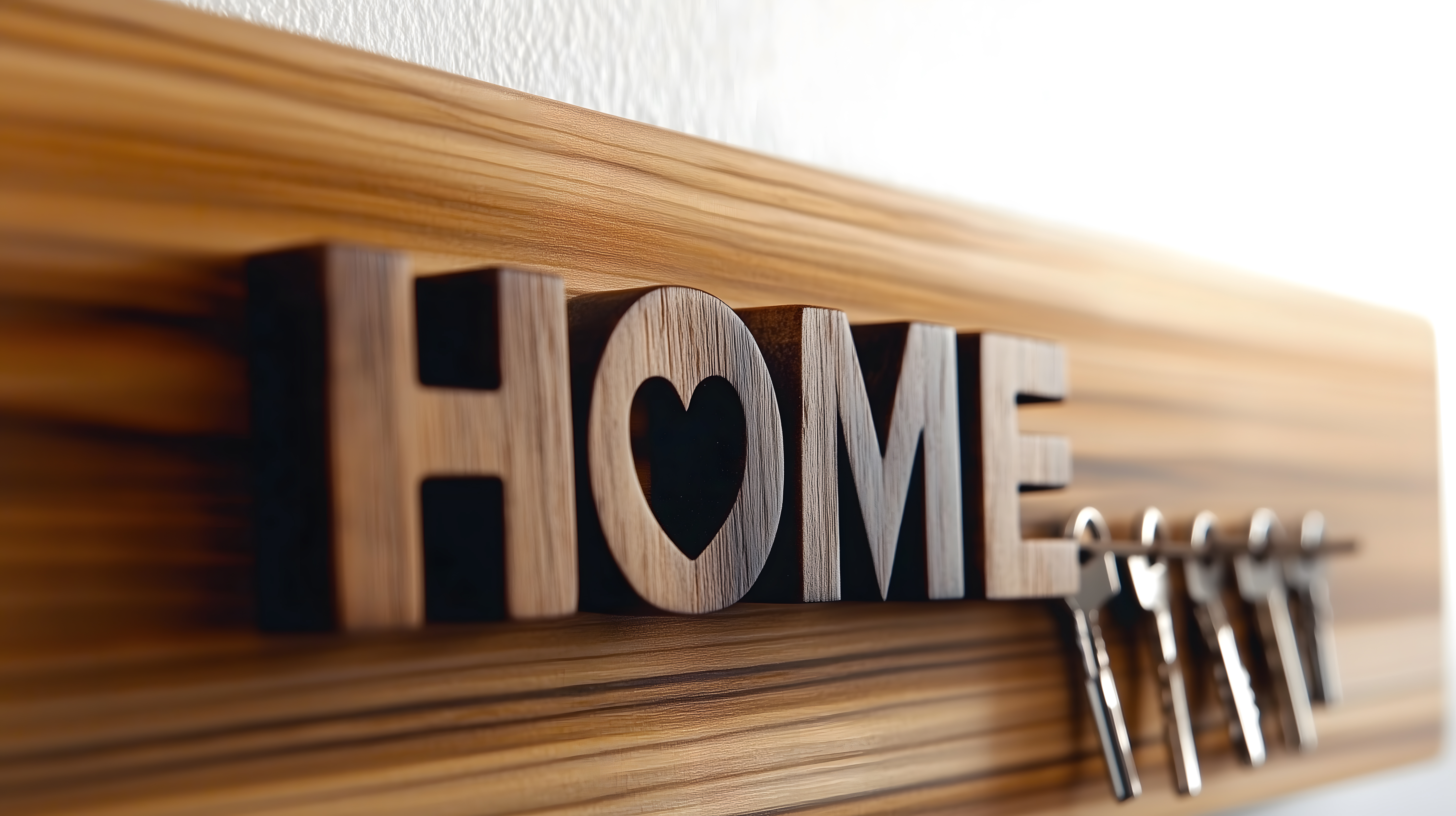 Dieses Foto zeigt ein hölzernes Schlüsselbrett, das an einer weißen Wand angebracht ist. Das Brett hat eine einfache, minimalistisch-rustikale Gestaltung mit einem schwarzen Herzform-Akzent in der Mitte. Daran sind mehrere Schlüsselhaken befestigt, die zum Aufhängen und Ordnen von Schlüsseln gedacht sind. Das Schlüsselbrett bietet eine praktische und dekorative Lösung, um Schlüssel aufzubewahren und den Eingangsbereich übersichtlich und aufgeräumt zu gestalten. Mit seiner warmen Holzoptik und dem Herzdetail strahlt es zugleich eine gemütliche, heimelige Atmosphäre aus. Dieses Foto eignet sich hervorragend für den Einsatz in Blogs, Newslettern, Social-Media-Kanälen oder Werbematerialien rund um Einrichtung, Dekoration und Organisation im Zuhause. Es ist ein kostenloses, hochauflösendes Stockfoto unter Creative-Commons-Lizenz.