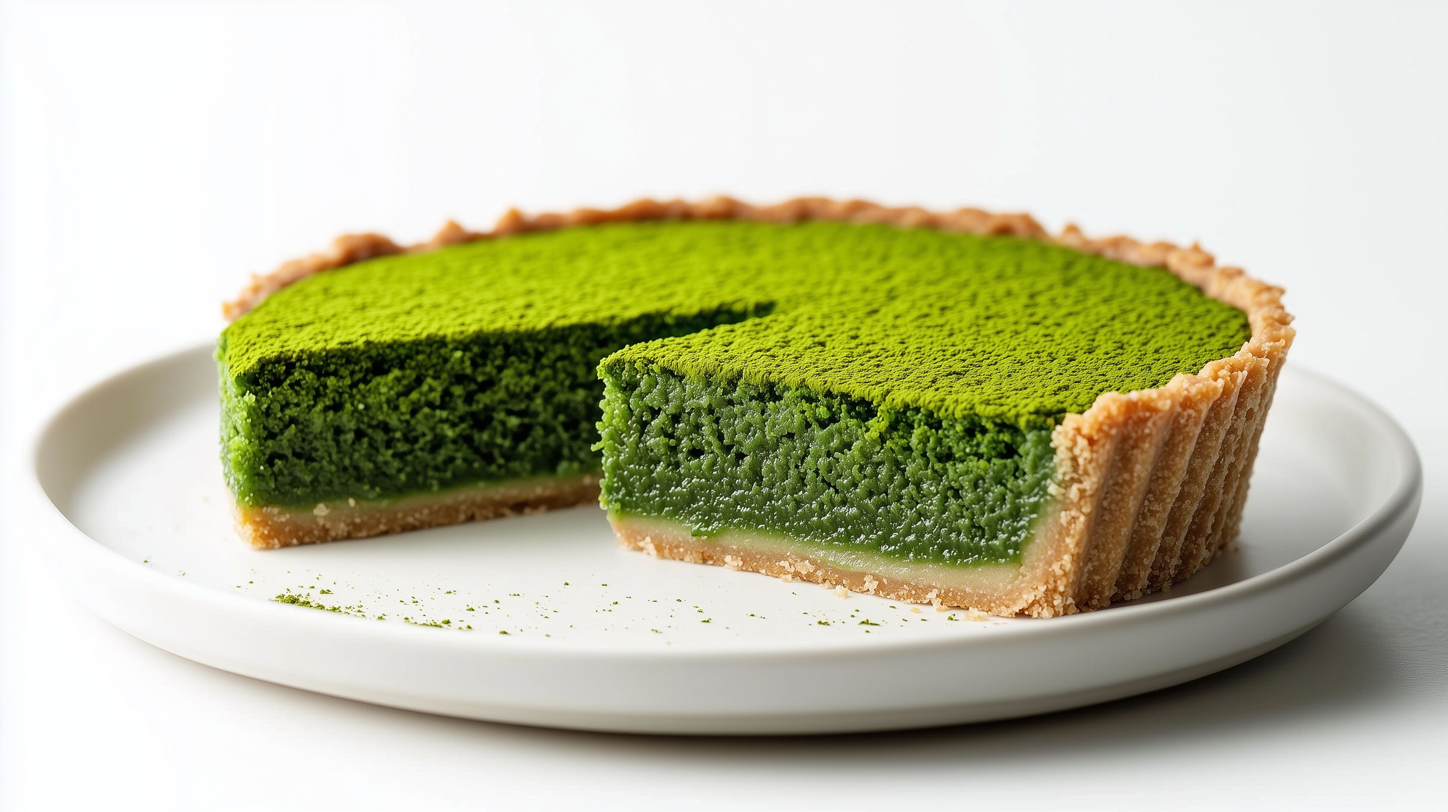 Das Bild zeigt ein appetitliches Matcha-Törtchen, präsentiert auf einem schlichten weißen Teller. Die intensive grüne Farbe des Törtchenfüllung, die aus feinstem Matcha-Tee hergestellt wurde, kontrastiert perfekt mit der goldbraunen, krümeligen Kruste. Das Dessert strahlt Frische, Eleganz und Qualität aus und weckt Genussfreude. Dieses hochwertige Stockfoto eignet sich hervorragend für die Verwendung in Blogs, Newslettern, auf Social-Media-Kanälen oder in Werbekampagnen rund um Premium-Lebensmittel, Feinkost und gehobene Gastronomie. Es ist in hoher Auflösung verfügbar und unter einer Creative-Commons-Lizenz frei nutzbar.