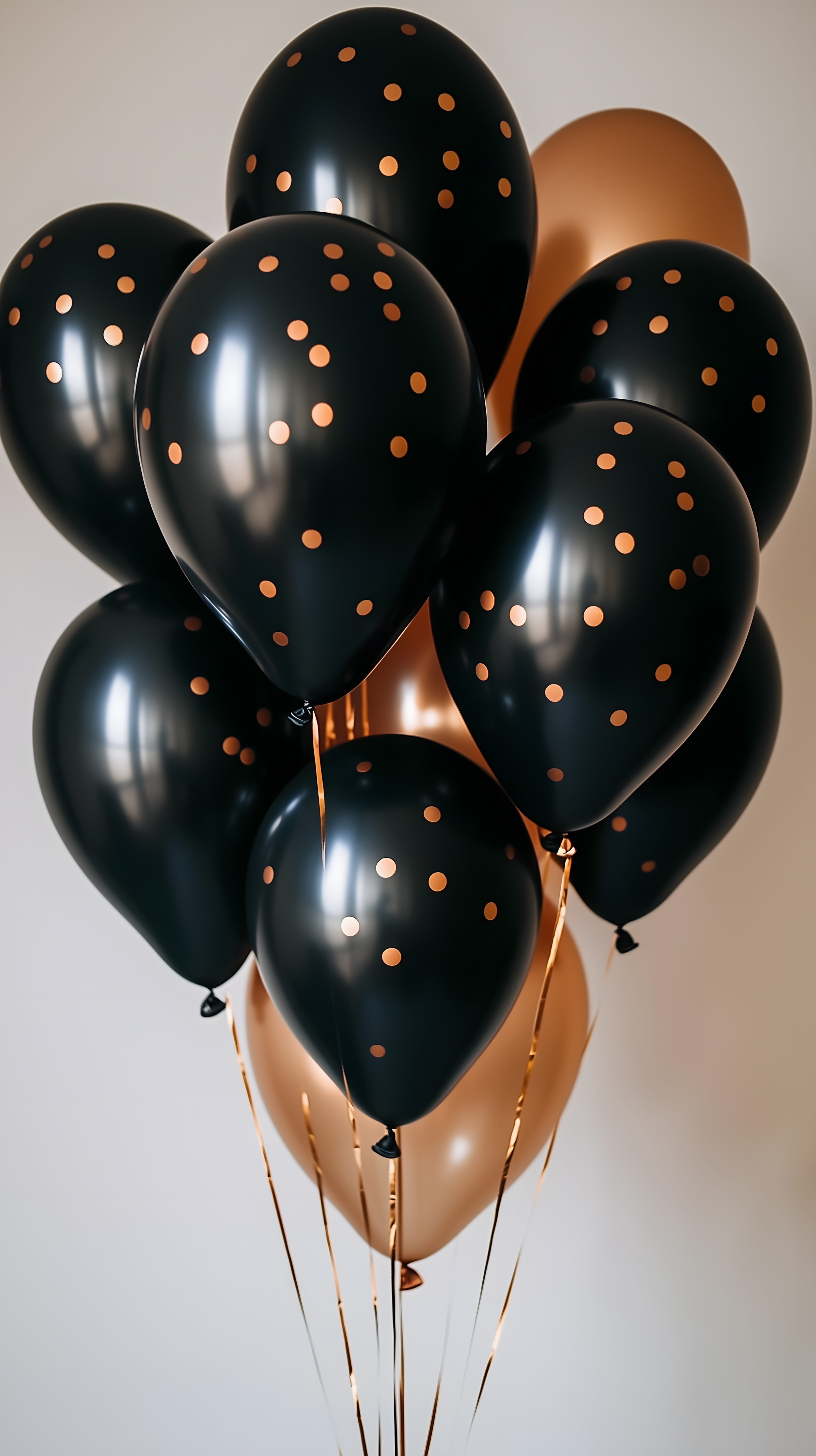 Das Bild zeigt einen Strauß von schwarzen Luftballons mit goldenen Punkten vor einer hellen Wand. Die Anordnung der Ballons in verschiedenen Größen und die Kontrastfarben Schwarz und Gold verleihen dem Bild eine elegante und festliche Atmosphäre. Diese Aufnahme eignet sich hervorragend als Hintergrundbild für Feiern, Partys oder Werbematerialien. Als kostenloses Stockfoto in hoher Auflösung und unter Creative-Commons-Lizenz kann es vielseitig in Blog-Beiträgen, Newslettern oder Social-Media-Posts eingesetzt werden.