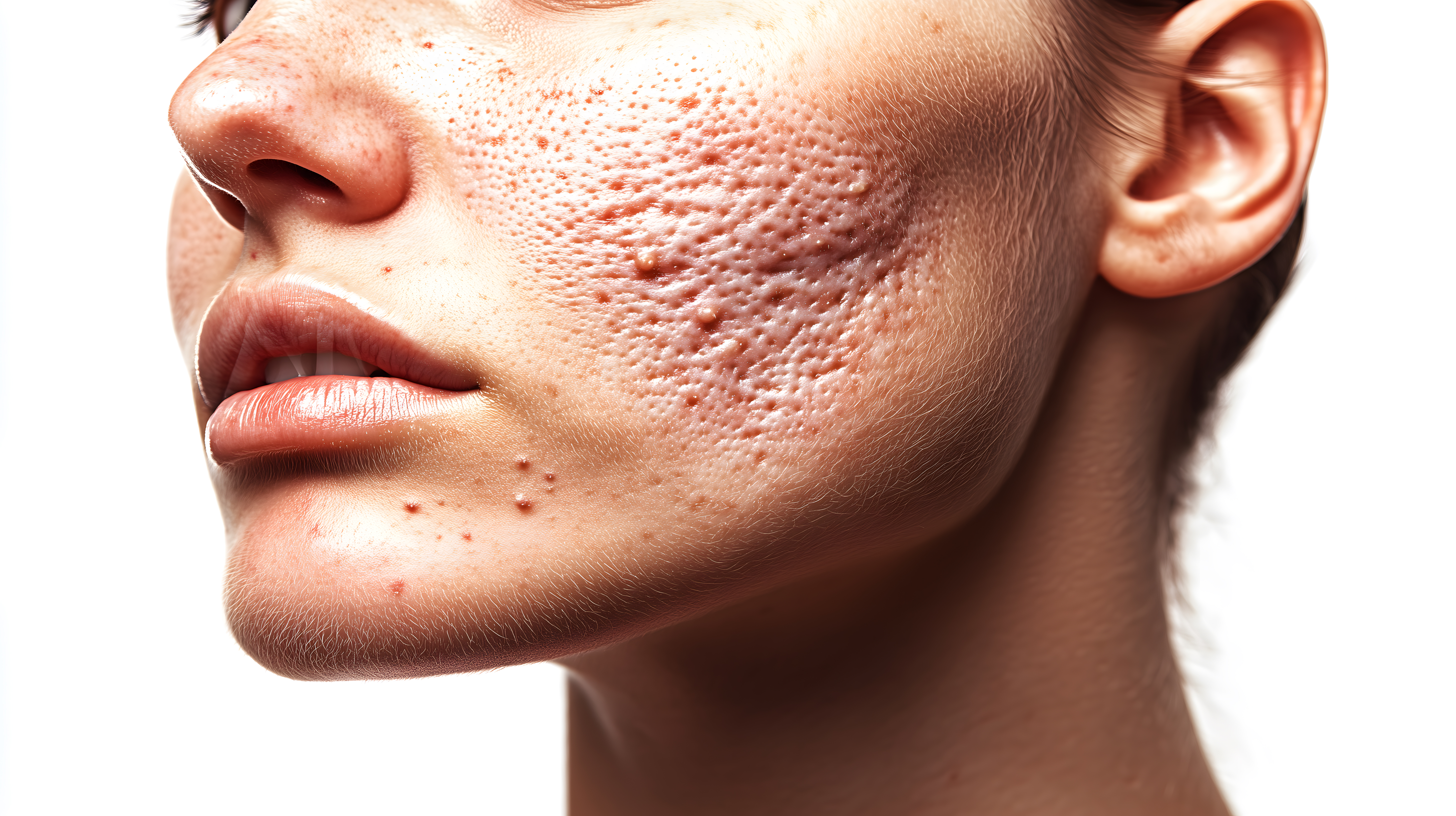 Diese detaillierte Aufnahme zeigt das Gesicht einer Person mit ausgeprägter Akne und zahlreichen Mitessern. Die Nahaufnahme erfasst die Poren und unebenen Strukturen der Haut sehr genau. Dieses Stockfoto eignet sich hervorragend für Beiträge zum Thema Dermatologie, Hautkrankheiten, Hautpflege und kosmetische Behandlungen. Es kann beispielsweise in Artikeln über Aknebehandlungen, Hautprobleme oder Schönheitsthemen verwendet werden. Das hochauflösende Foto steht unter einer Creative-Commons-Lizenz zur Verfügung und kann kostenlos für verschiedene Einsatzzwecke genutzt werden.