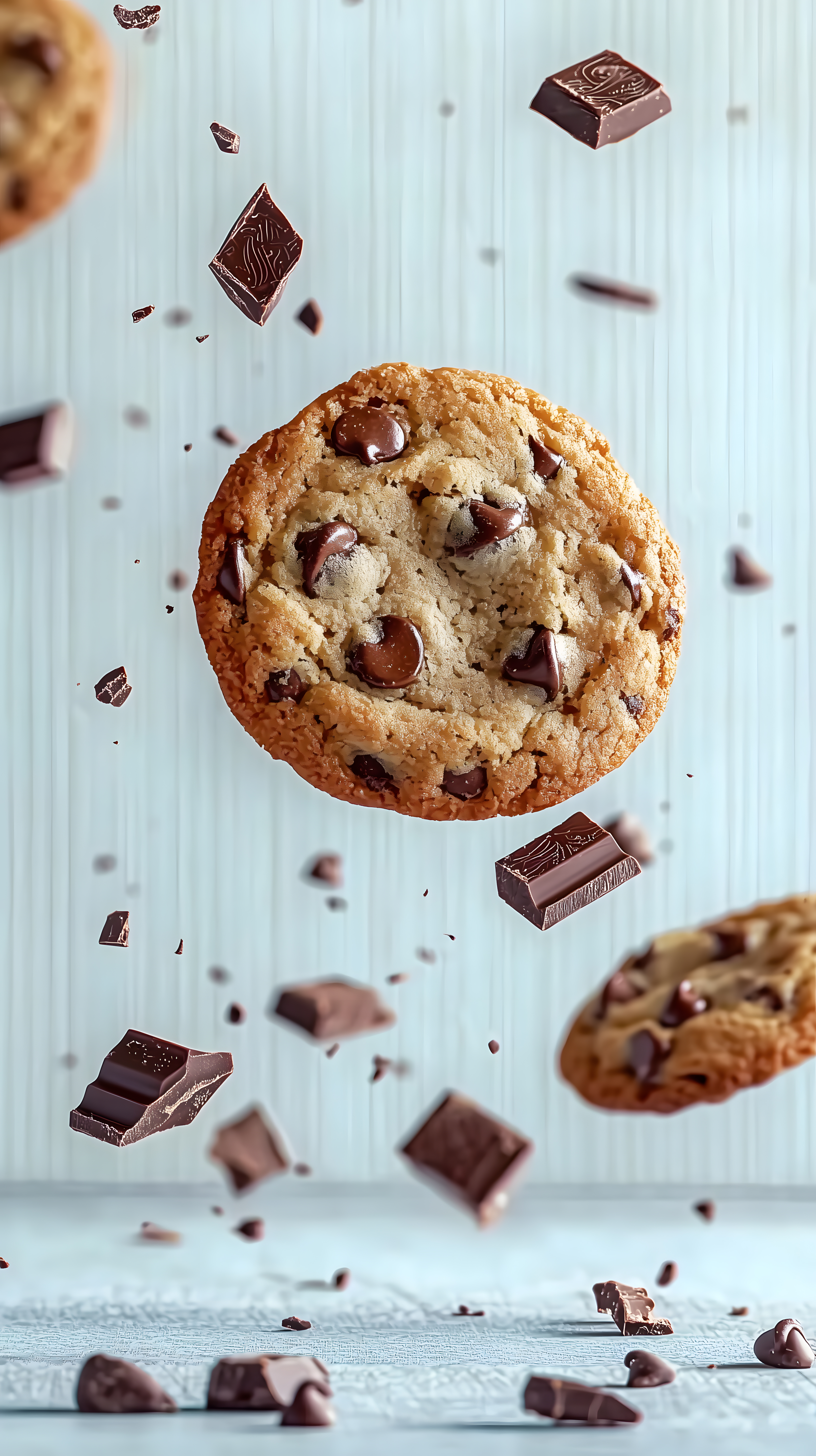 Dieses Stockfoto zeigt einen appetitlichen Schokoladenkeks, der schwebend in der Luft zwischen Holzplanken schwebt. Der Keks ist mit leckeren Schokoladenstücken gespickt und umgeben von weiteren Bruchstücken. Der rustikale Holzhintergrund in hellgrauem Ton bildet einen stimmungsvollen Kontrast zu dem dunklen, verlockenden Gebäck. Dieses Bild eignet sich hervorragend für Blogs, Social-Media-Posts, Newsletter oder Werbeanzeigen rund um das Thema Backen, Süßspeisen und Leckereien. Das hochauflösende Foto steht unter einer Creative-Commons-Lizenz zum kostenlosen Download zur Verfügung.