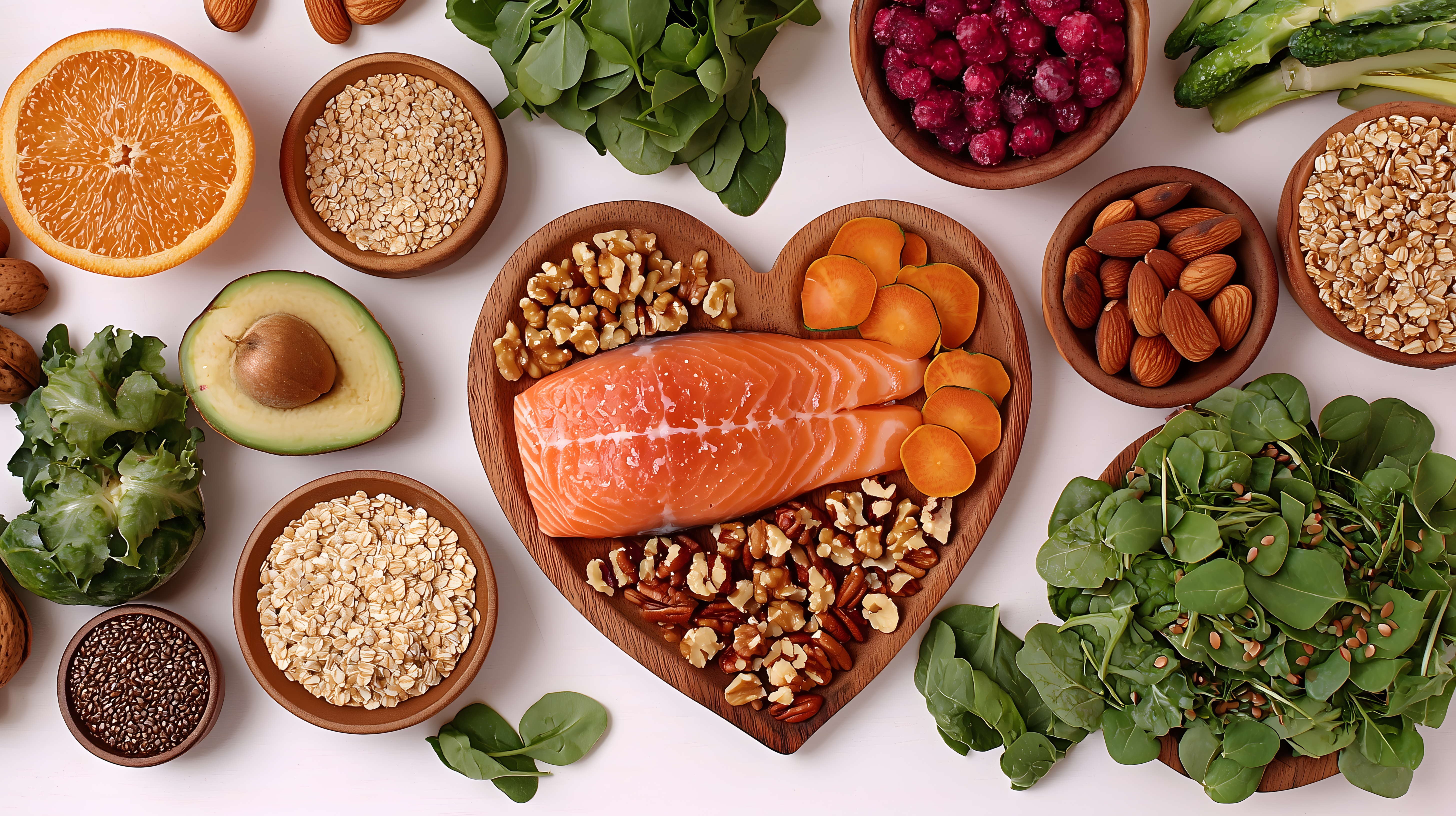 Dieses Foto präsentiert eine vielfältige Auswahl an hochwertigen, gesunden Lebensmitteln. Im Zentrum steht ein Lachs-Filet, umgeben von frischem Obst wie Orangen, Aprikosen und Himbeeren sowie verschiedenen Nüssen, Samen und Blattgrüns. Die Zusammenstellung in Herzform unterstreicht den Aspekt der Herz-Kreislauf-Gesundheit, die durch diese Nahrungsmittel gefördert wird. Reichhaltig an Omega-3-Fettsäuren, Antioxidantien, Ballaststoffen und wichtigen Vitaminen und Mineralstoffen ist dieses Motiv ideal für den Einsatz in Ernährungs- und Gesundheitsthemen, sei es in Blogs, Newslettern, Social-Media-Kanälen oder Werbekampagnen. Als hochwertiges, kostenloses Stockfoto in Creative-Commons-Lizenz bietet es zahlreiche Möglichkeiten für Kreative und Marketer.