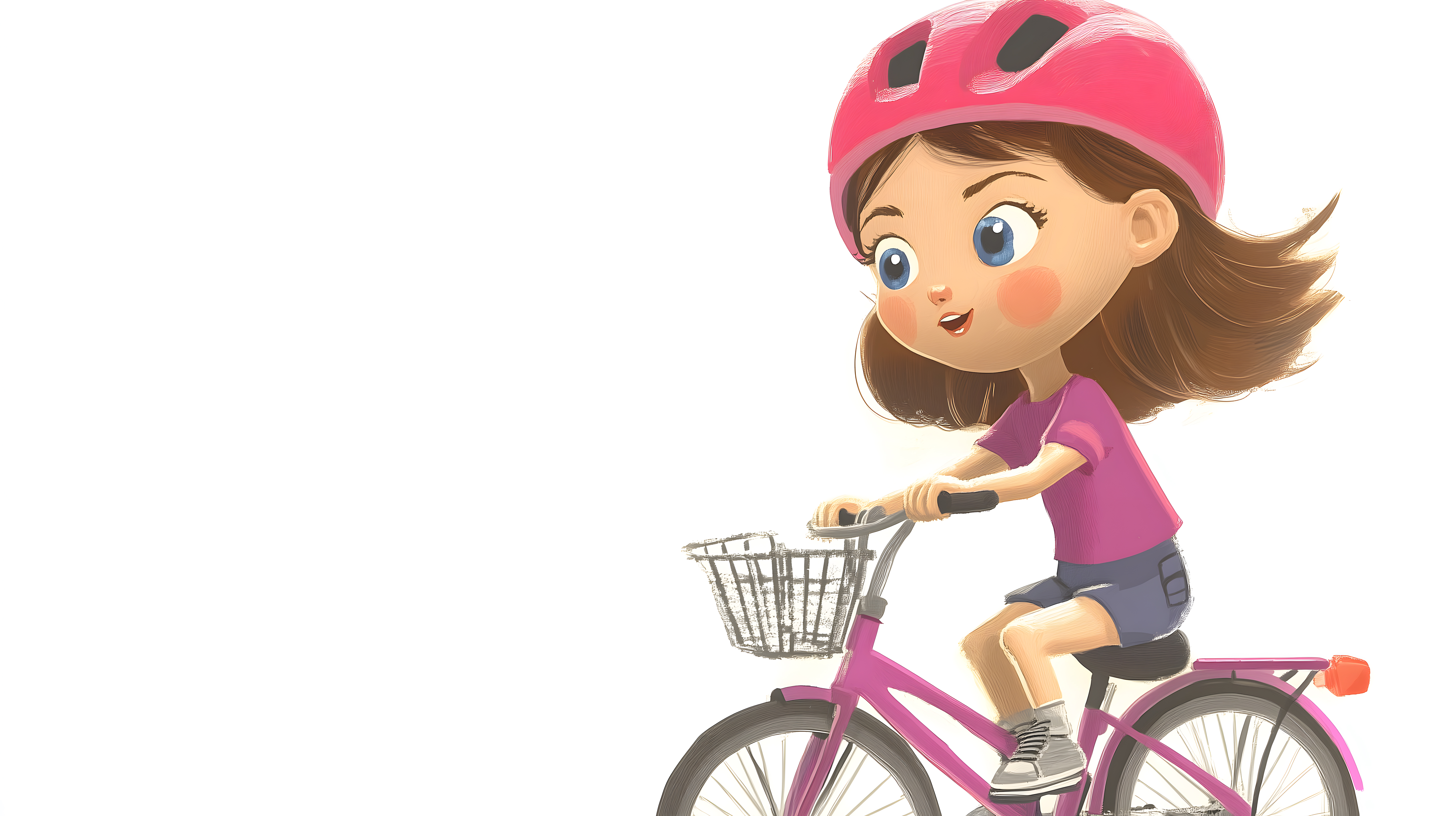Das fröhliche Mädchen in rosafarbenem Outfit und Helm fährt auf einem ebenso rosa Fahrrad mit einem Korb auf dem Gepäckträger. Sie lächelt glücklich und genießt offensichtlich die Fahrt an der frischen Luft. Das Bild strahlt eine positive und lebendige Stimmung aus und eignet sich perfekt als Illustrationsmotiv für Beiträge zum Thema Radfahren, Bewegung, Kindheit oder einen gesunden Lifestyle. Als kostenloses Stockfoto in hoher Auflösung und unter Creative-Commons-Lizenz kann es vielfältig in Blogs, Social-Media-Kanälen, Werbemitteln und anderen Medien eingesetzt werden.