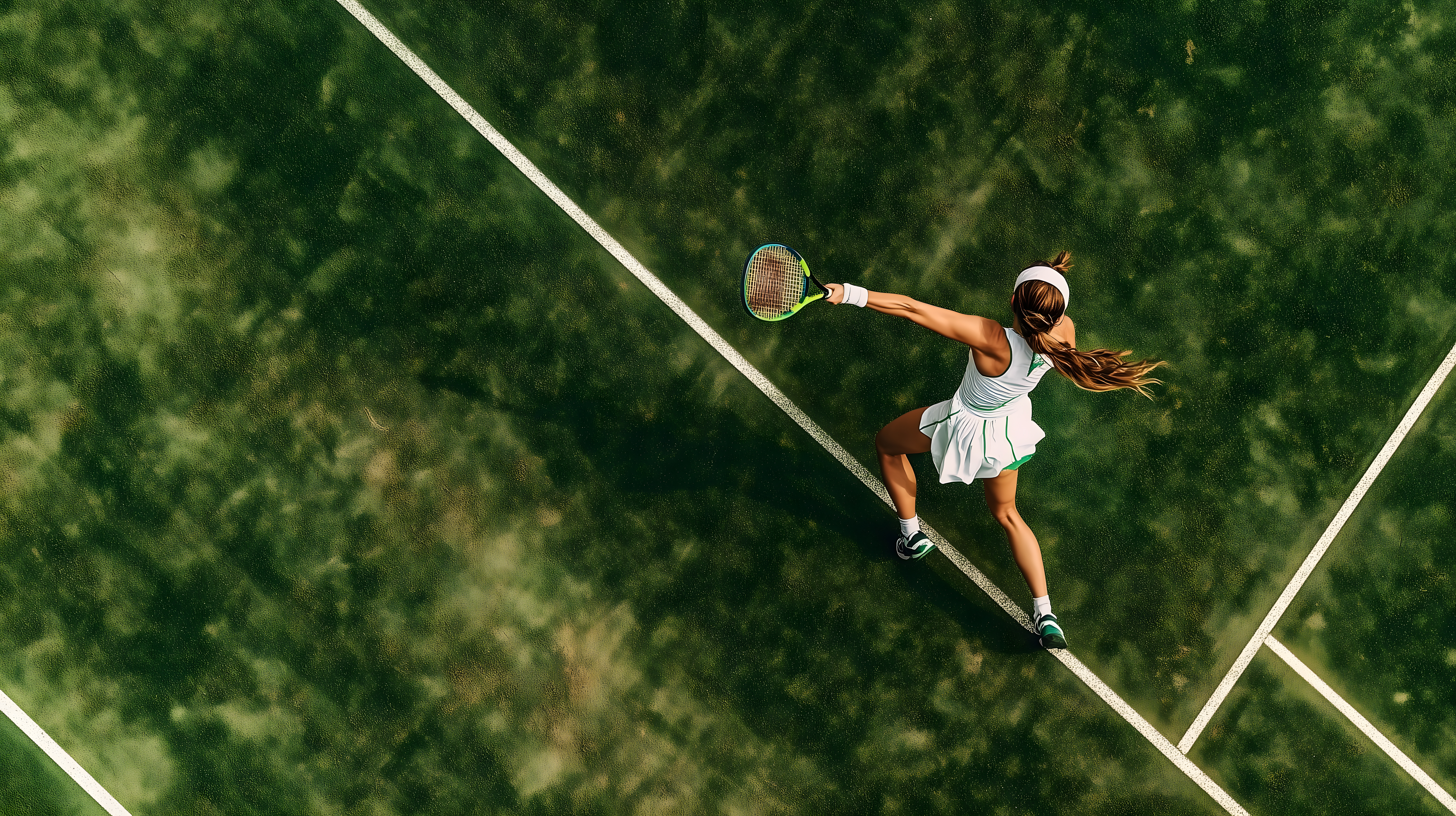 Das Bild zeigt eine aktive Tennisspielerin in weißer Sportbekleidung, die gerade einen Aufschlag ausführt. Sie befindet sich auf einem grünen Tennisplatz, der von Bäumen umgeben ist. Die Bewegungsunschärfe und das einfallende Sonnenlicht verleihen der Szene eine dynamische und lebendige Atmosphäre. Dieses kostenlose Stockfoto in hoher Auflösung eignet sich hervorragend für die Verwendung in Blogs, Newslettern, Social-Media-Beiträgen oder Werbematerialien rund um das Thema Sport, Fitness und Freizeit. Die Lizenz unter Creative Commons erlaubt eine vielfältige Nutzung.