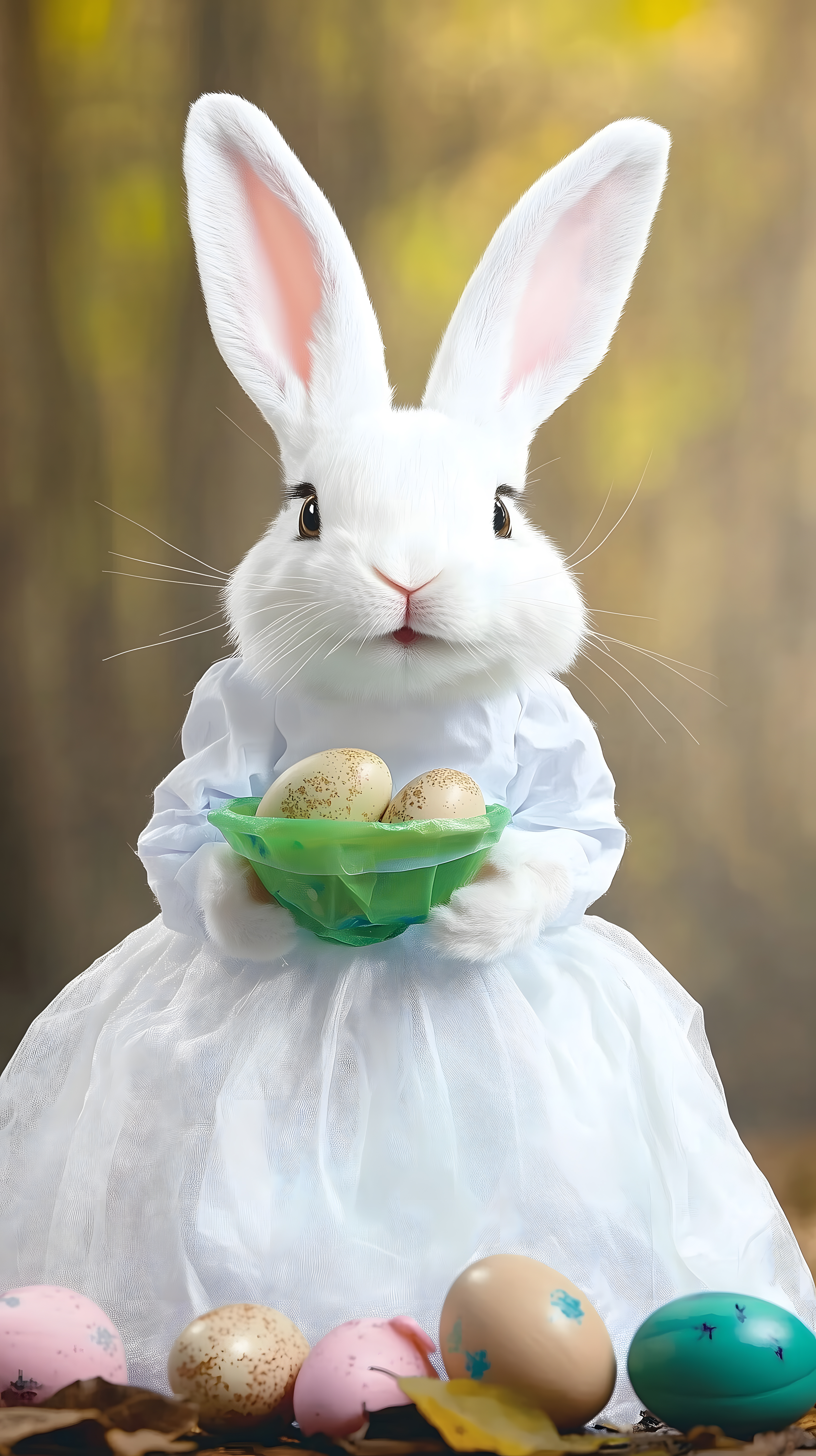 Dieses Foto zeigt einen weißen Osterhasen, der in einem weißen Kleid mit einem Osterkorb voller bunter Eier steht. Der Hase befindet sich inmitten einer natürlichen Umgebung mit unscharfem, verschwommenem Hintergrund, was den Blick auf das Motiv lenkt. Die Komposition und Farbpalette machen das Bild zu einem stimmungsvollen und kreativen Ostermotiv, das sich hervorragend für die Verwendung in Blogbeiträgen, Newslettern, auf Social-Media-Kanälen oder in Werbematerialien rund um Ostern eignet. Dieses hochauflösende Stockfoto steht unter einer Creative-Commons-Lizenz für kostenlose Nutzung zur Verfügung.