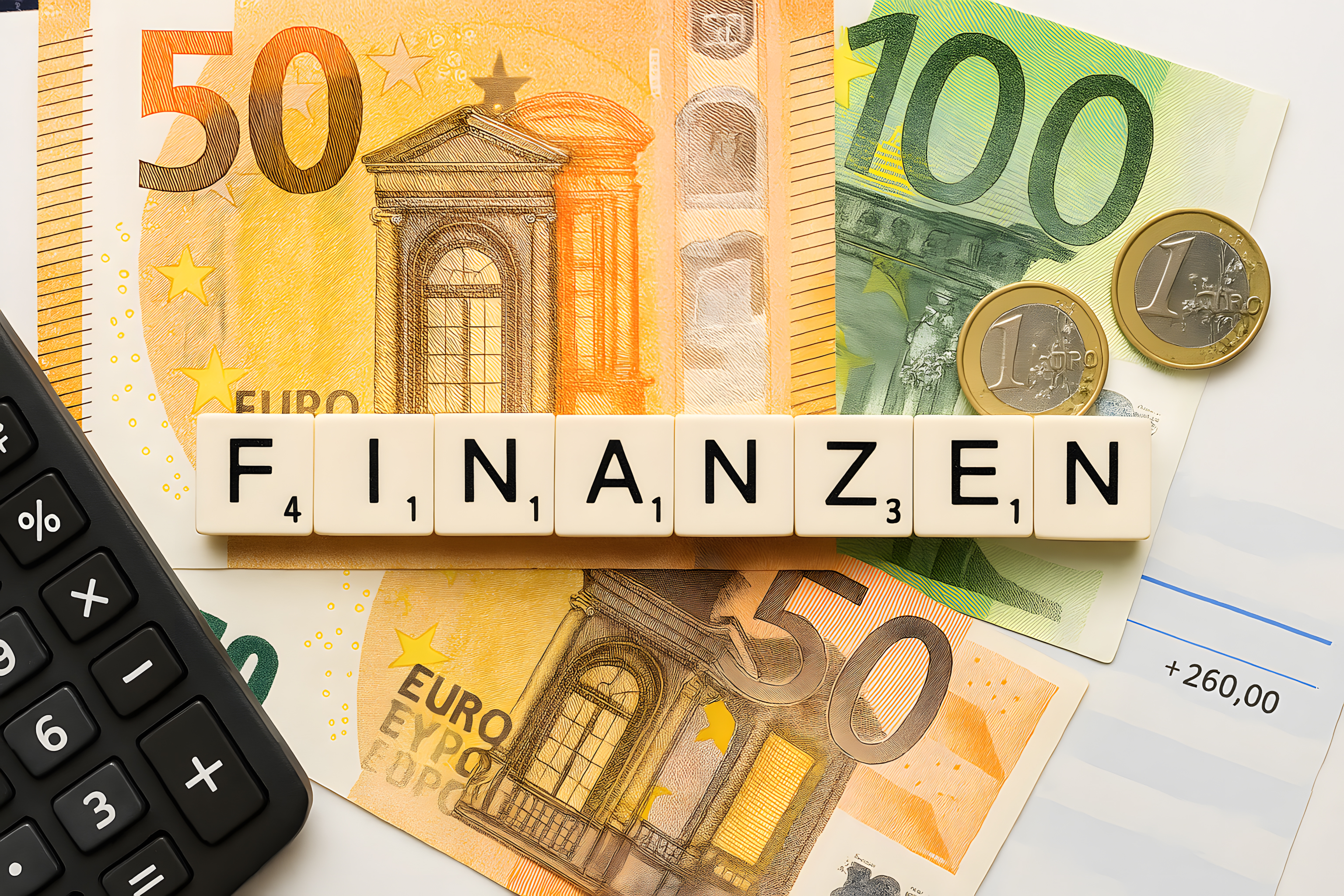 Dieses Stockfoto zeigt ein Finanzkonzept mit verschiedenen Elementen wie Eurobanknoten, Scrabble-Buchstabenwürfeln mit dem Wort 'Finanzen', einem Taschenrechner und anderen Büroartikeln. Das Bild wurde in Draufsicht aufgenommen und hat einen natürlichen, minimalistischen Look. Es eignet sich hervorragend für Blogs, Newsletter, Social-Media-Beiträge oder Werbematerial rund um Themen wie Buchhaltung, Finanzen, Investitionen oder Unternehmensentwicklung. Als kostenloses Stockfoto in hoher Auflösung und unter Creative-Commons-Lizenz ist es leicht zu verwenden und frei von Lizenzbeschränkungen.
