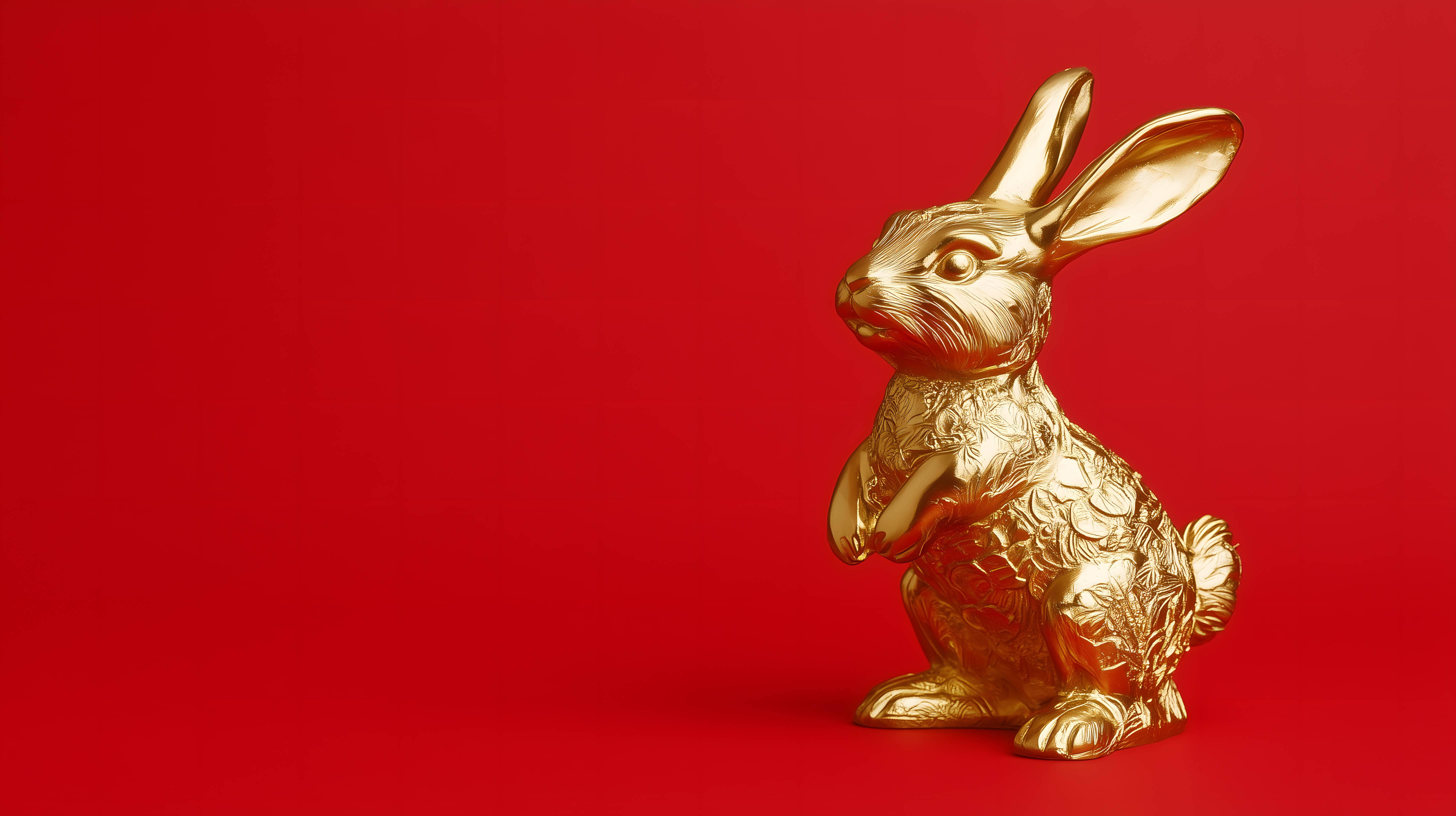Dieses Bild zeigt eine elegante, goldene Hasenfigur, die vor einem leuchtend roten Hintergrund posiert. Die detailreiche, glänzende Oberfläche des Osterhasen erzeugt ein luxuriöses, hochwertiges Erscheinungsbild. Diese Aufnahme würde sich hervorragend für saisonale Ostern-Themen wie Werbung, Blogbeiträge oder Social-Media-Postings eignen. Als kostenloses Stockfoto in hoher Auflösung unter Creative-Commons-Lizenz ist dieses Motiv vielseitig einsetzbar.