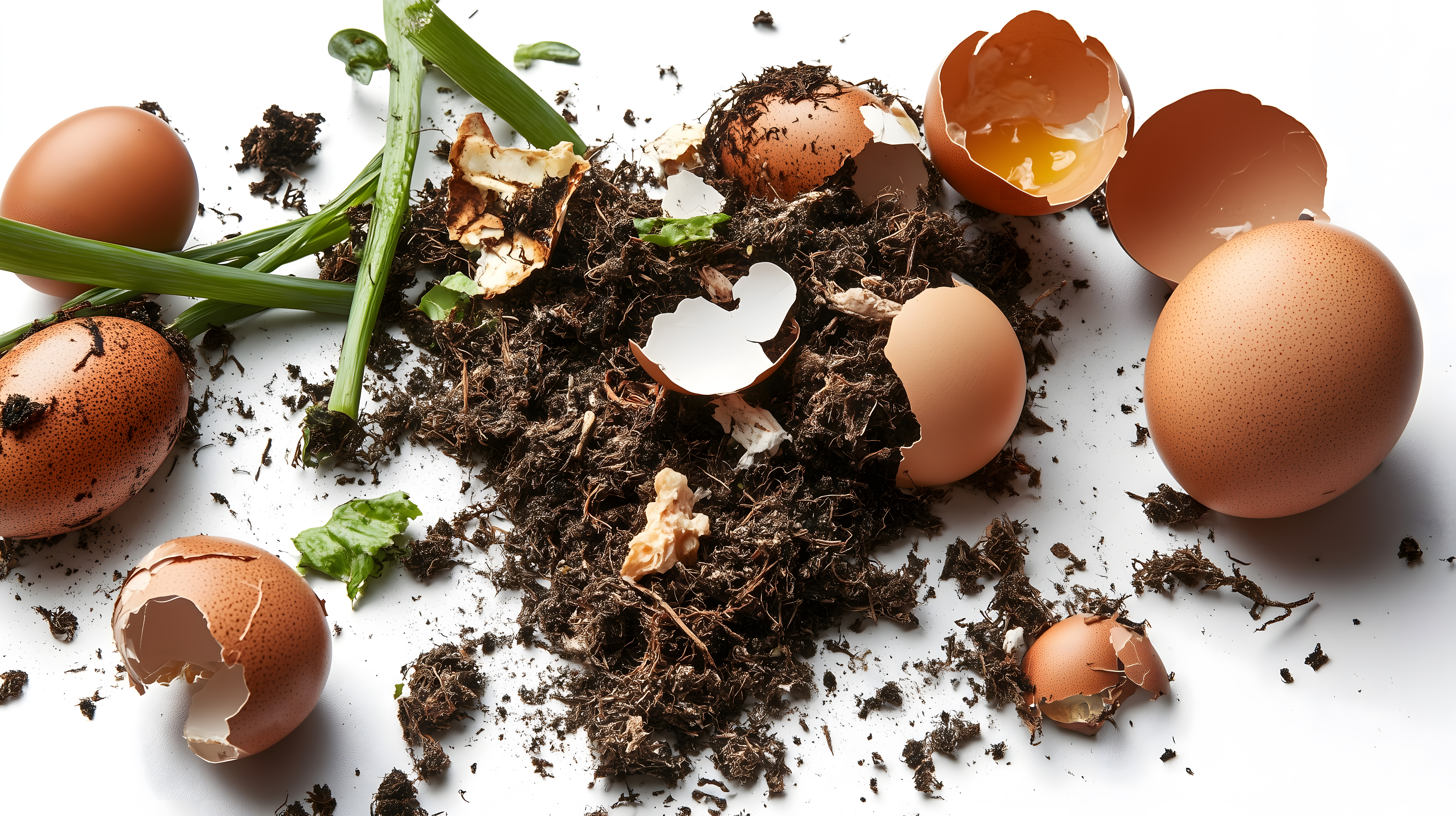 Dieses Stockfoto zeigt einen frischen, natürlichen Kompost, der aus Eierschalen und anderen organischen Bioabfällen besteht. Der Kompost ist auf einem weißen Hintergrund arrangiert, wodurch die verschiedenen Texturen und Farbtöne - braune Erde, grüne Stängel, weiße Eierschalen - besonders gut zur Geltung kommen. Dieses Bild eignet sich hervorragend für den Einsatz in Blogs, Newslettern oder Social-Media-Posts rund um Themen wie Nachhaltigkeit, Gartenbau, ökologische Landwirtschaft oder gesunde Ernährung. Als kostenloses Stockfoto in hoher Auflösung und unter einer Creative-Commons-Lizenz ist es einfach und legal zu verwenden.